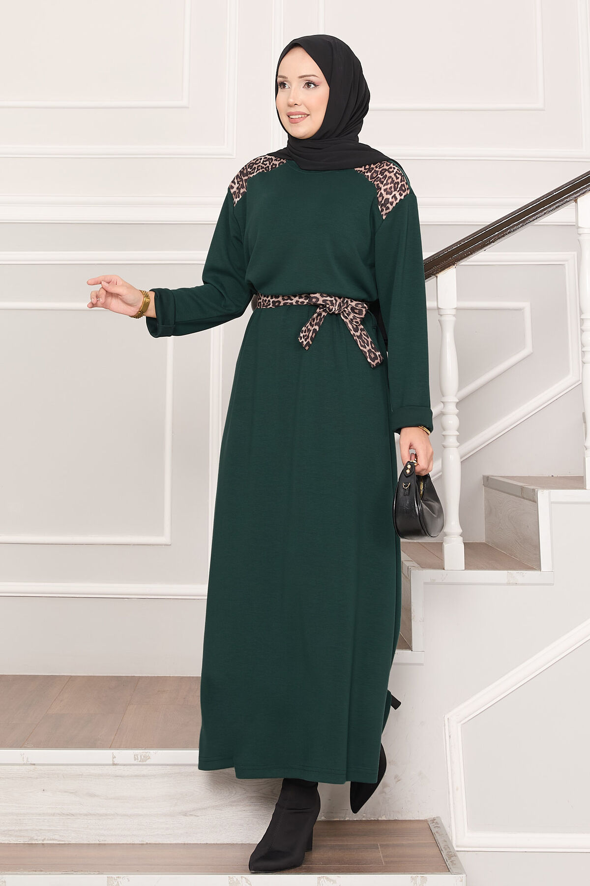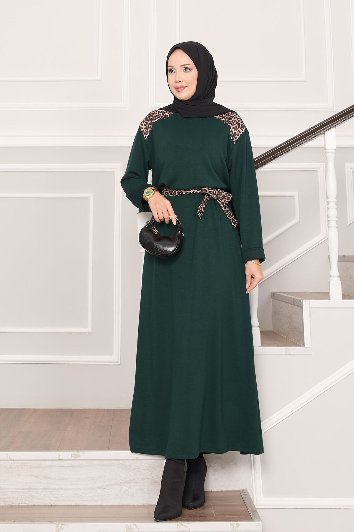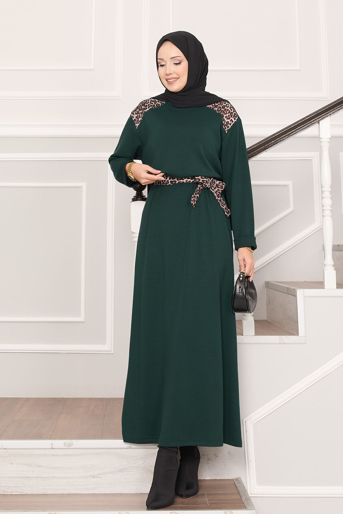 Omuz Leopar Garnili Kuşaklı Oyşo Elbise Zümrüt Yorumları