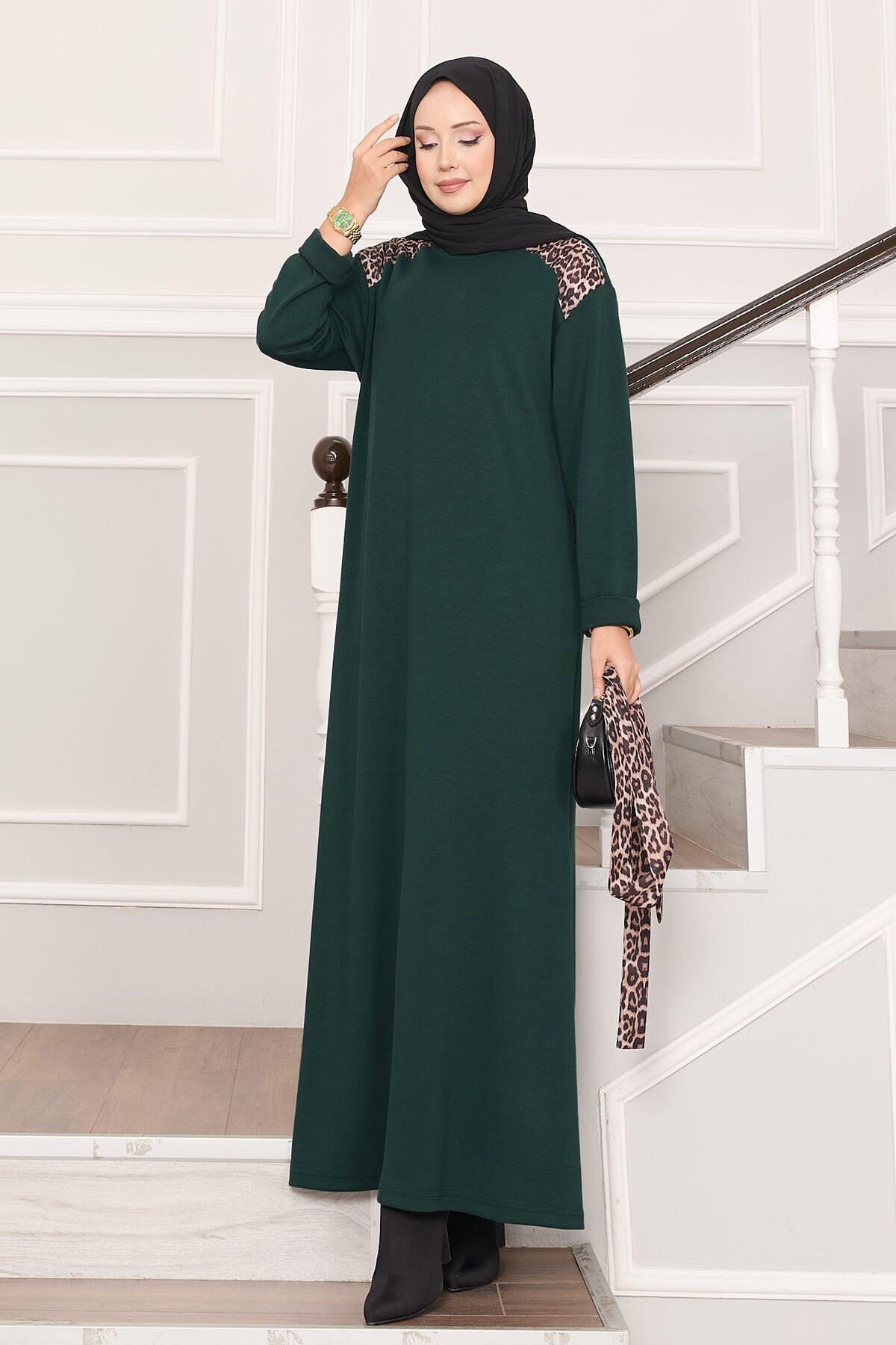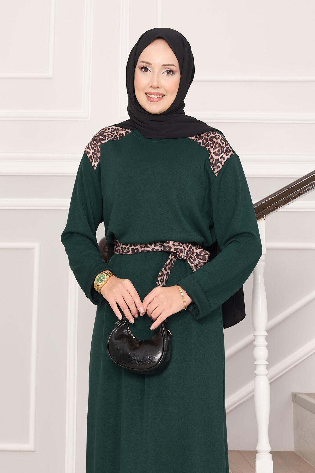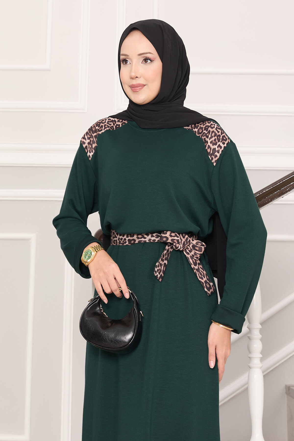Omuz Leopar Garnili Kuşaklı Oyşo Elbise Zümrüt Yorumları