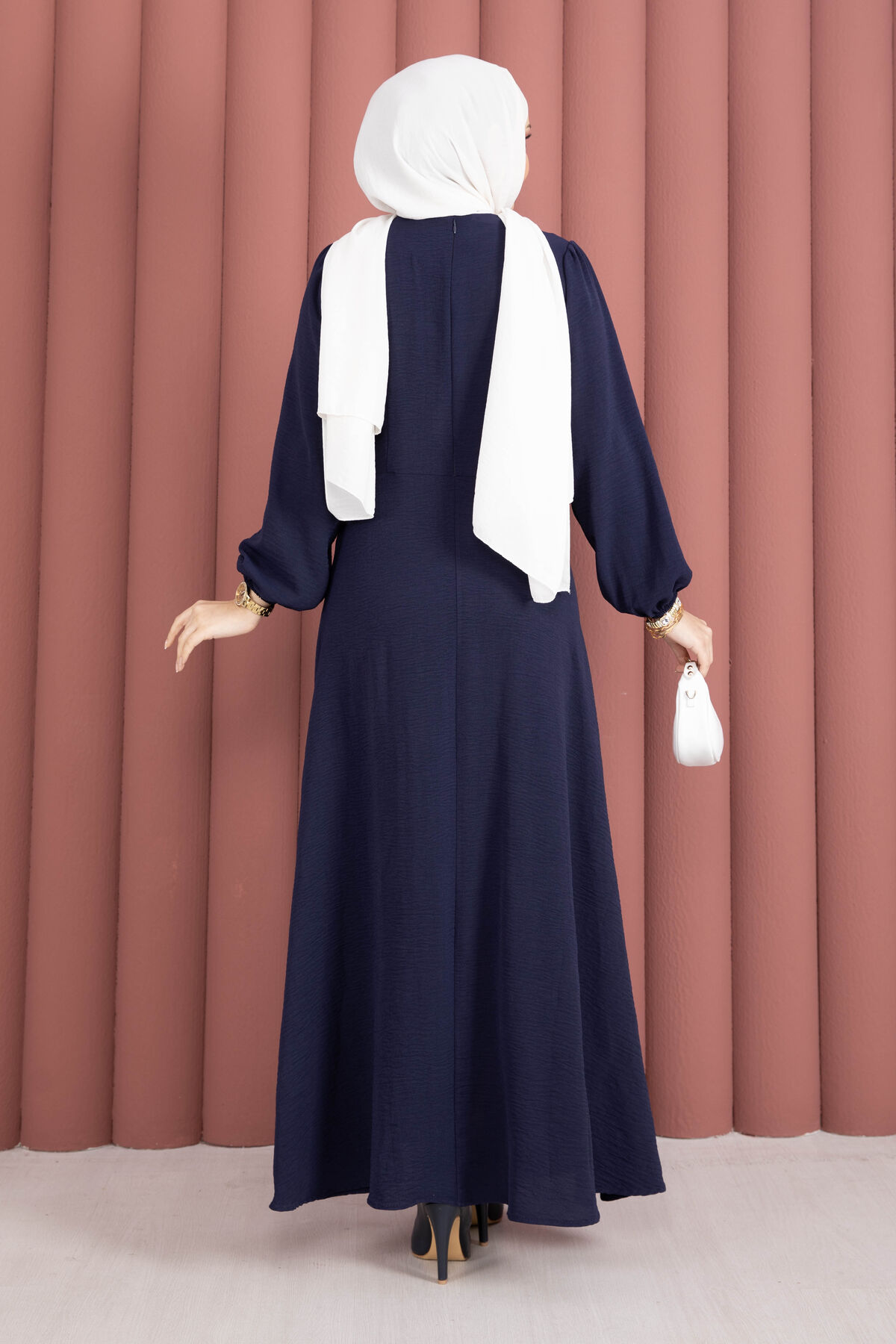 Sırttan fermuarlıdır.