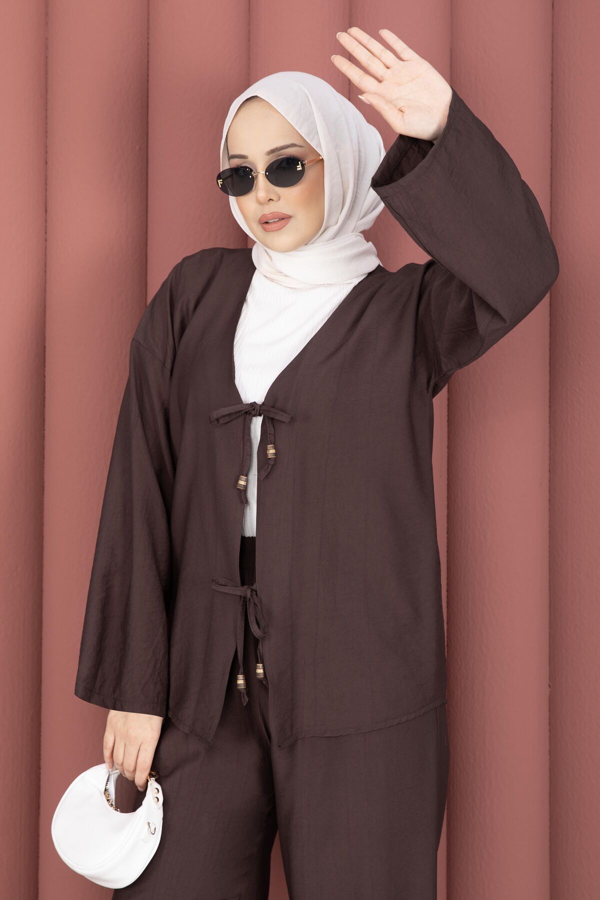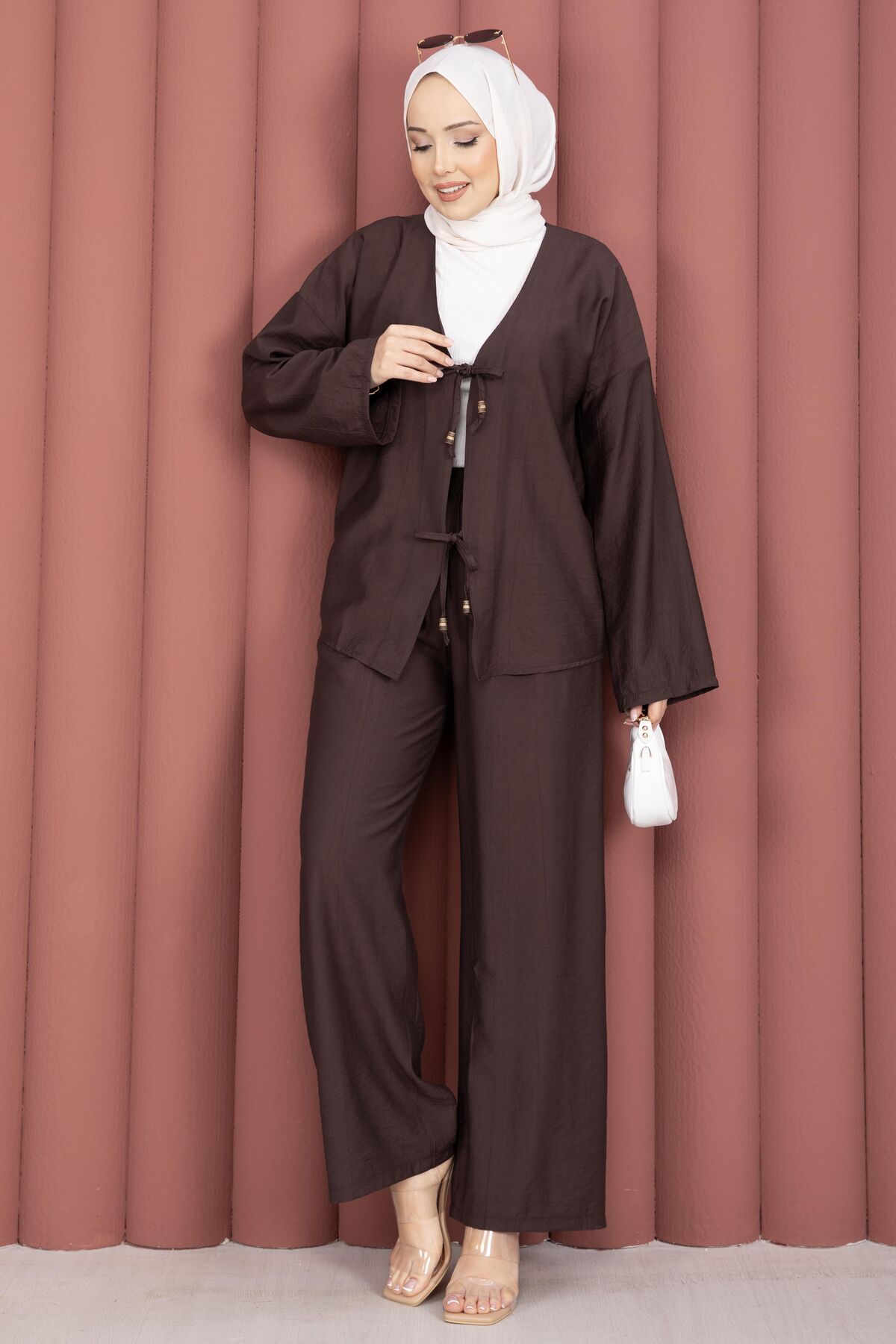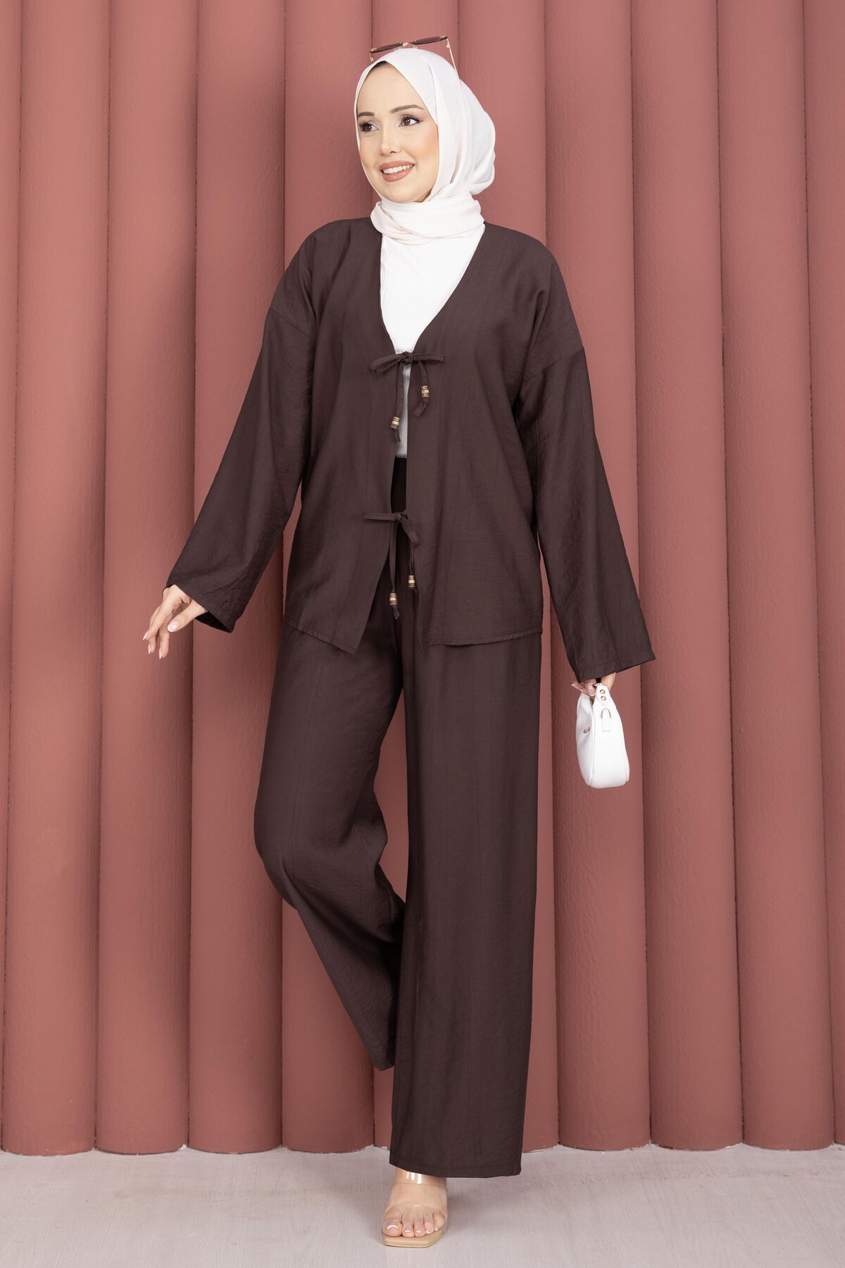 Önden Bağcık Detaylı Pantolonlu İkili Takım Kahve Yorumları