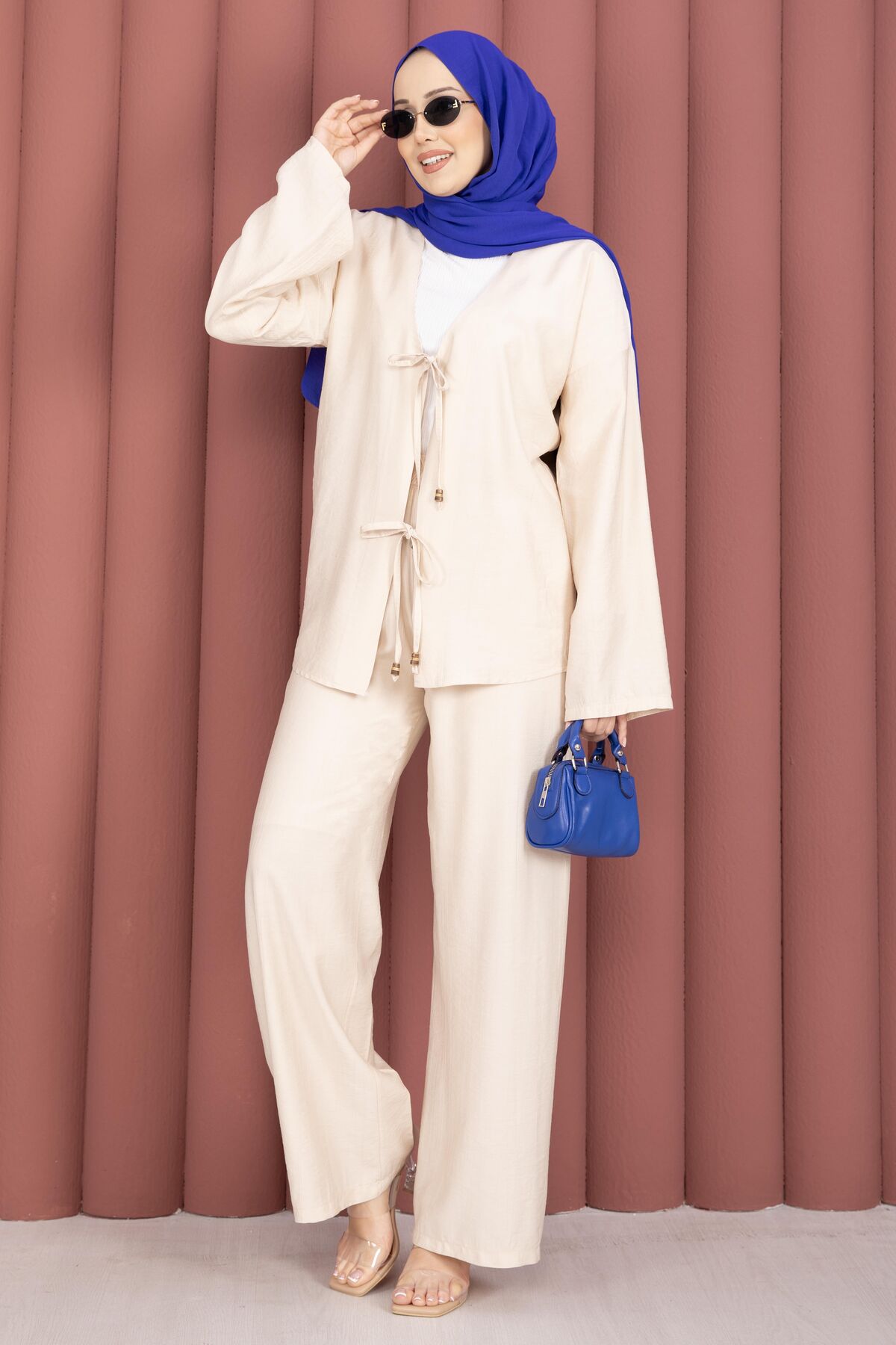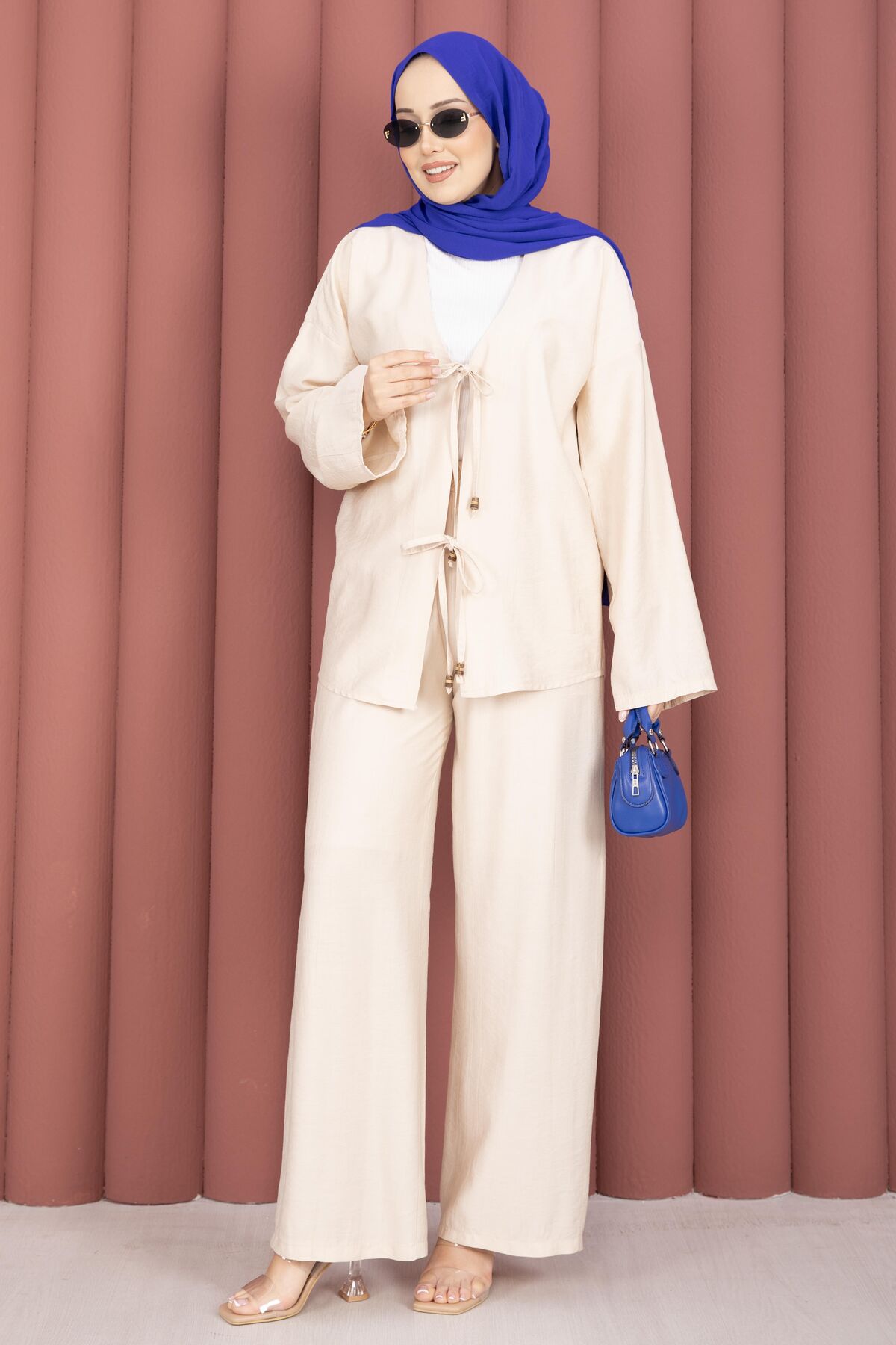 Önden Bağcık Detaylı Pantolonlu İkili Takım Krem Yorumları