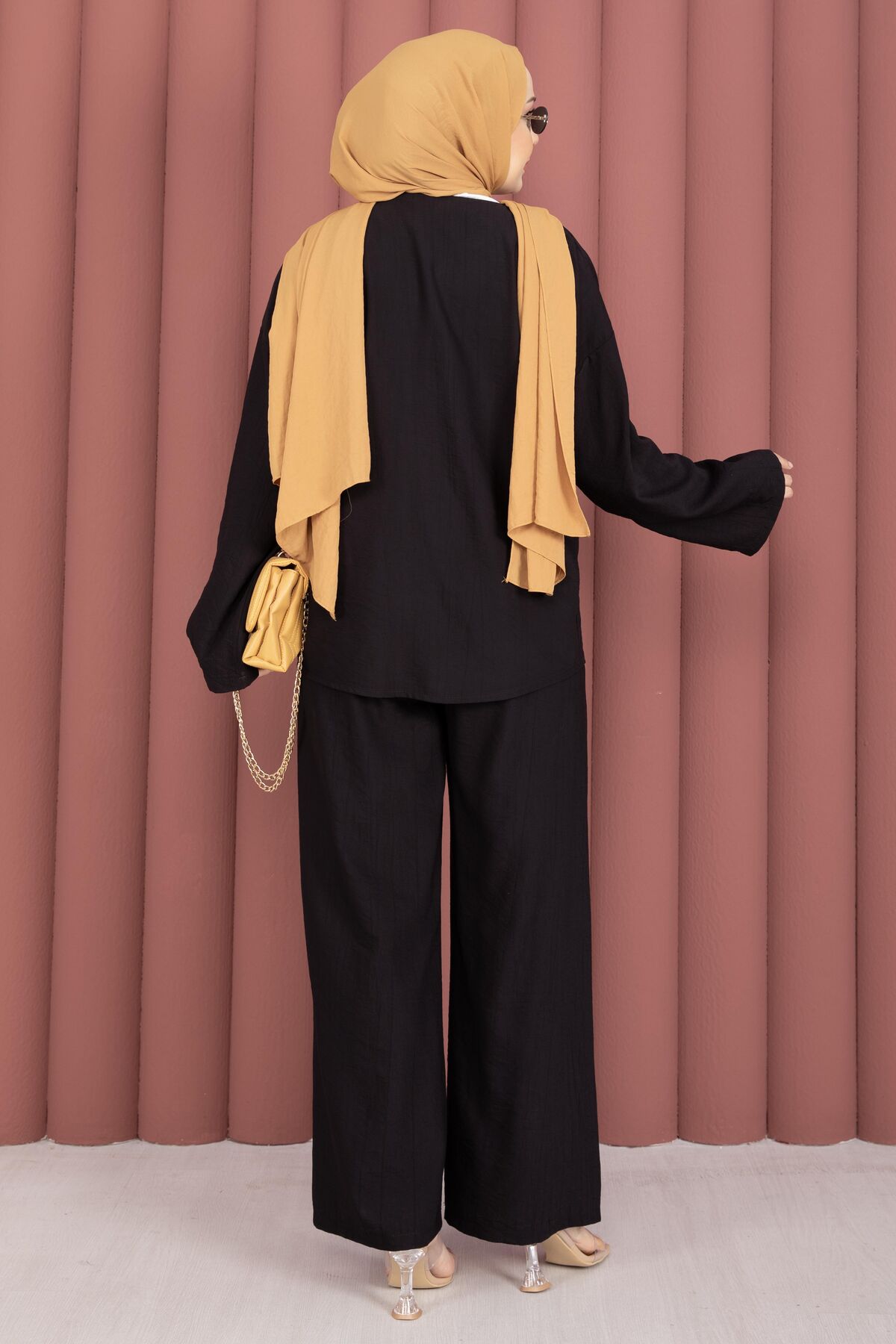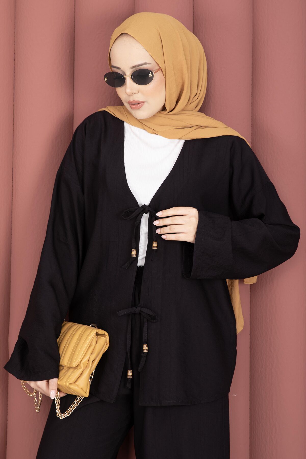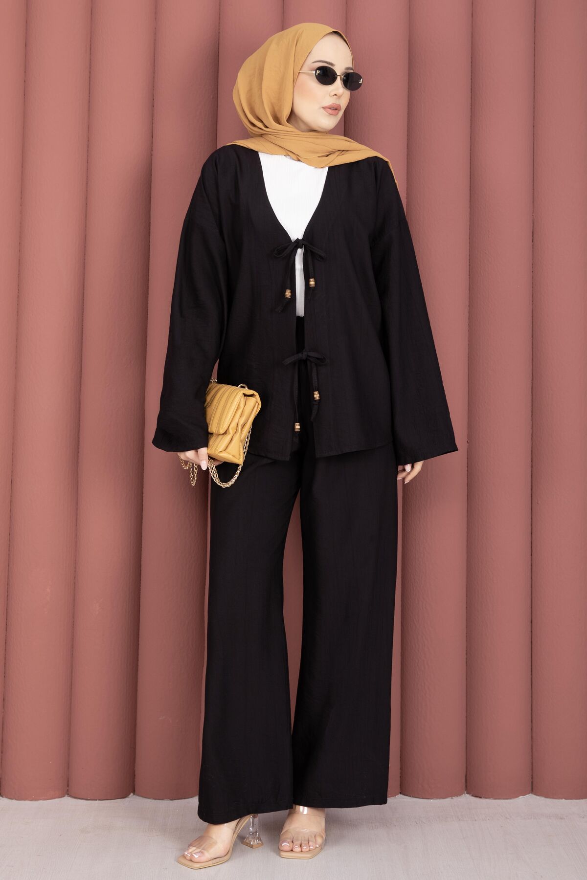 Önden Bağcık Detaylı Pantolonlu İkili Takım Siyah Yorumları