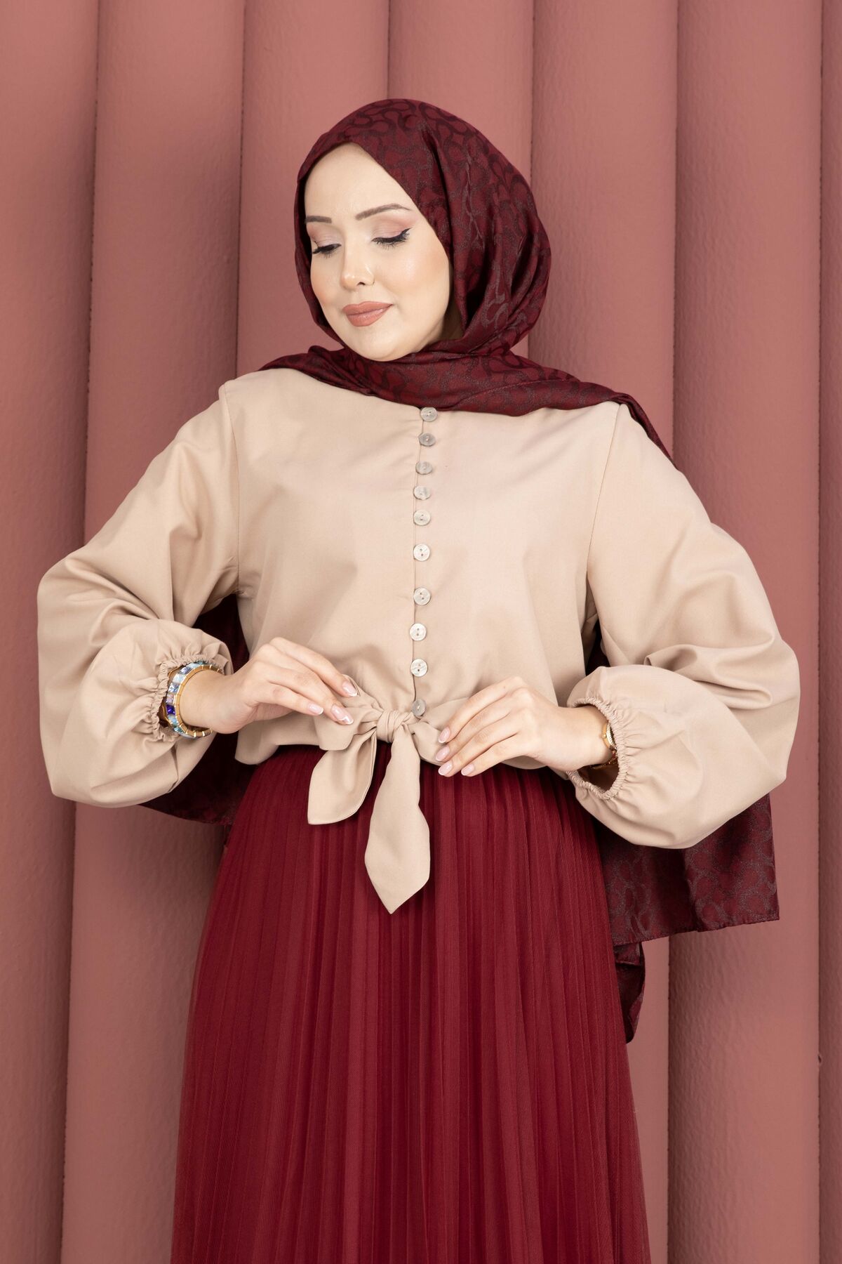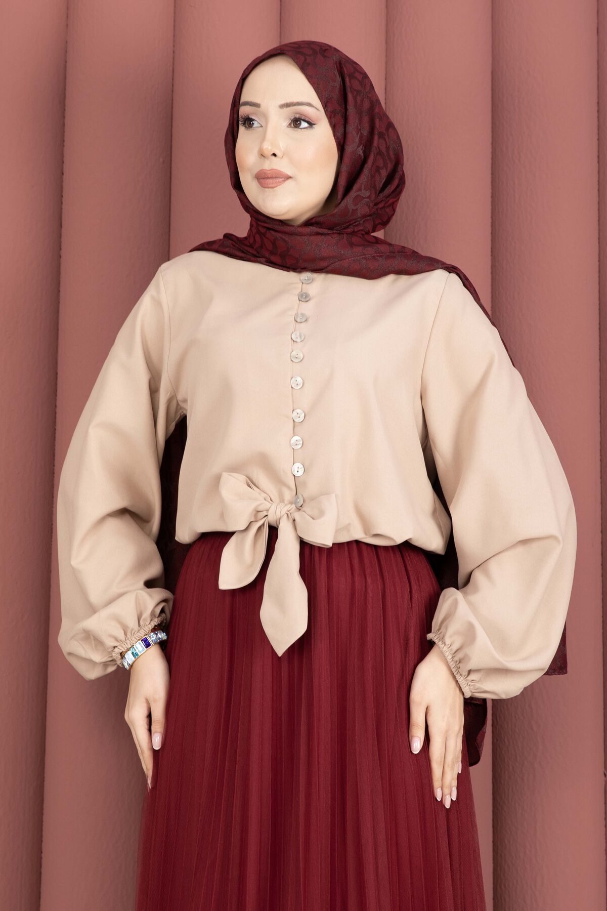 Önden Bağlamalı Etek Üstü Bluz Bej