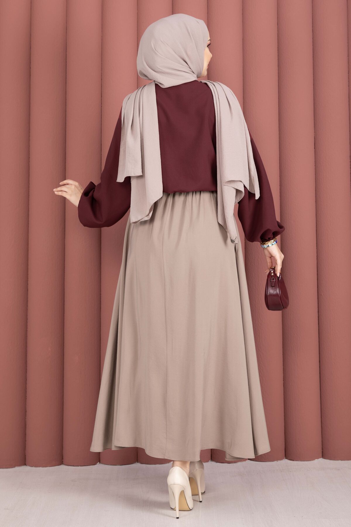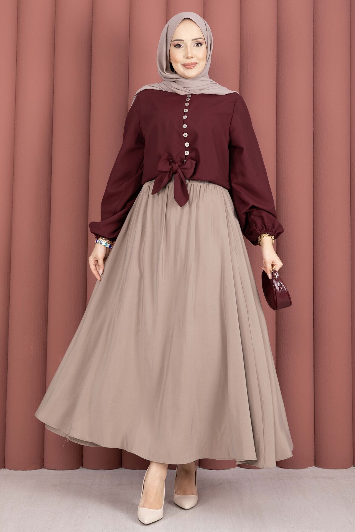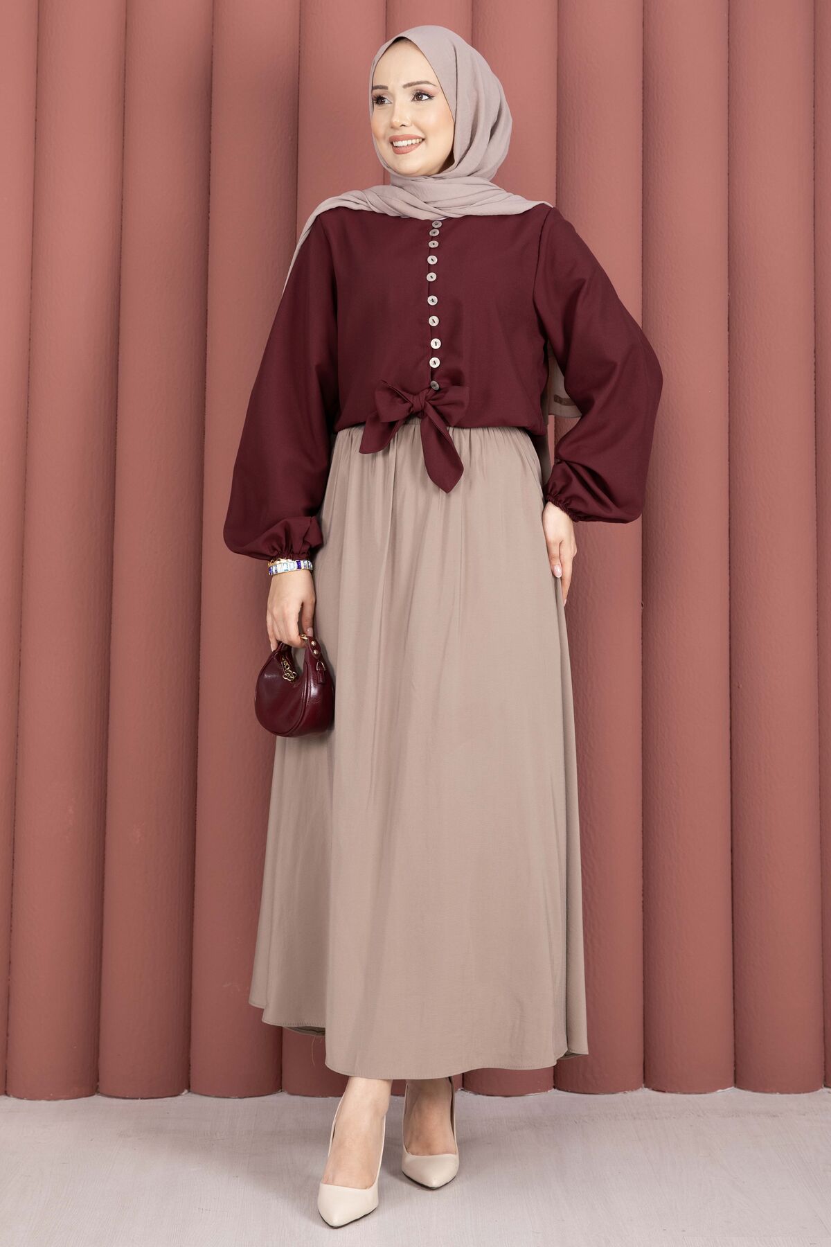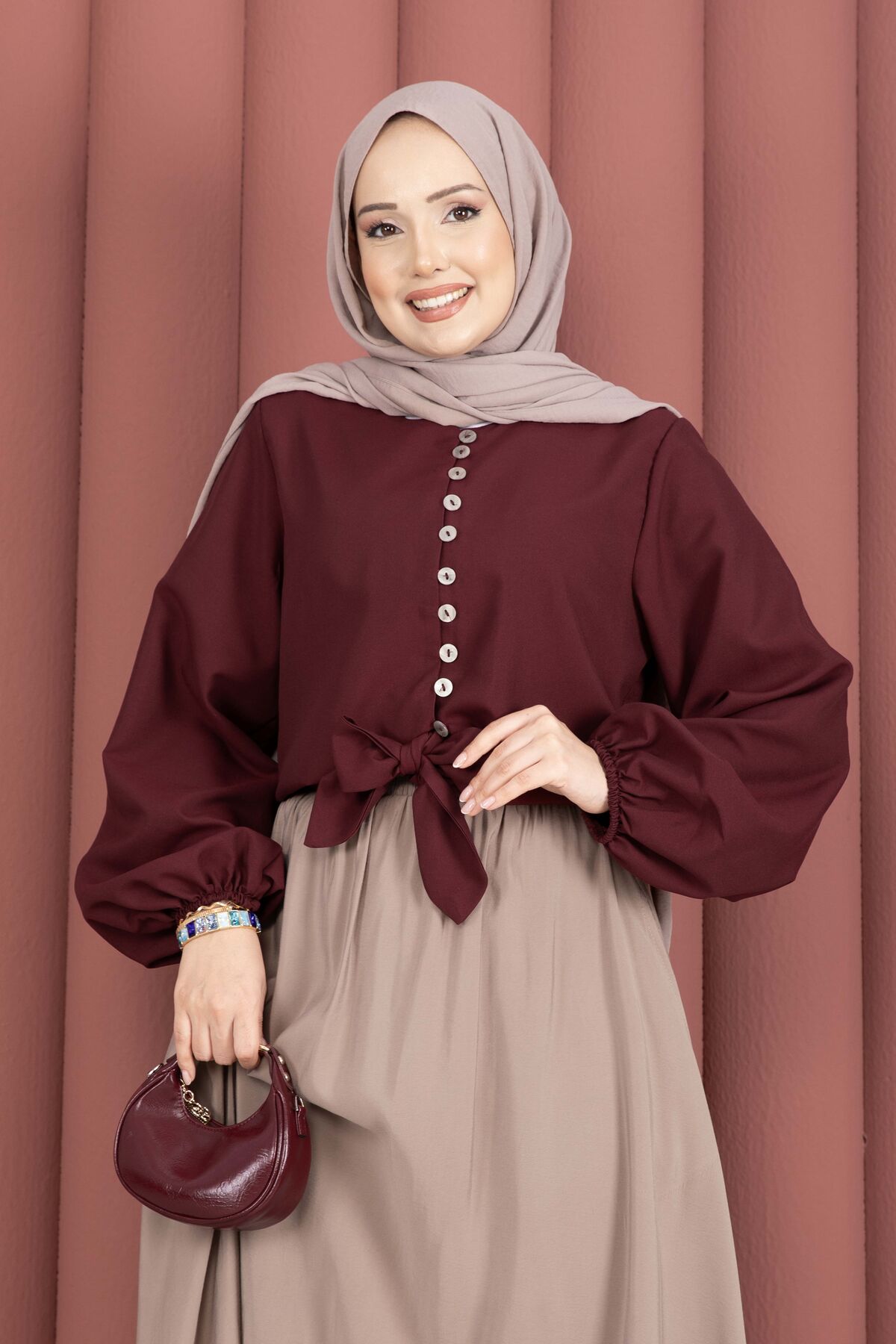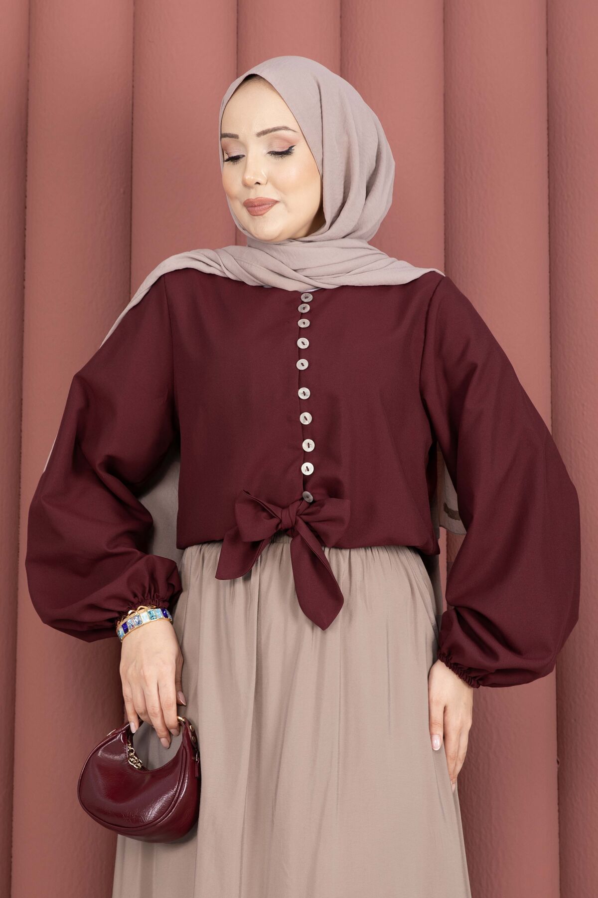 Önden Bağlamalı Etek Üstü Bluz Bordo