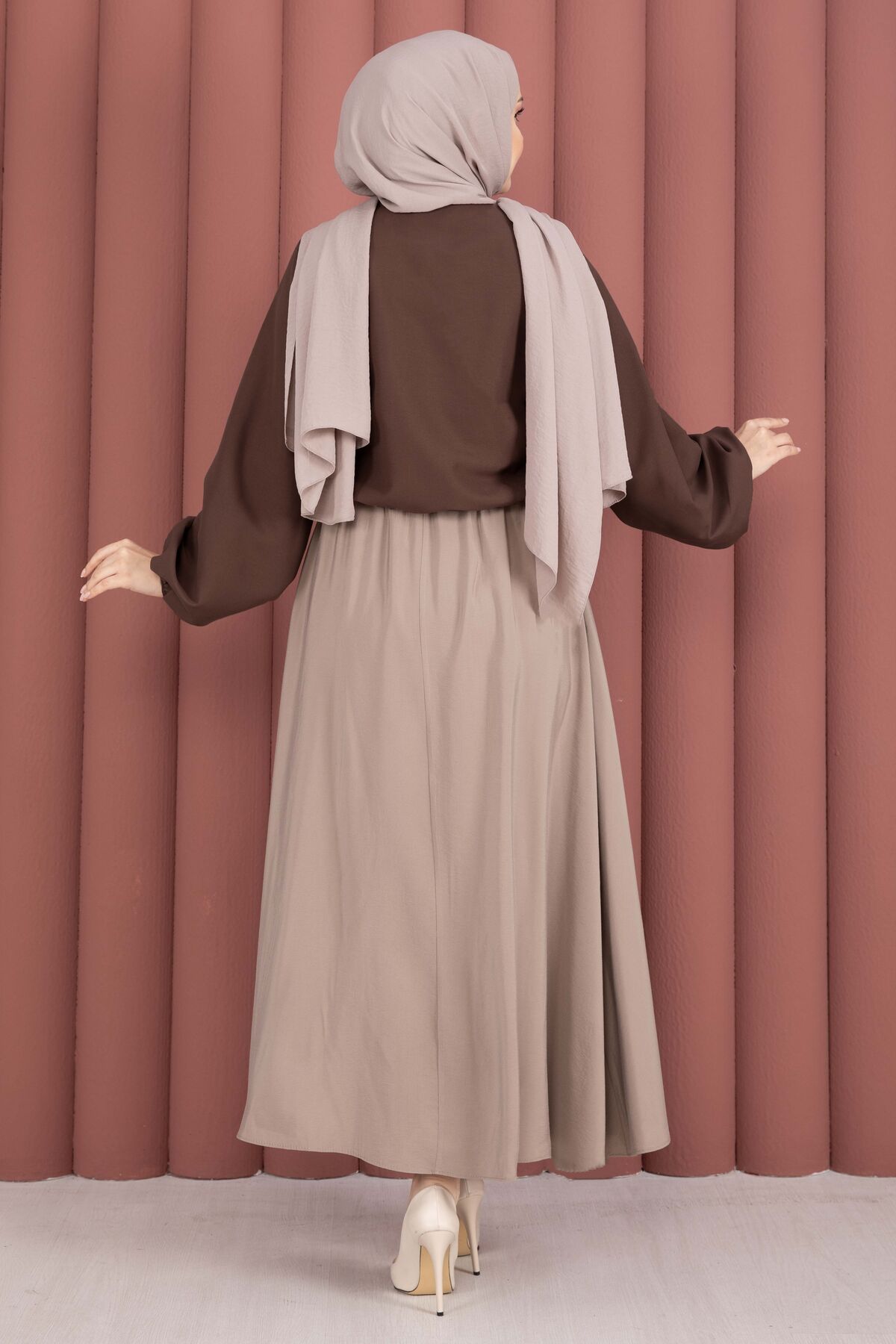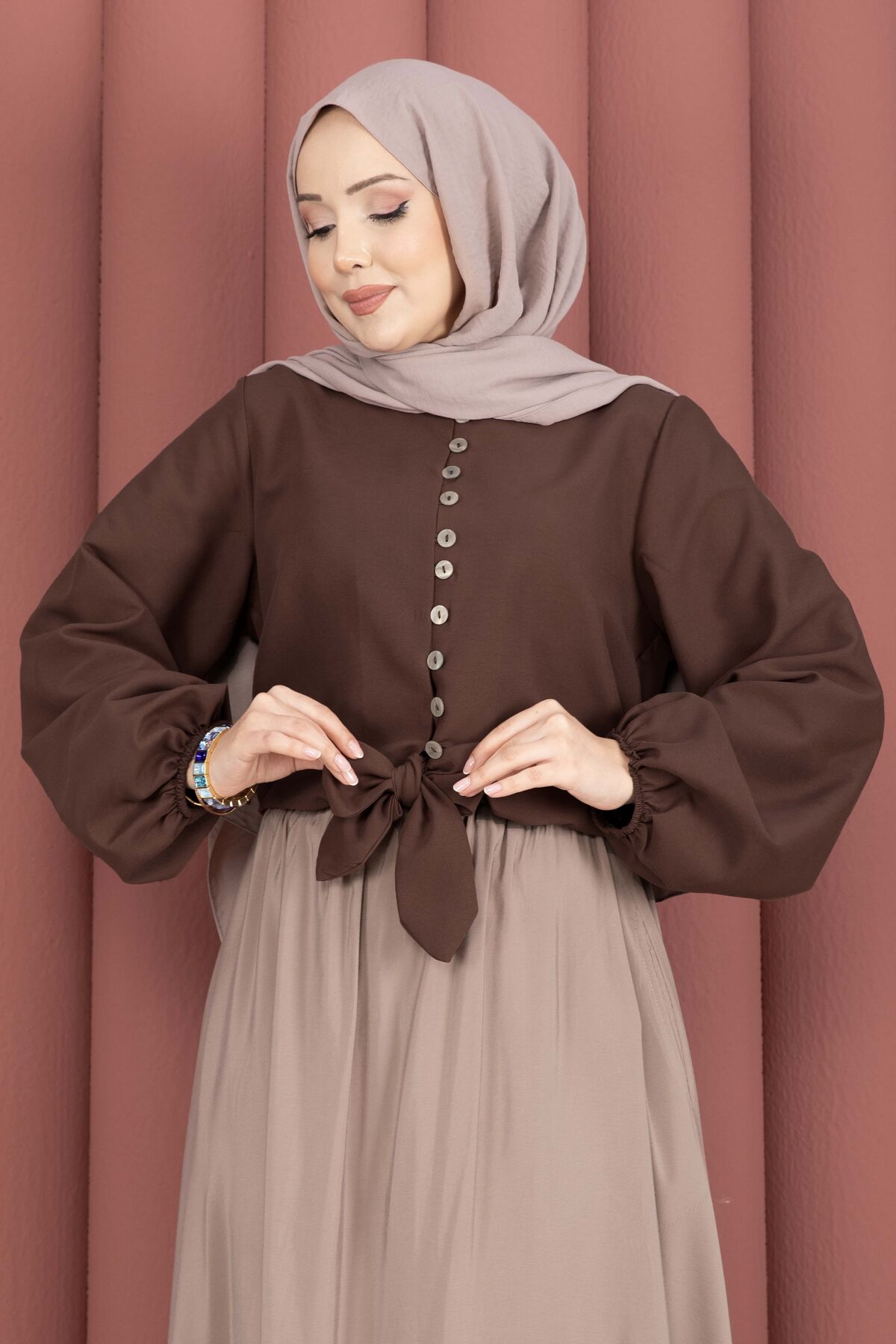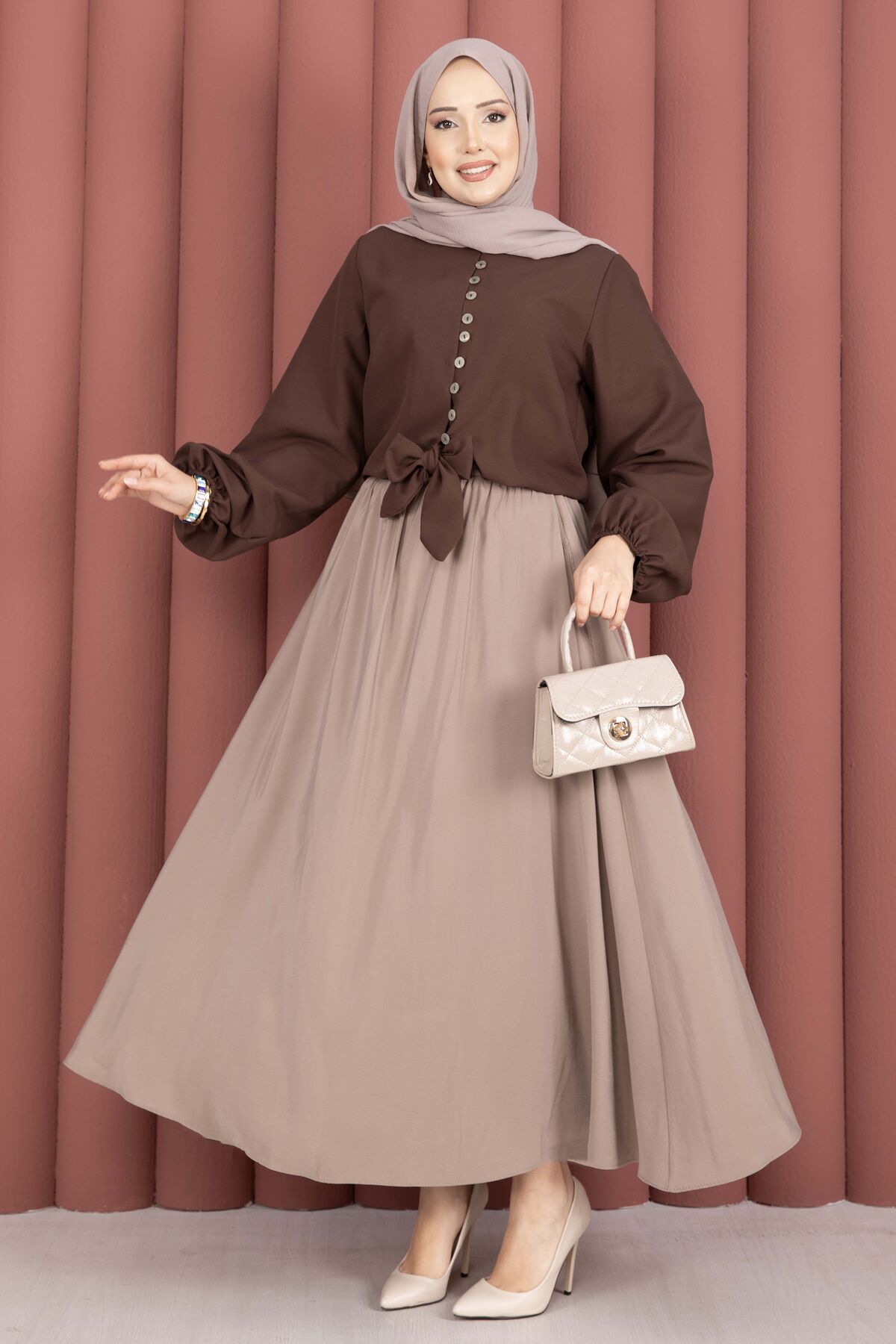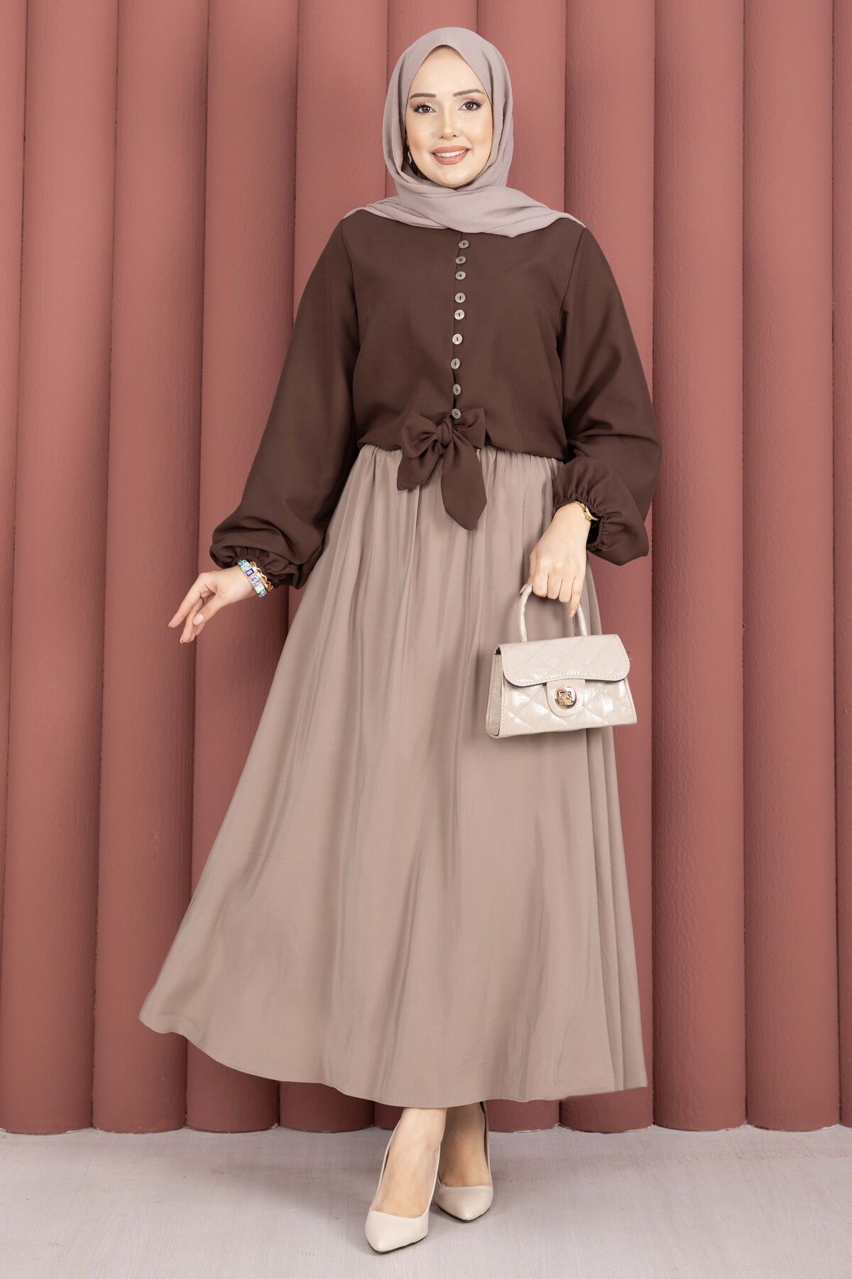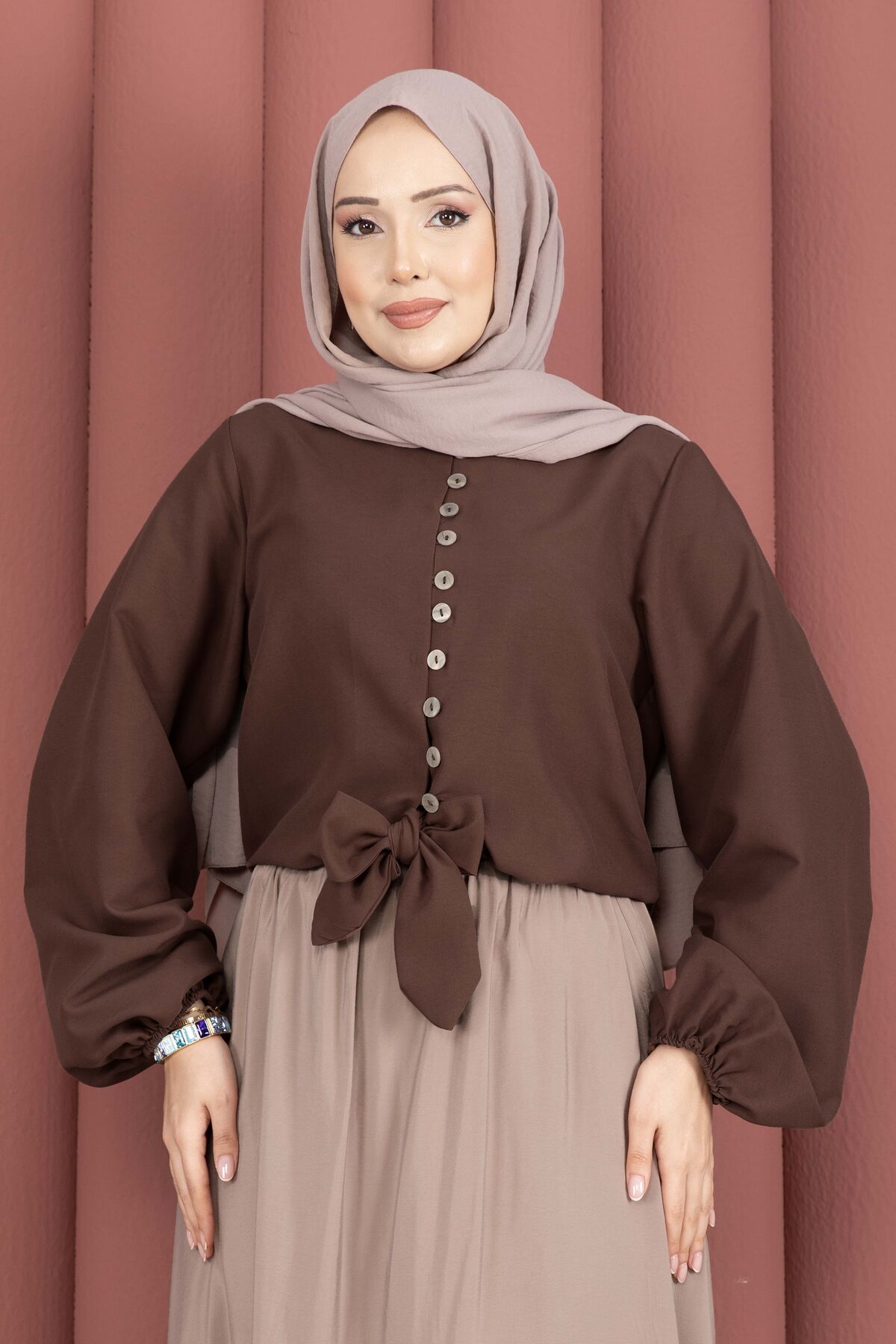 Önden Bağlamalı Etek Üstü Bluz Kahve