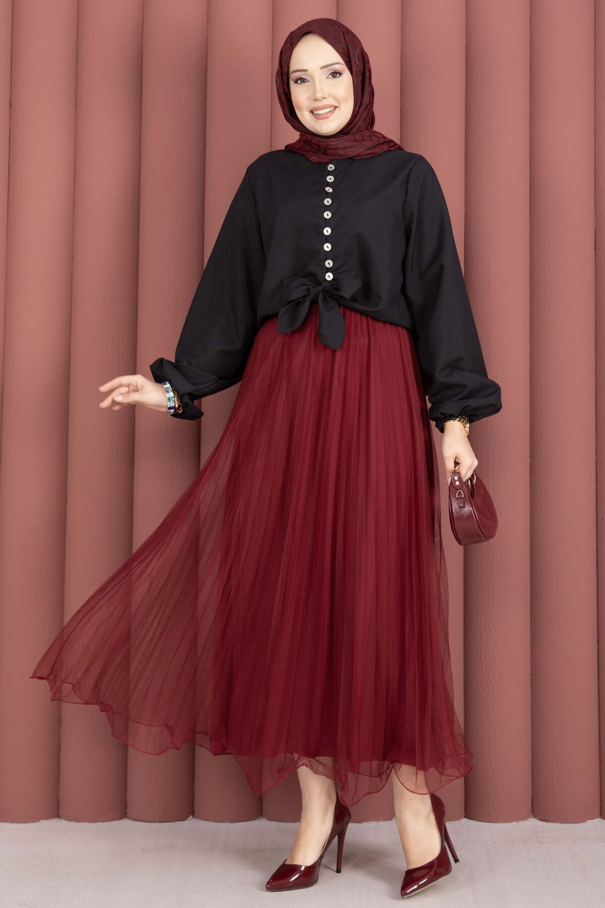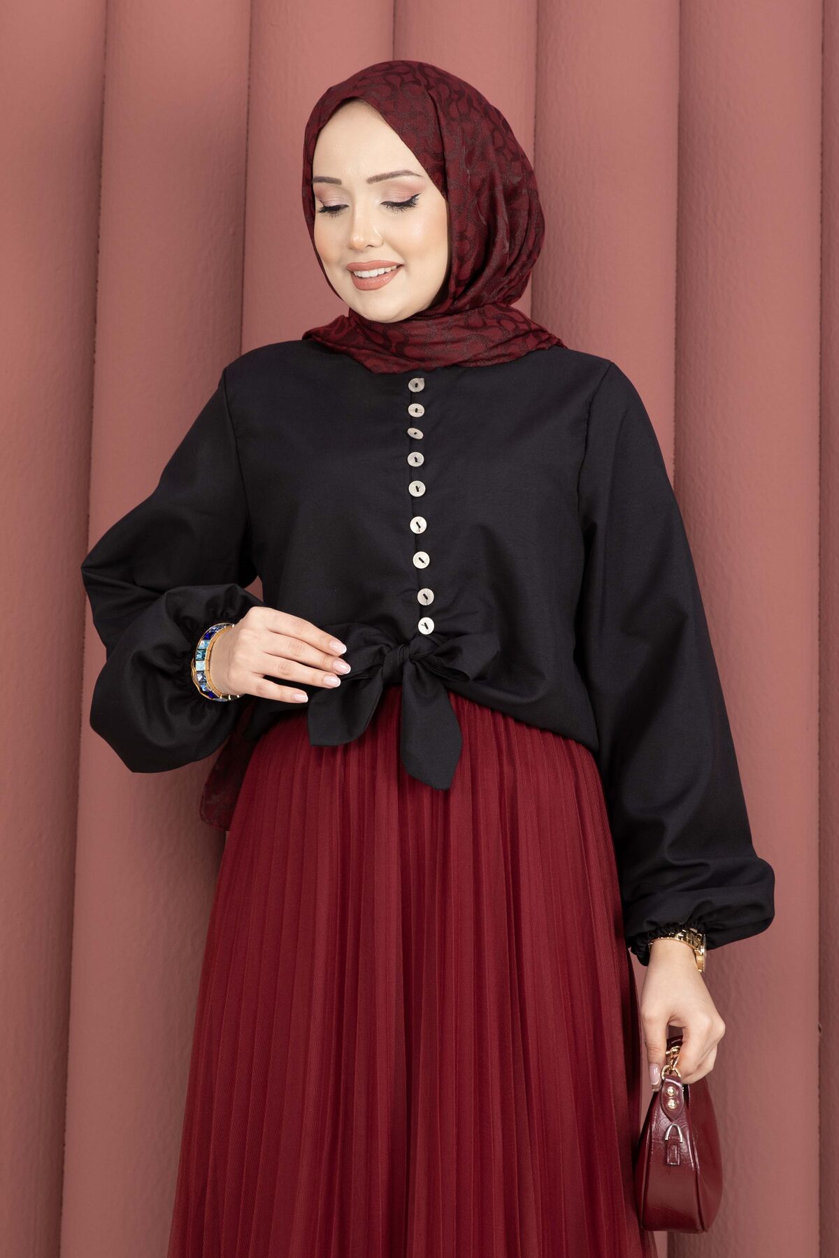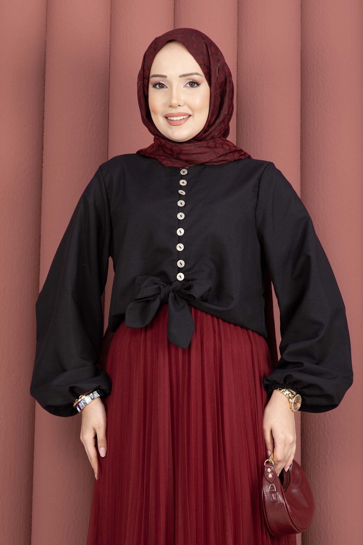 Önden Bağlamalı Etek Üstü Bluz Siyah