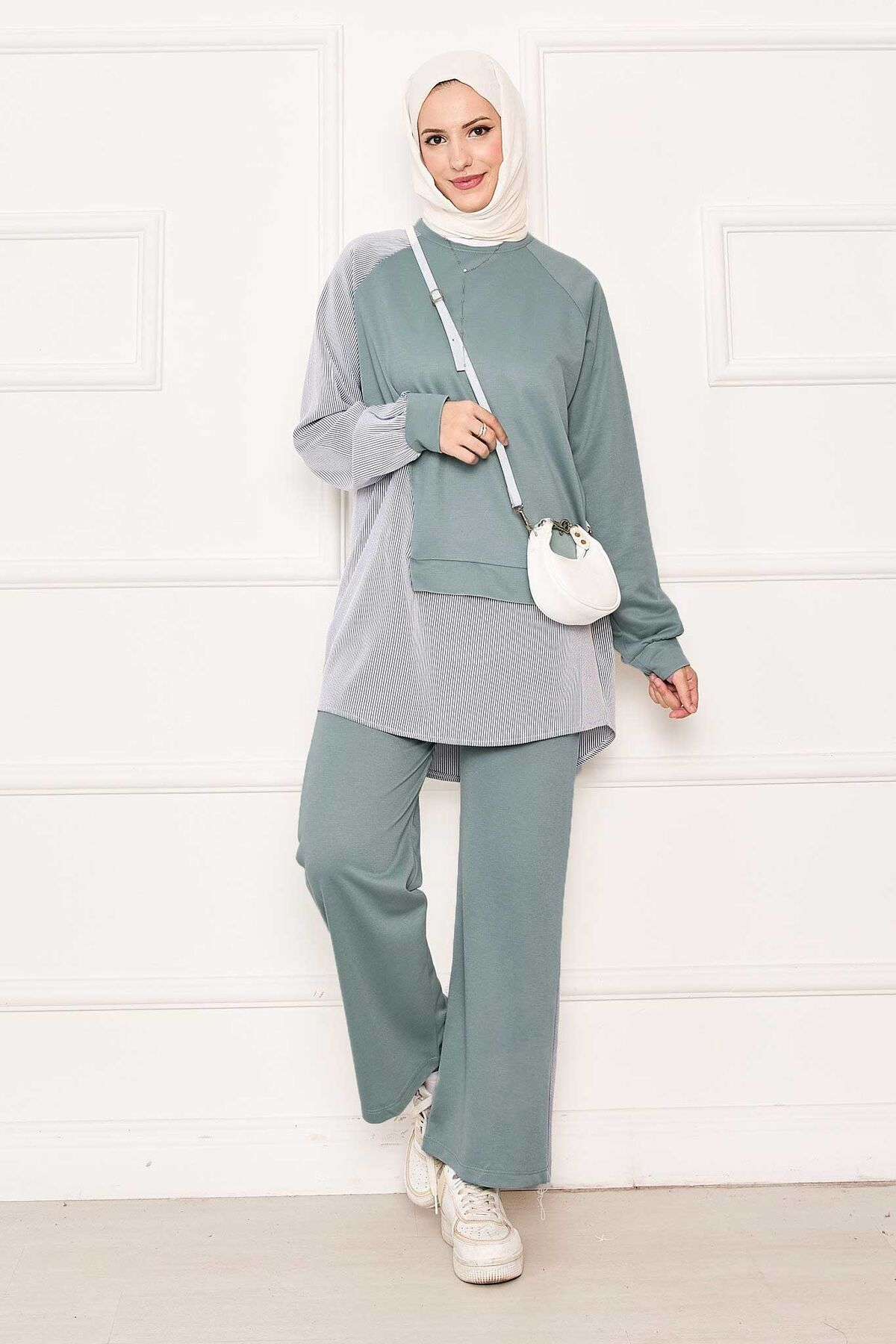Önü Asimetrik Çizgi Garnili İkili Takım Mint