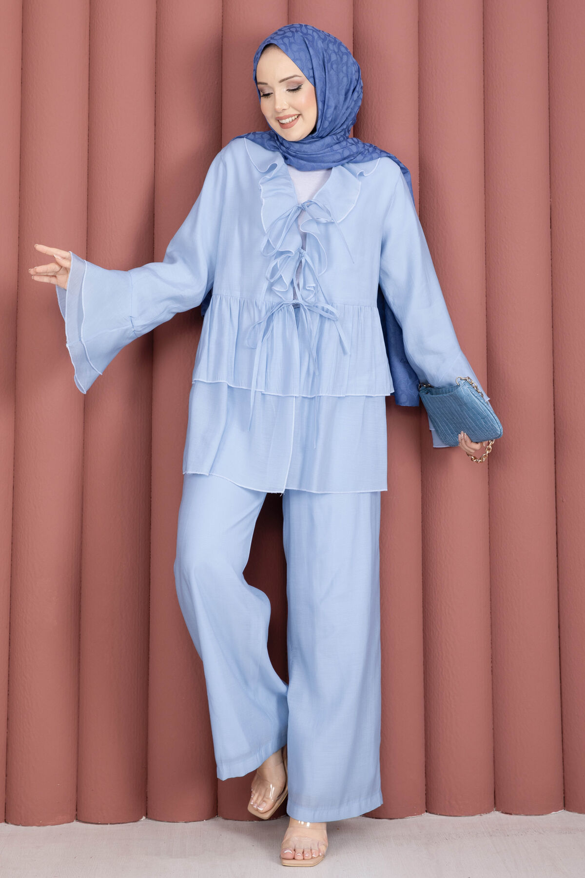 Önü Bağcık Detaylı Kolları Volanlı Kimono İkili Takım Bebe Mavisi Yorumları