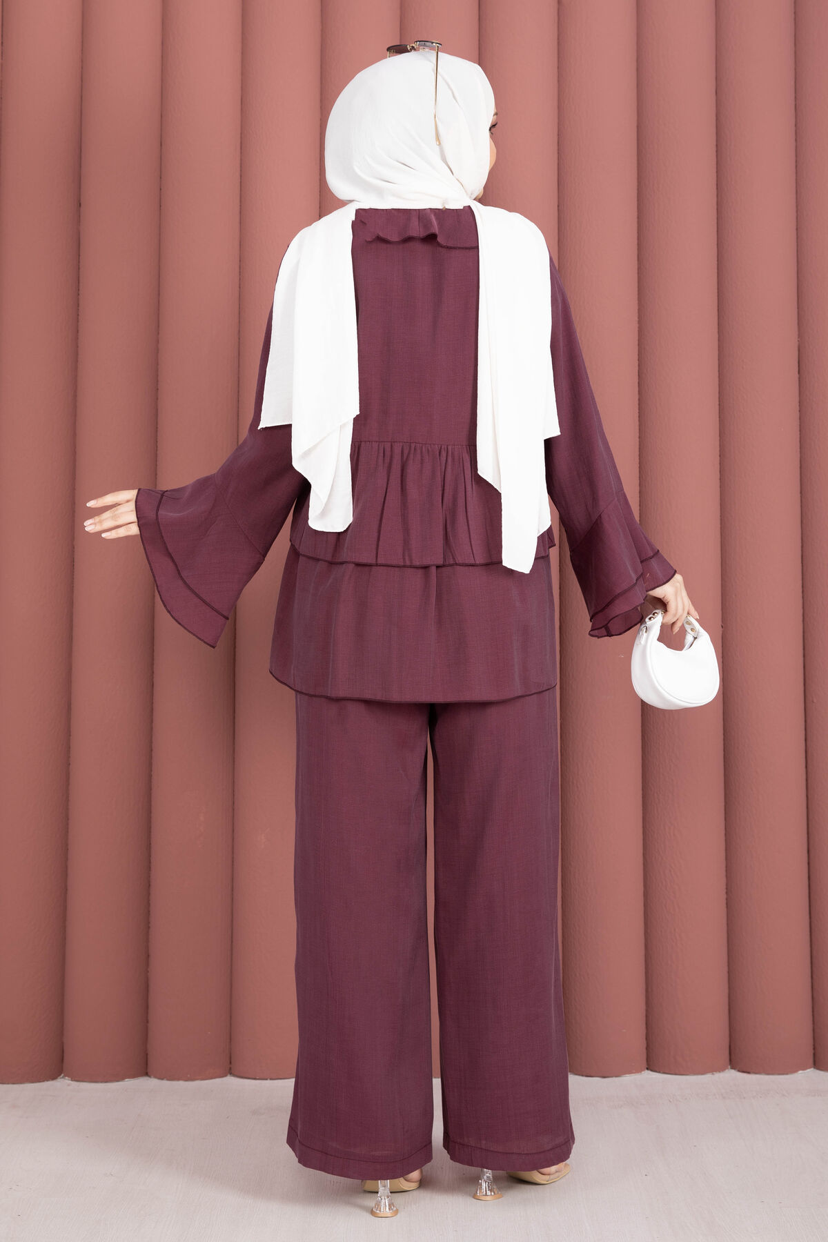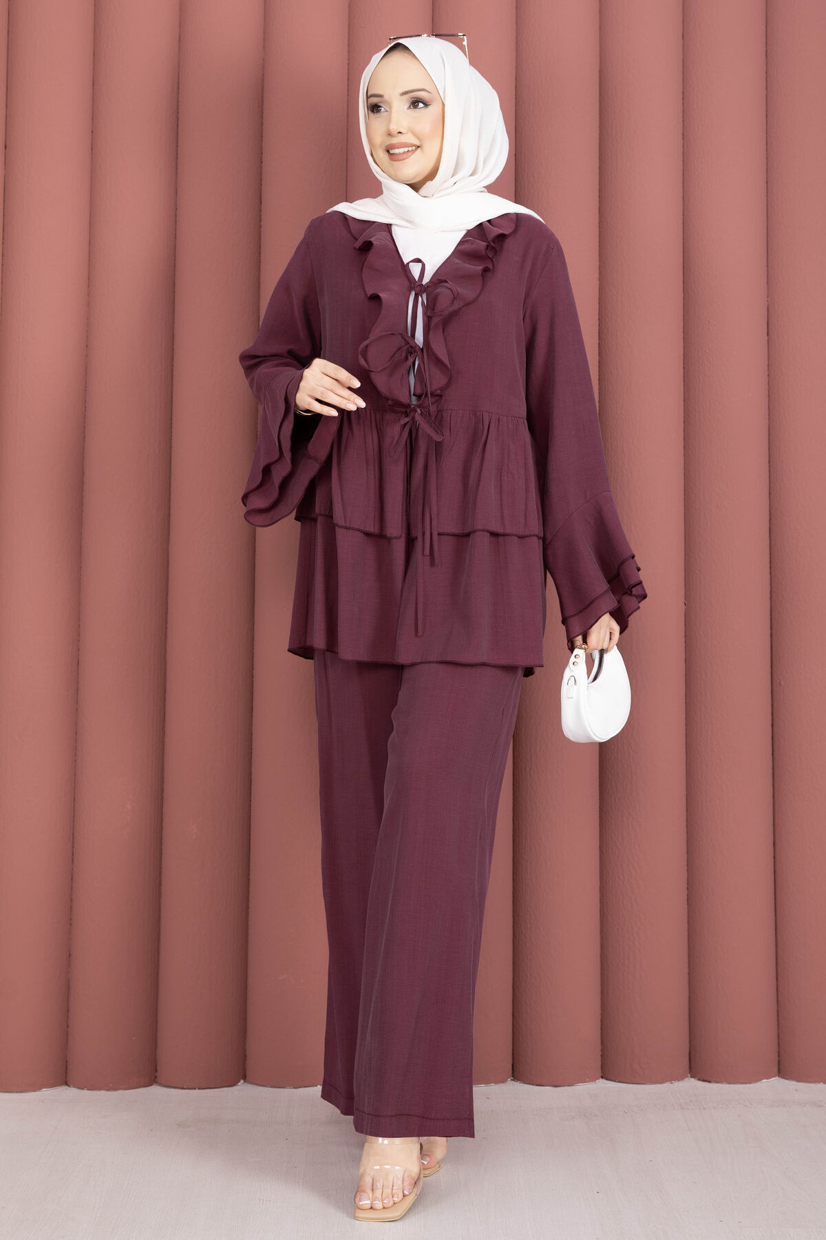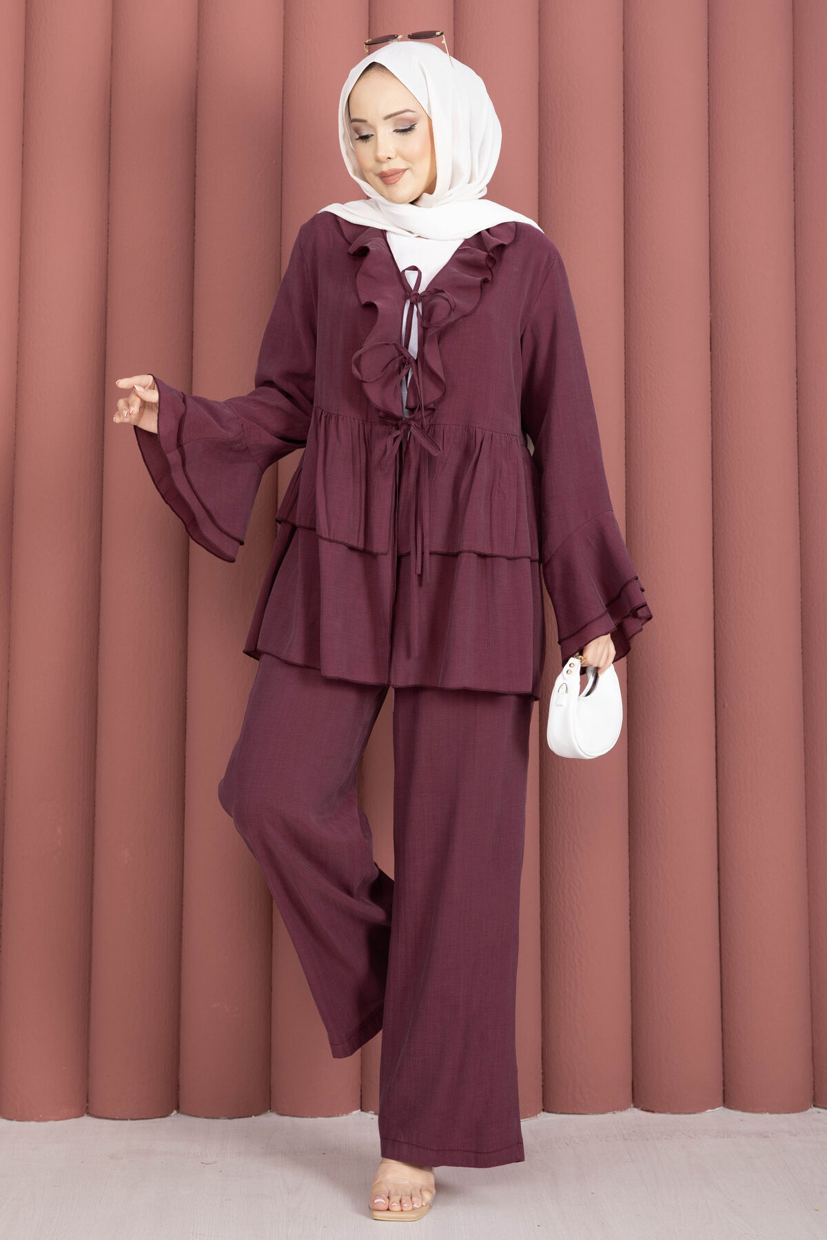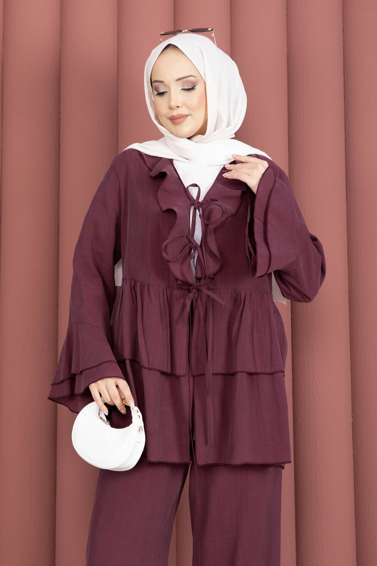 Önü Bağcık Detaylı Kolları Volanlı Kimono İkili Takım Bordo Yorumları