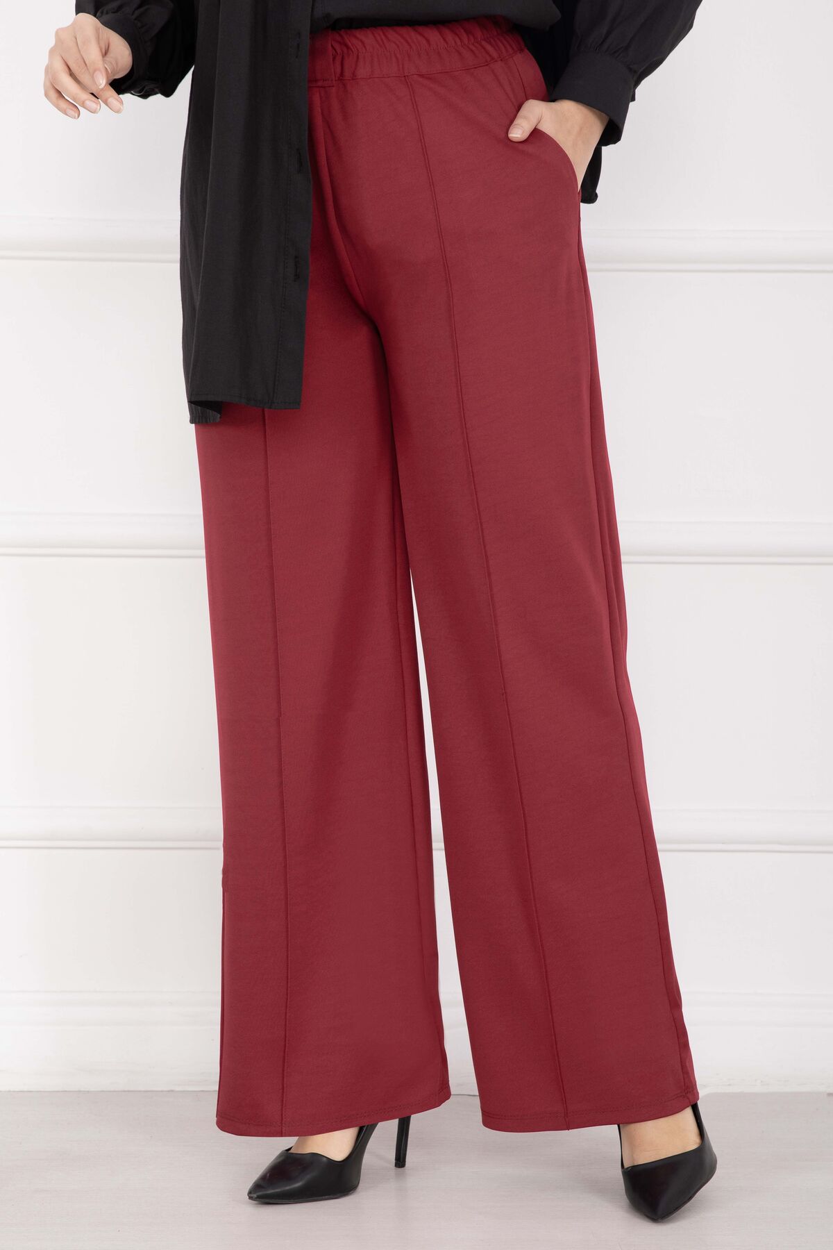 - Ürün mevsimliktir. Astarsızdır, iç göstermez. Ürün belden lastiklidir, Önden pilelidir. Geniş paça pantolondur.Yeni sezon trend olan parçalar arasında yerini almaktadır.