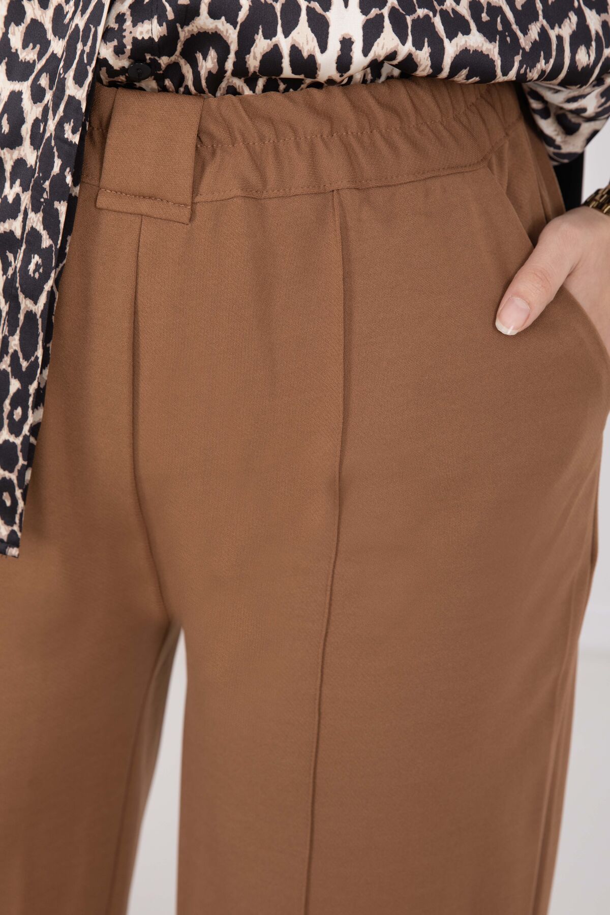 Önü Çimalı Cep Detaylı Pantolon Taba