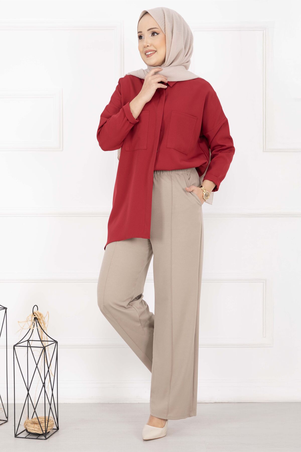- Ürün mevsimliktir. Astarsızdır, iç göstermez. Ürün belden lastiklidir, Önden pilelidir. Geniş paça pantolondur.Yeni sezon trend olan parçalar arasında yerini almaktadır.