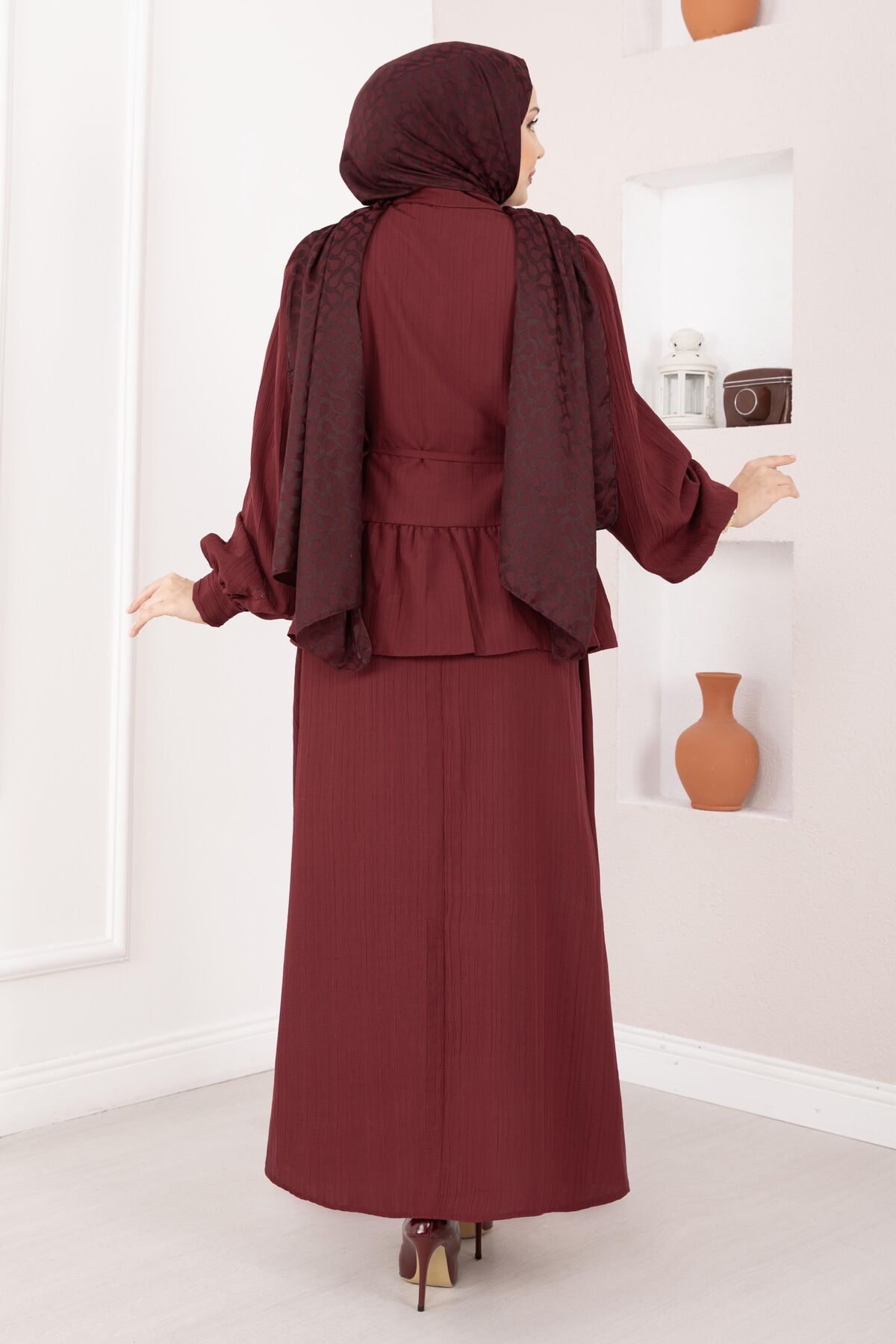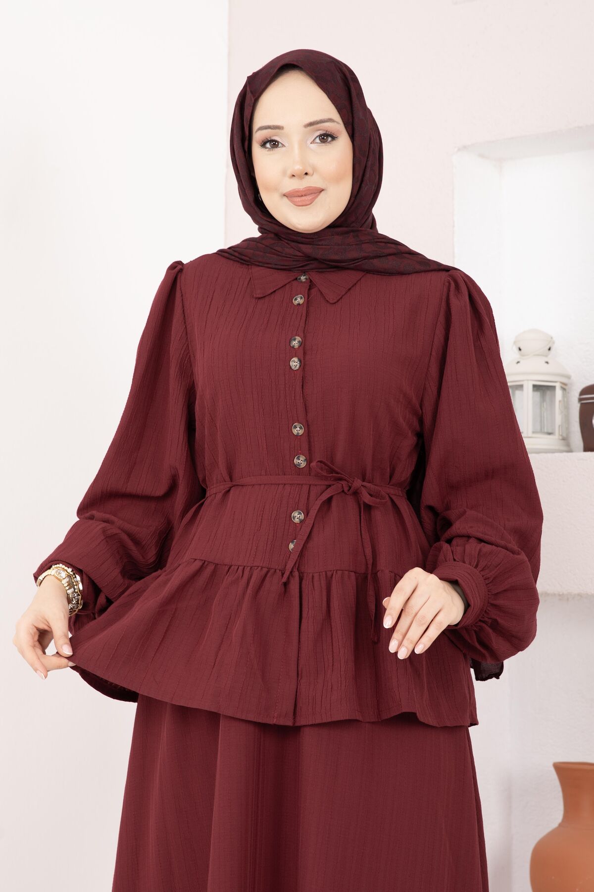 Önü Düğme Detaylı Etekli İkili Takım Bordo Yorumları