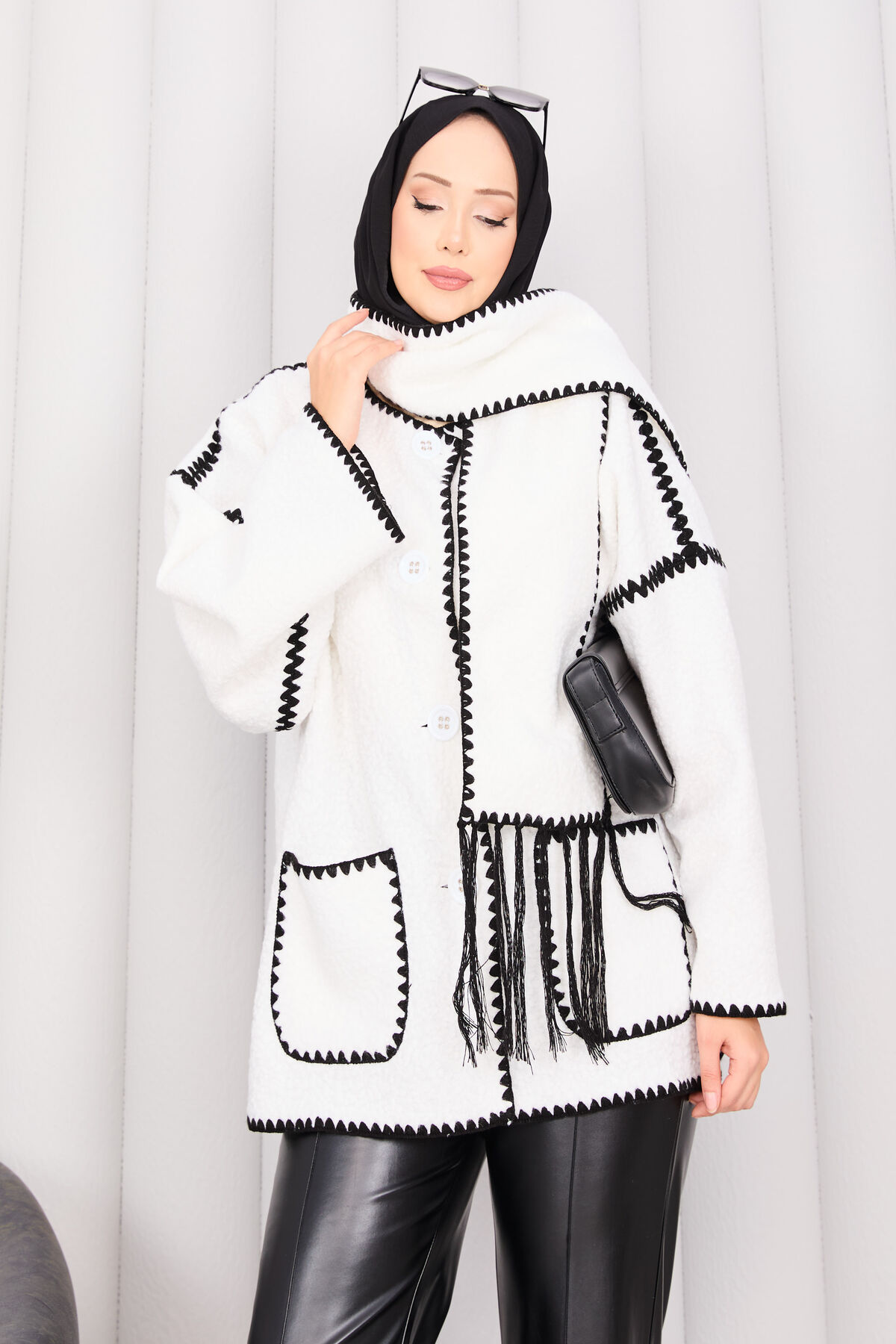 Önü Düğmeli Cep Detaylı Atkılı Ceket Beyaz Yorumları