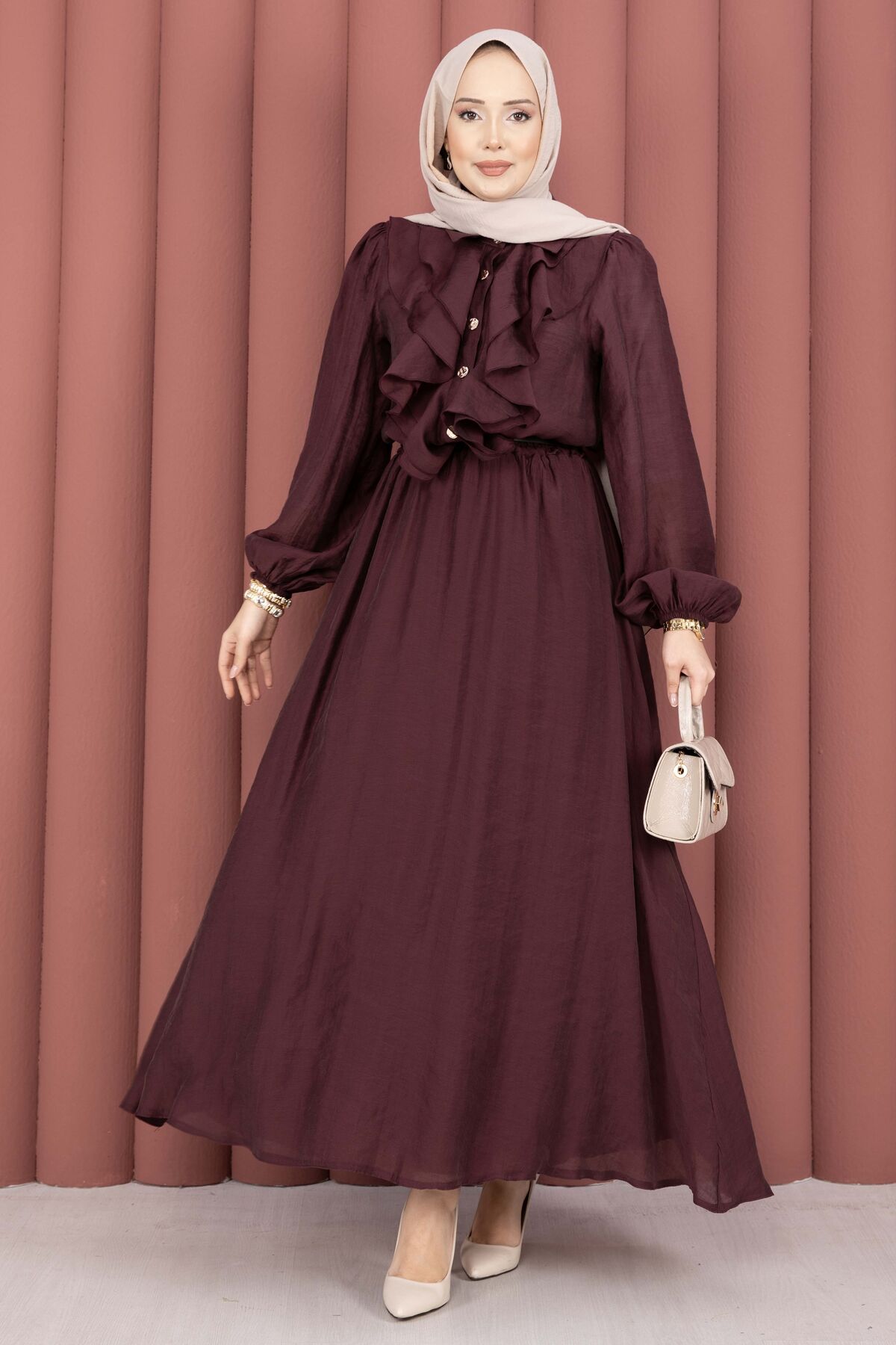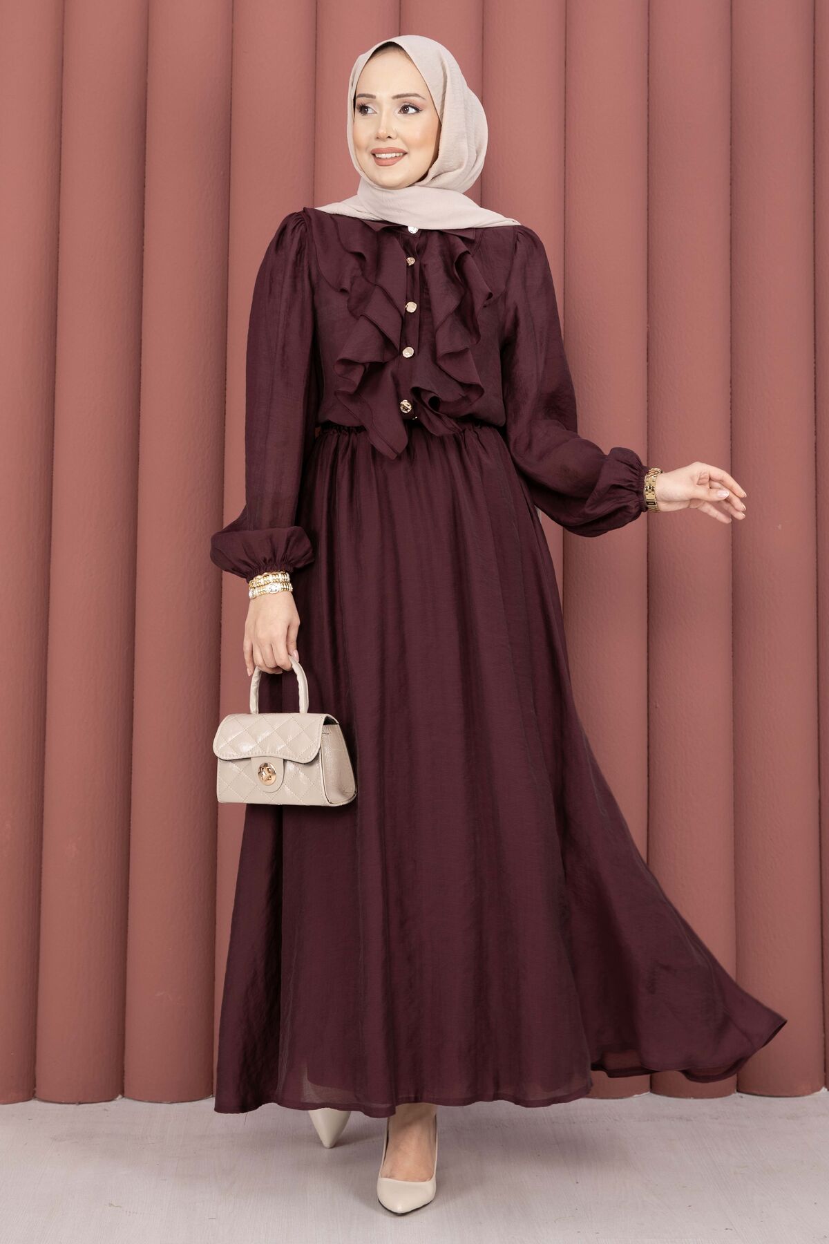 Önü Fırfır Detaylı Etekli Tesettür Takım Bordo