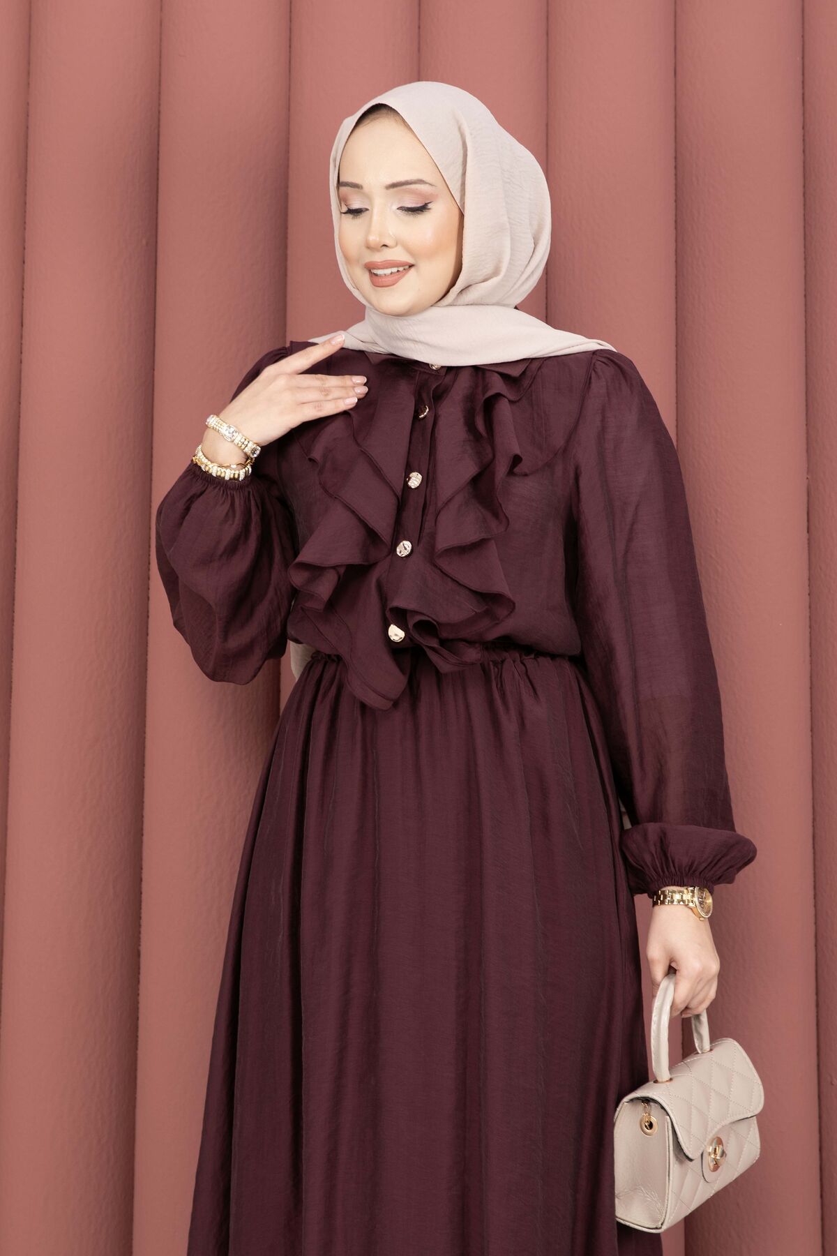 Önü Fırfır Detaylı Etekli Tesettür Takım Mürdüm Yorumları