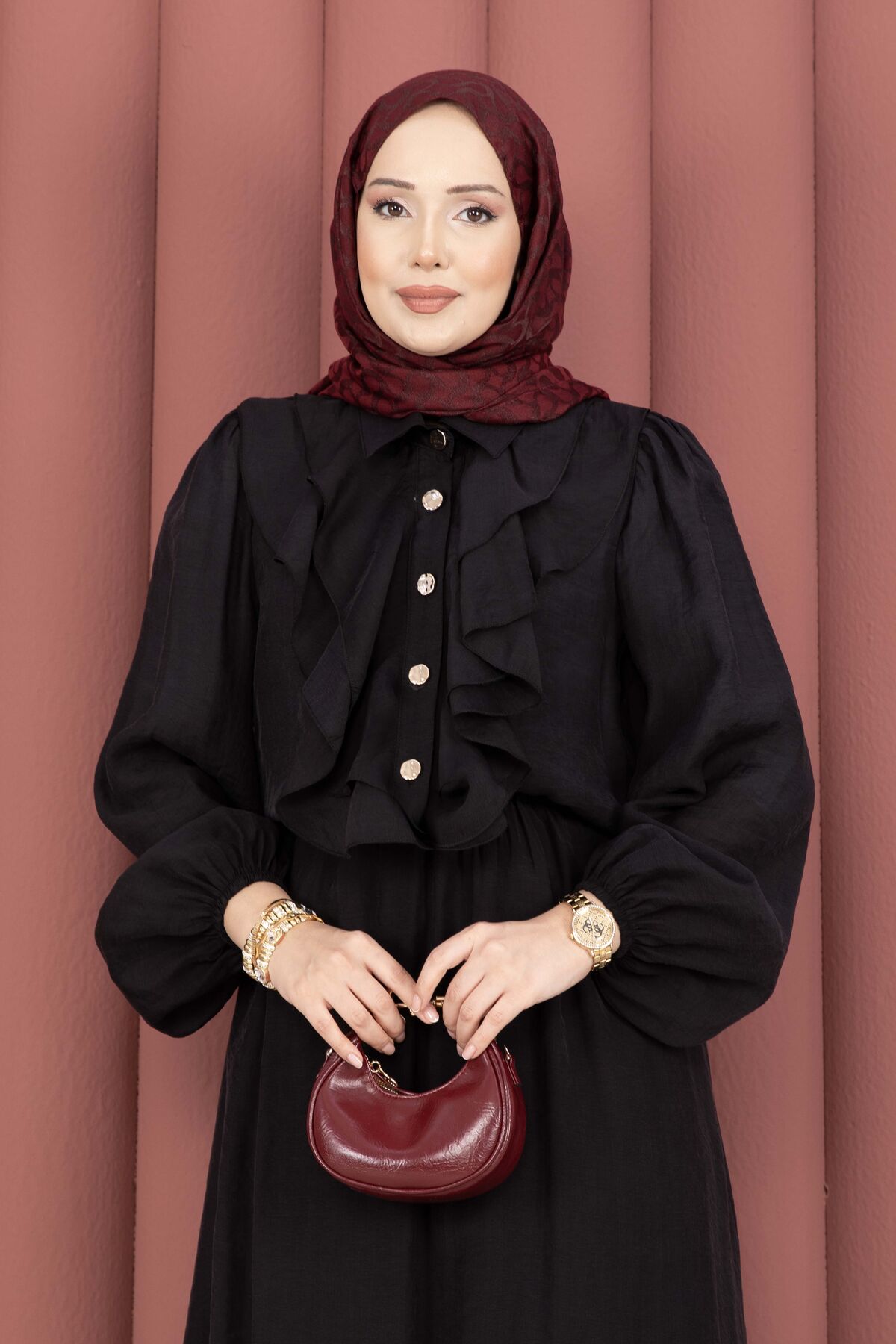 Zarif ve modern tasarımıyla öne çıkan Önü Fırfır Detaylı Etekli Tesettür Takım, modal kumaşın yumuşak dokusu sayesinde gün boyu konfor sağlar. Önden düğmeli gömlek detayı ve etek kısmındaki fırfır tasarımı ile şık bir duruş sunar. Hem günlük kullanımda hem özel gün kombinlerinde rahatlıkla tercih edebilirsiniz.