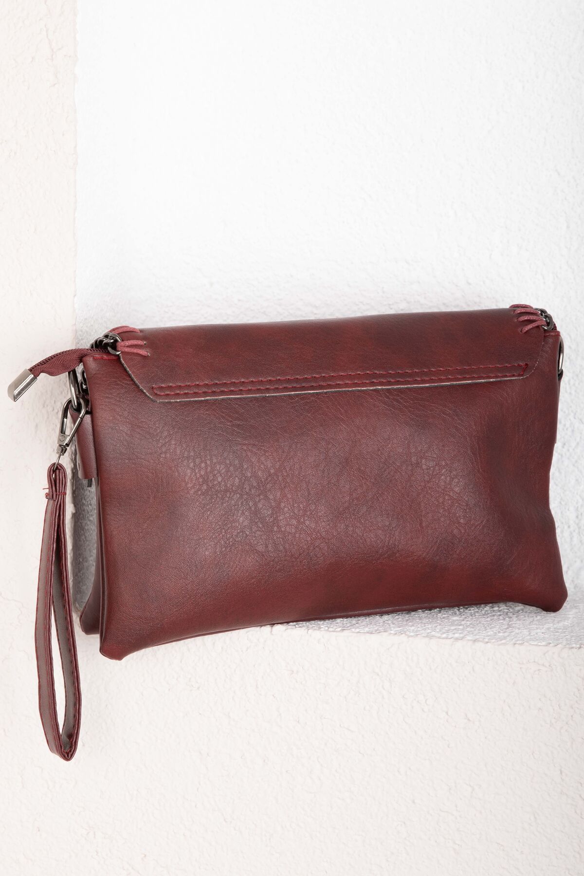 Örgü Dikiş Kapaklı El & Omuz Çantası Bordo