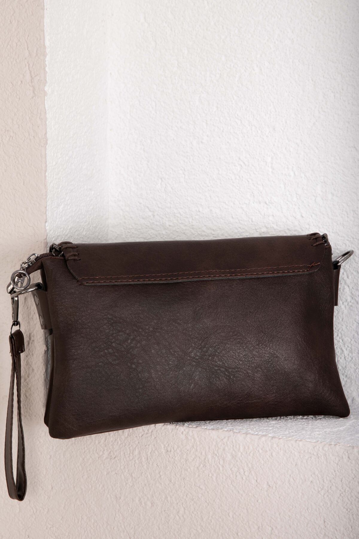 Omuz askısı ile kola asılarak kullanılabilir, klos model olarak elde şık bir duruş sunar. Ayrıca bileğe takılabilen sap detayı sayesinde pratik ve zarif bir kullanım imkânı sağlar.