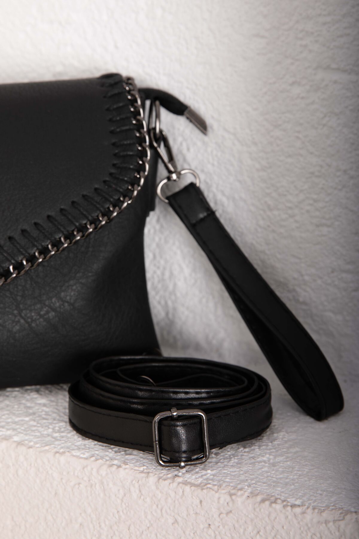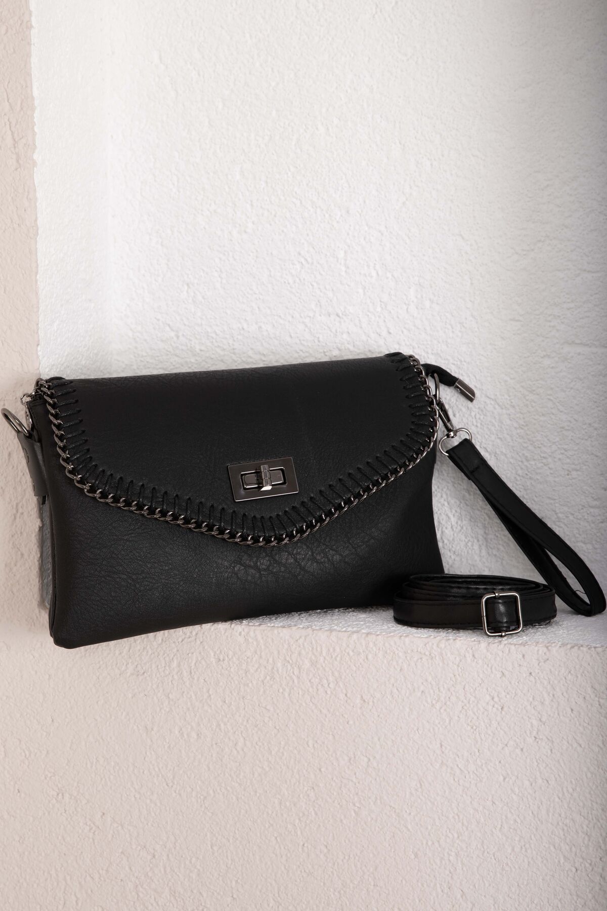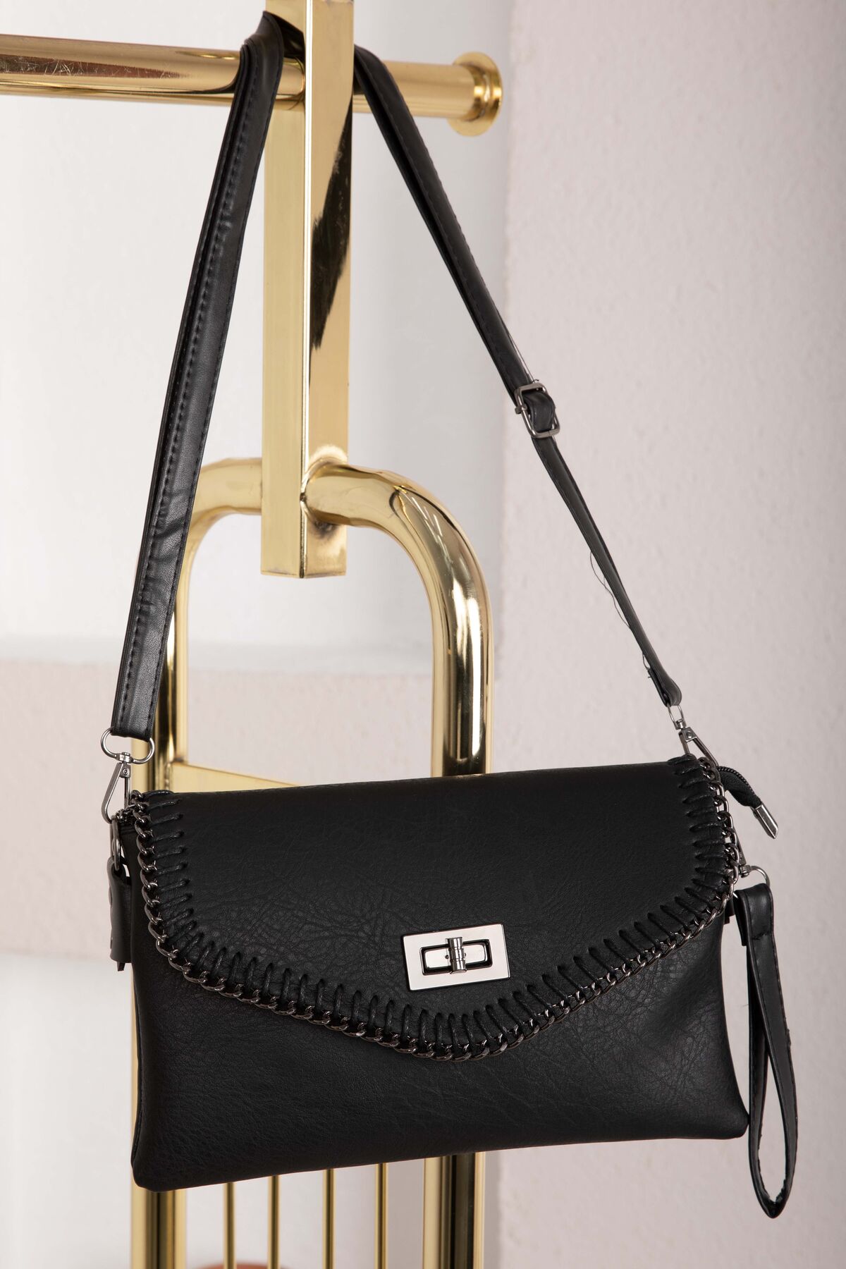 Örgü dikiş detayları ve kapaklı tasarımıyla öne çıkan bu model, modern ve şık bir görünüm sunar. Günlük kombinlerden özel davetlere kadar rahatlıkla tercih edilebilir. Kilitli kapak yapısı sayesinde eşyalarınızı güvenle taşımanıza olanak sağlar.