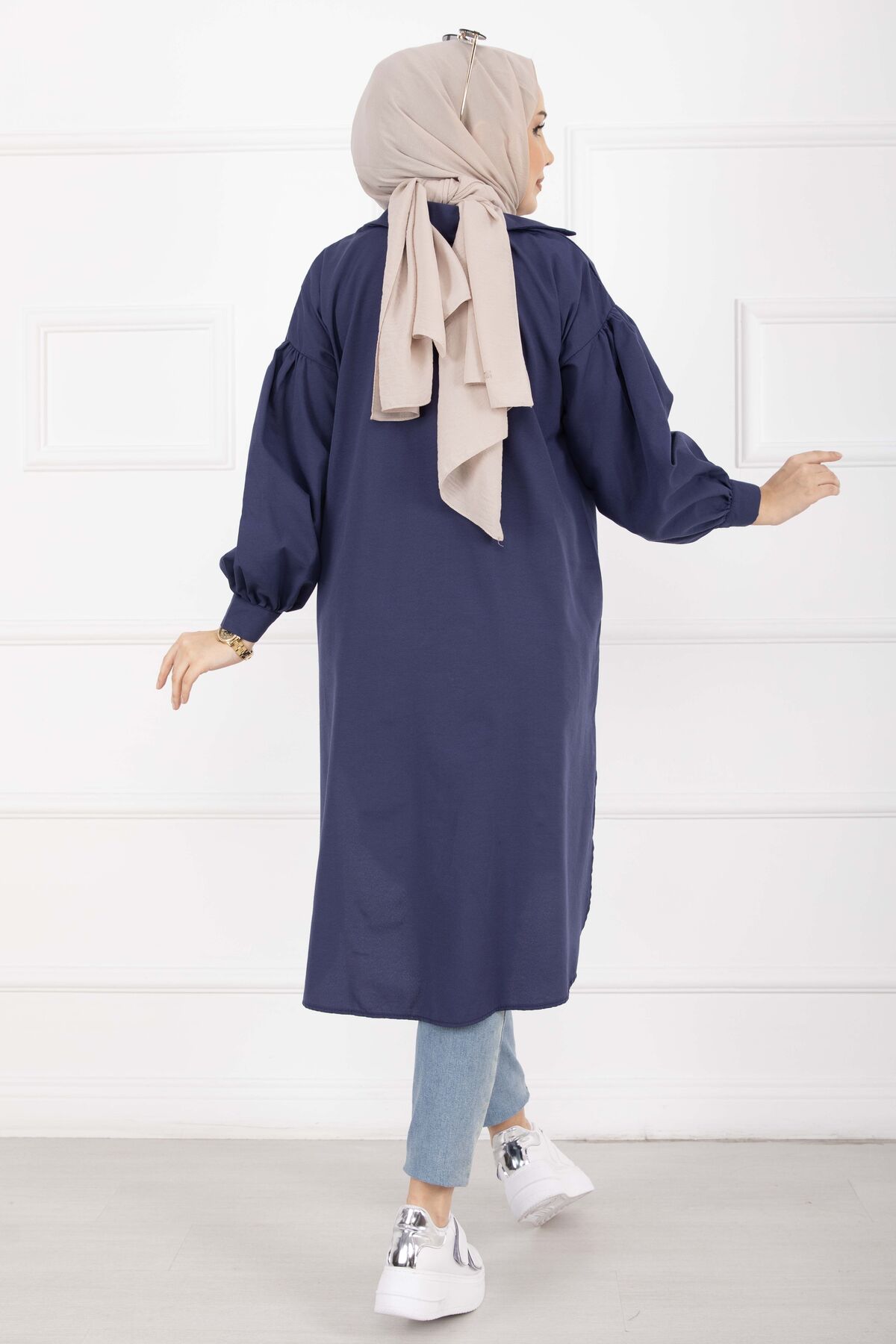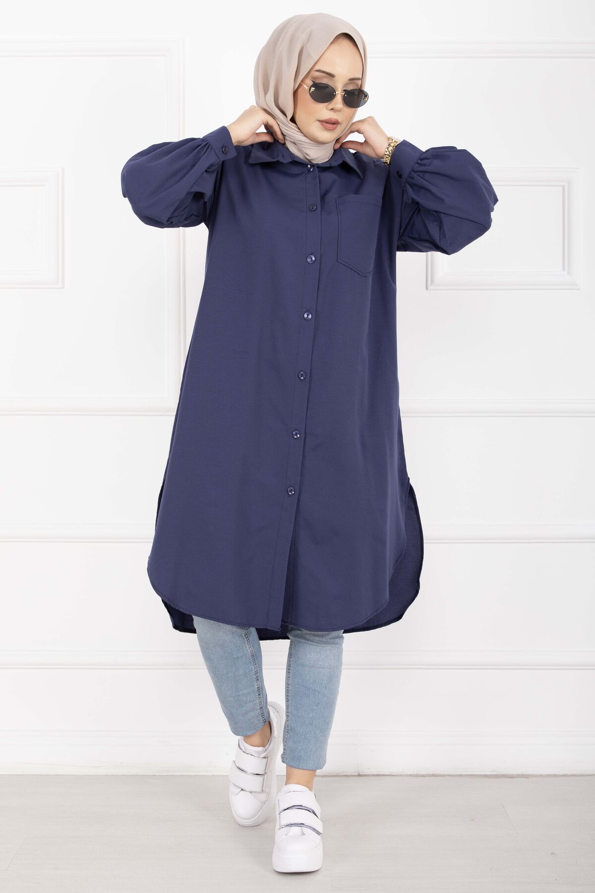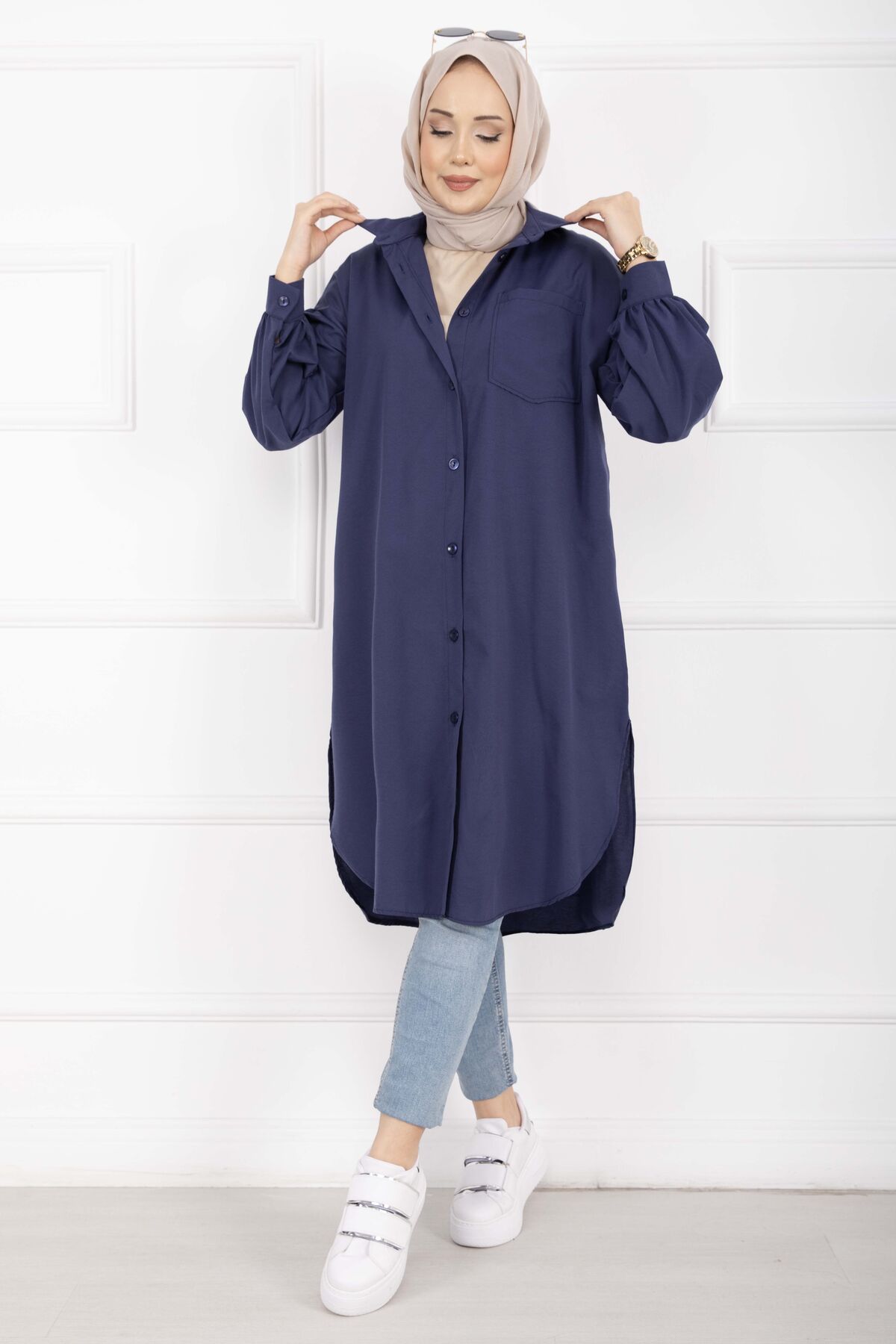 Oval Kesim Tesettür Gömlek Tunik Lacivert
