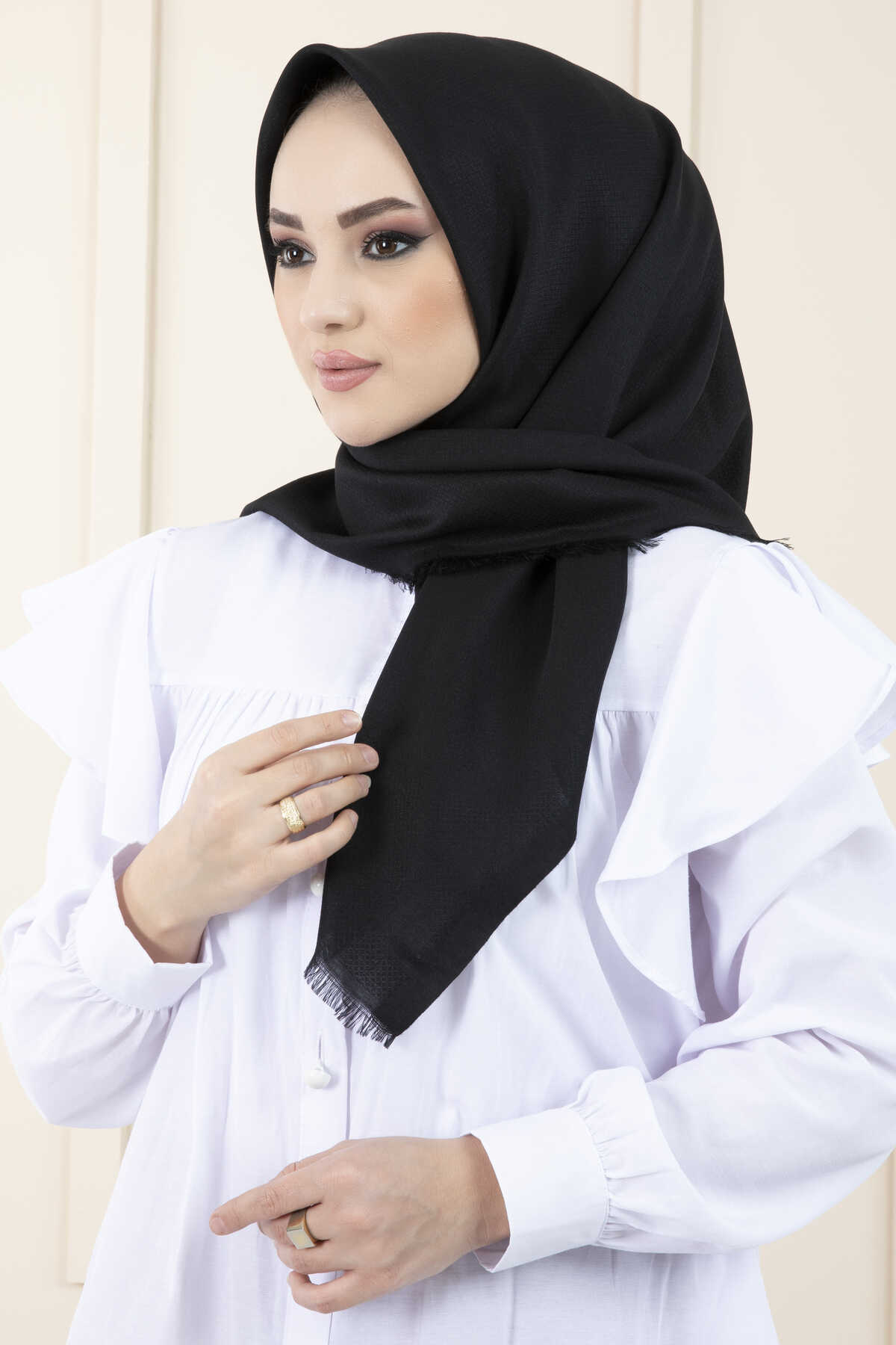 Pamuklu Tesettür Eşarp Siyah