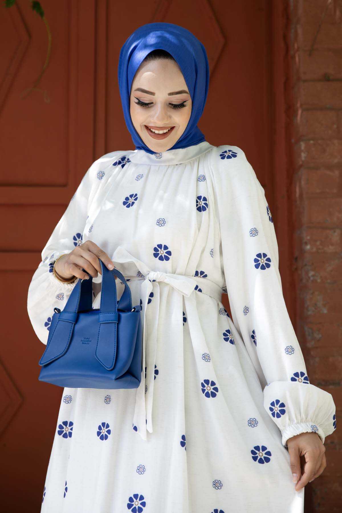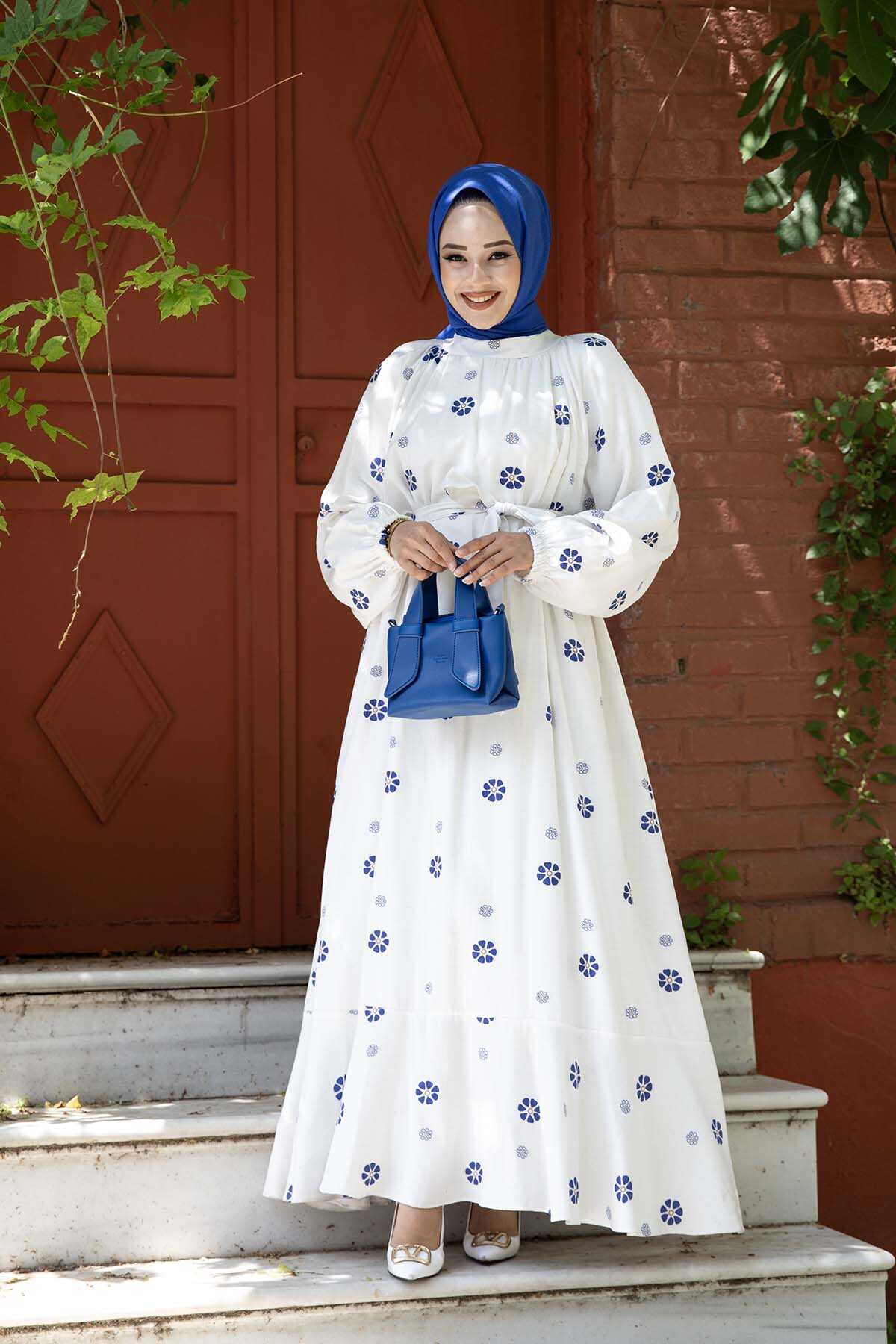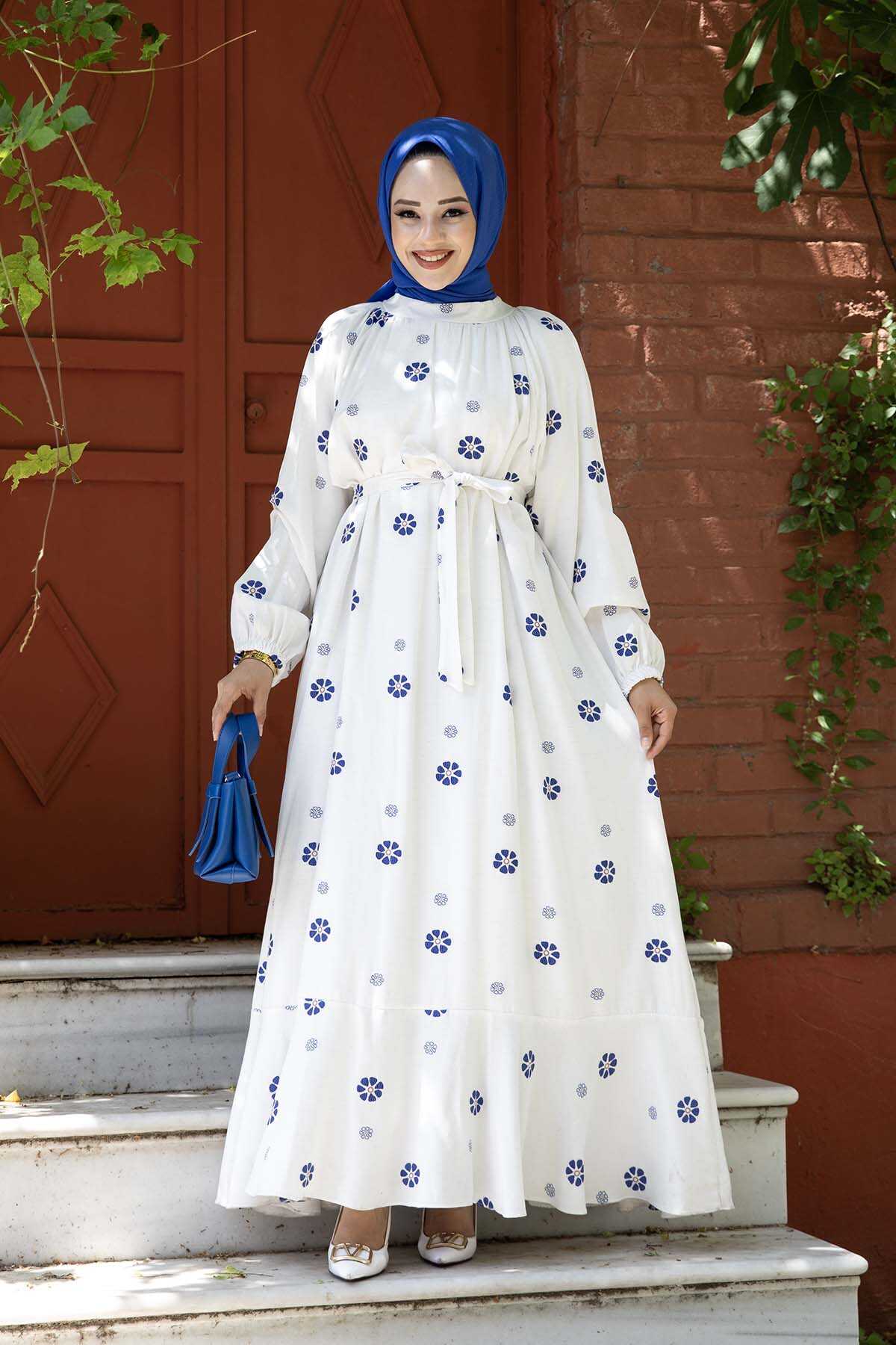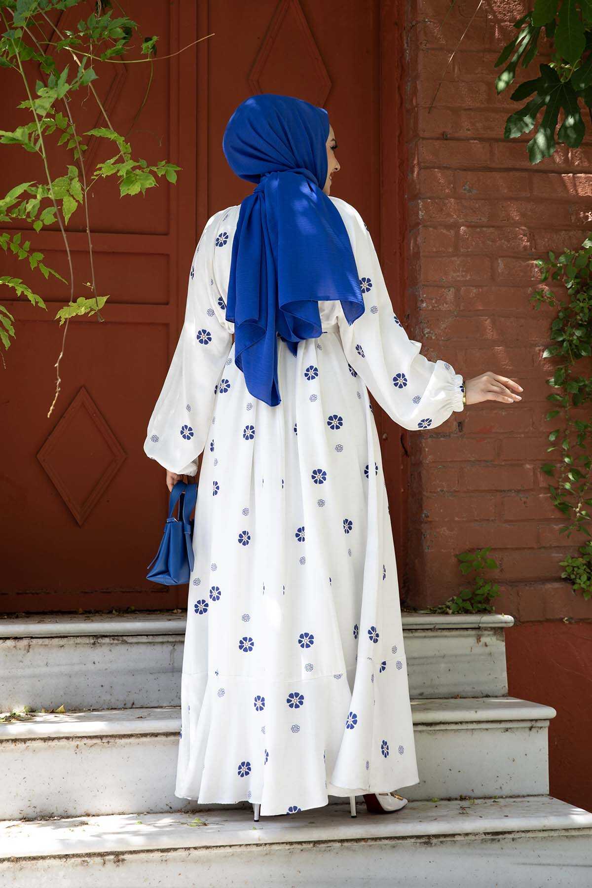 Papatya Desenli Elbise Mavi