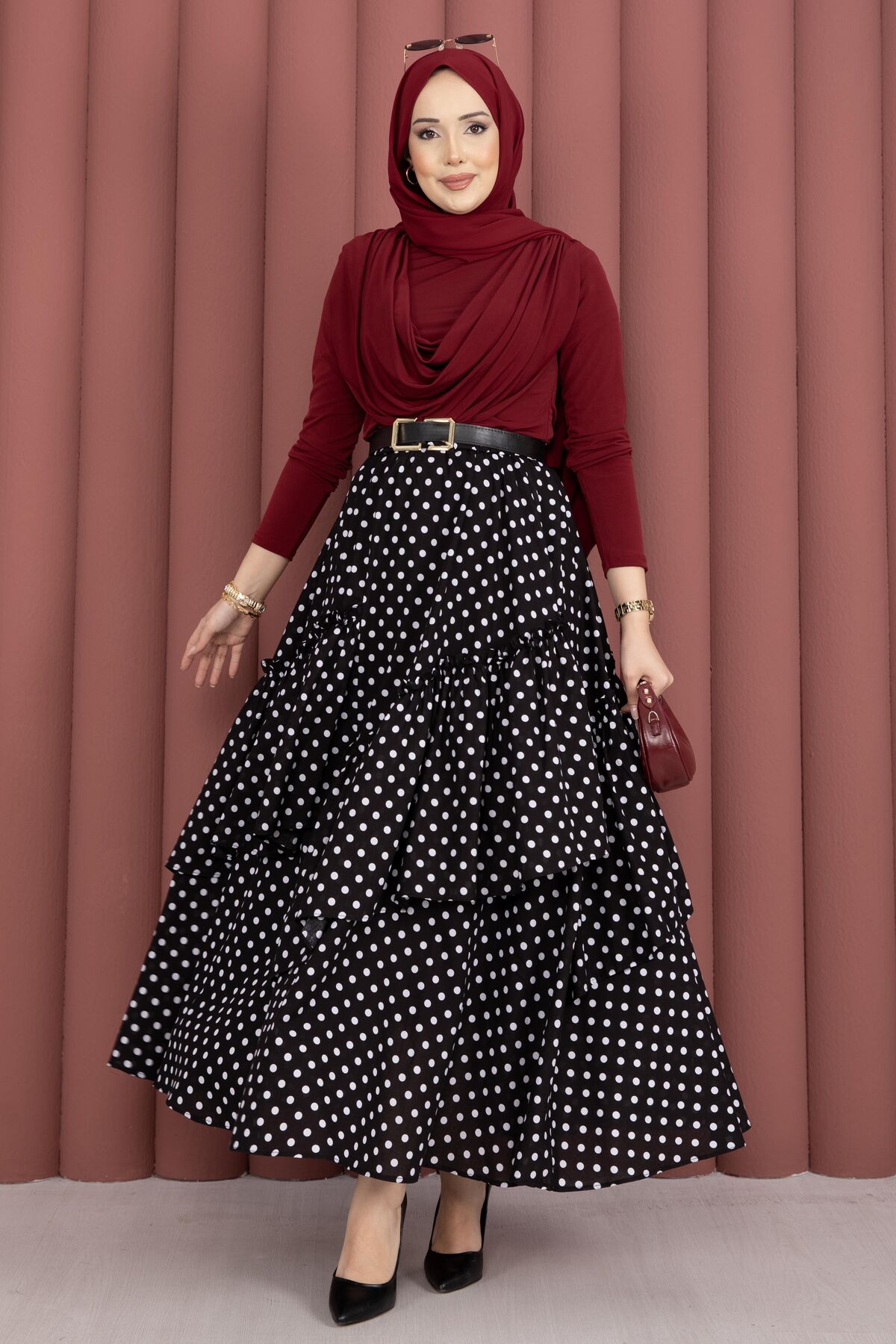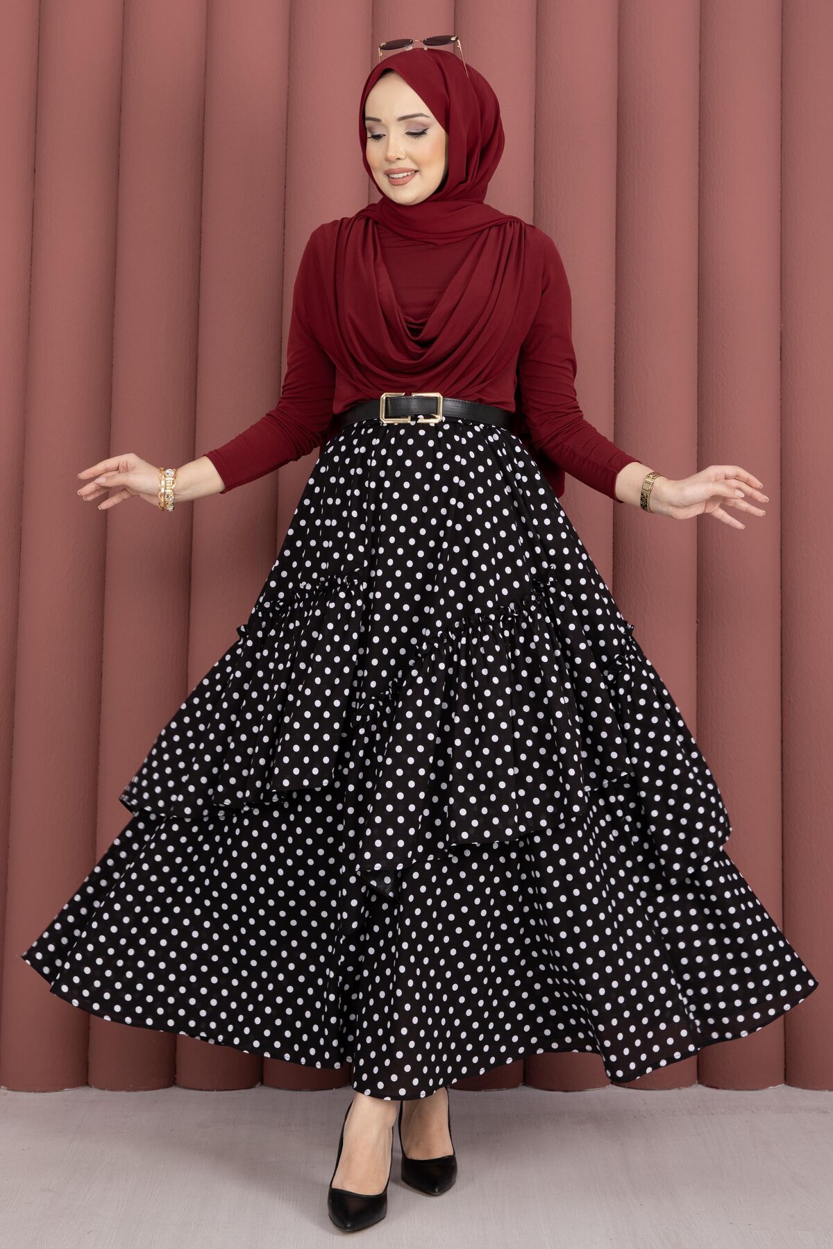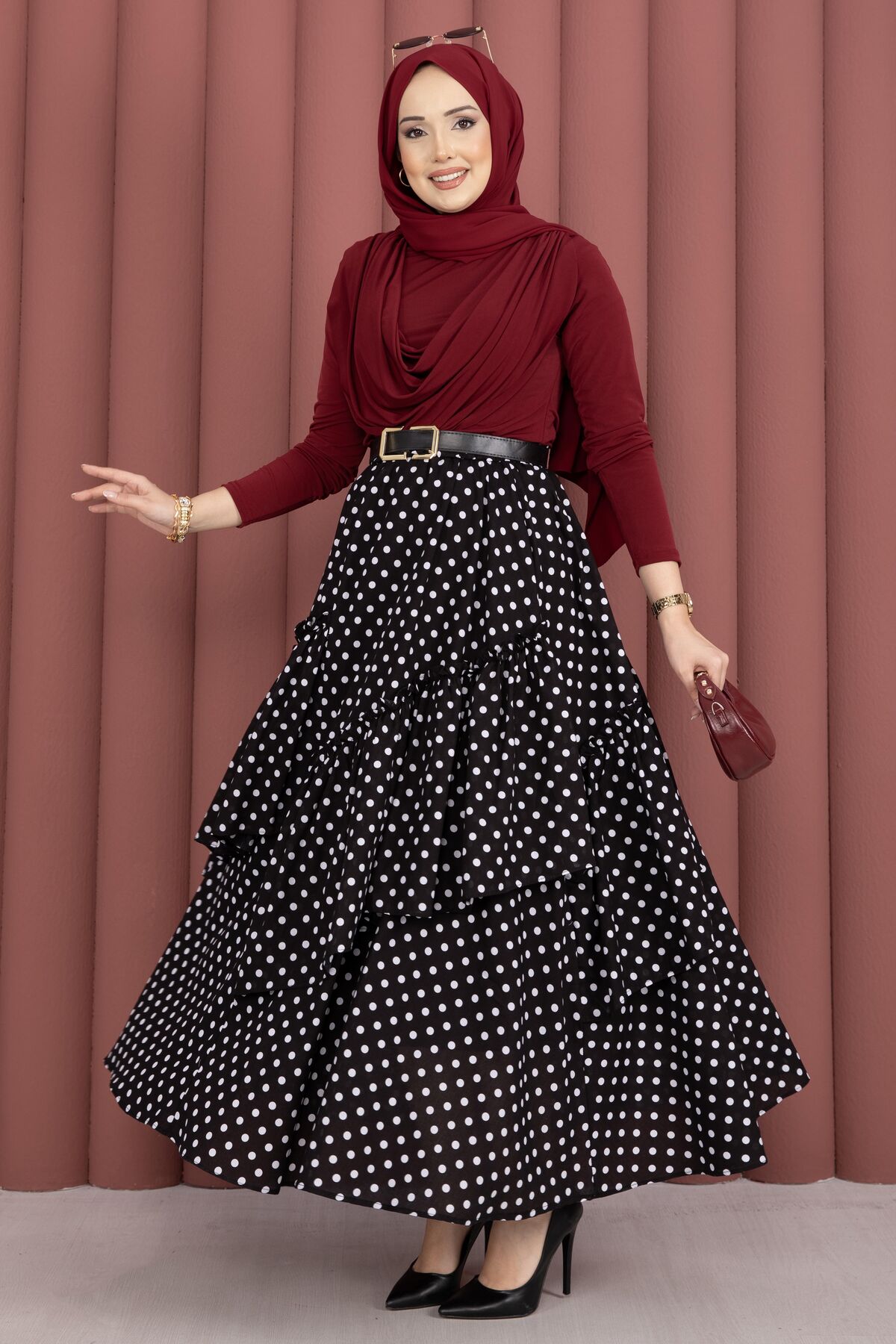 Şık ve modern tasarımıyla öne çıkan Parçalı Asimetrik Kesim Puantiyeli Etek, puantiye deseniyle zamansız bir stil sunar. Asimetrik kesimi sayesinde hareketli ve zarif bir duruş kazandırırken, vual emprime kumaşın hafif yapısı gün boyu konfor sağlar. Beli lastikli yapısı sayesinde kolayca uyum sağlar ve rahat bir kullanım sunar.