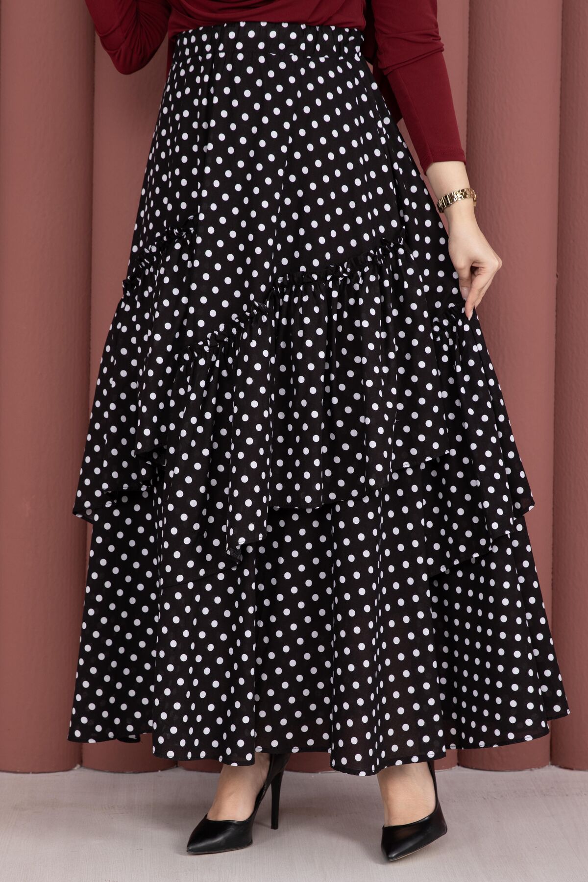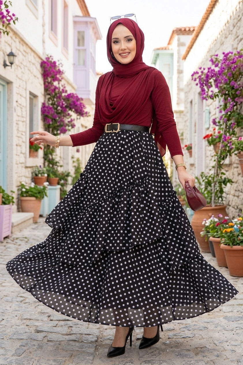 Parçalı Asimetrik Kesim Puantiyeli Etek Siyah Yorumları