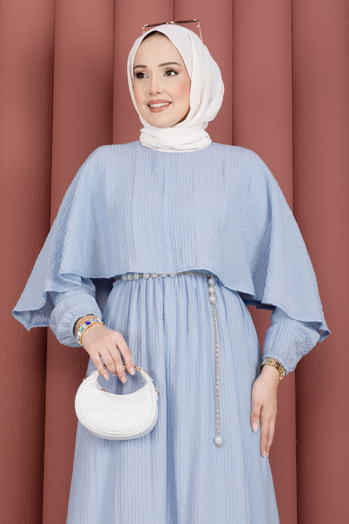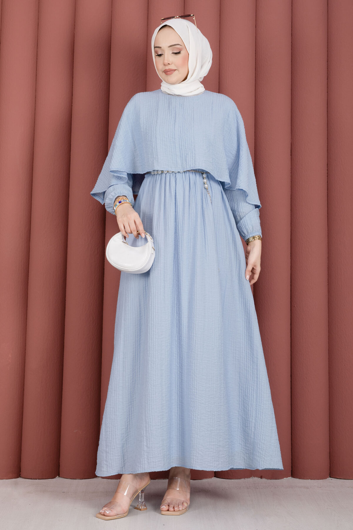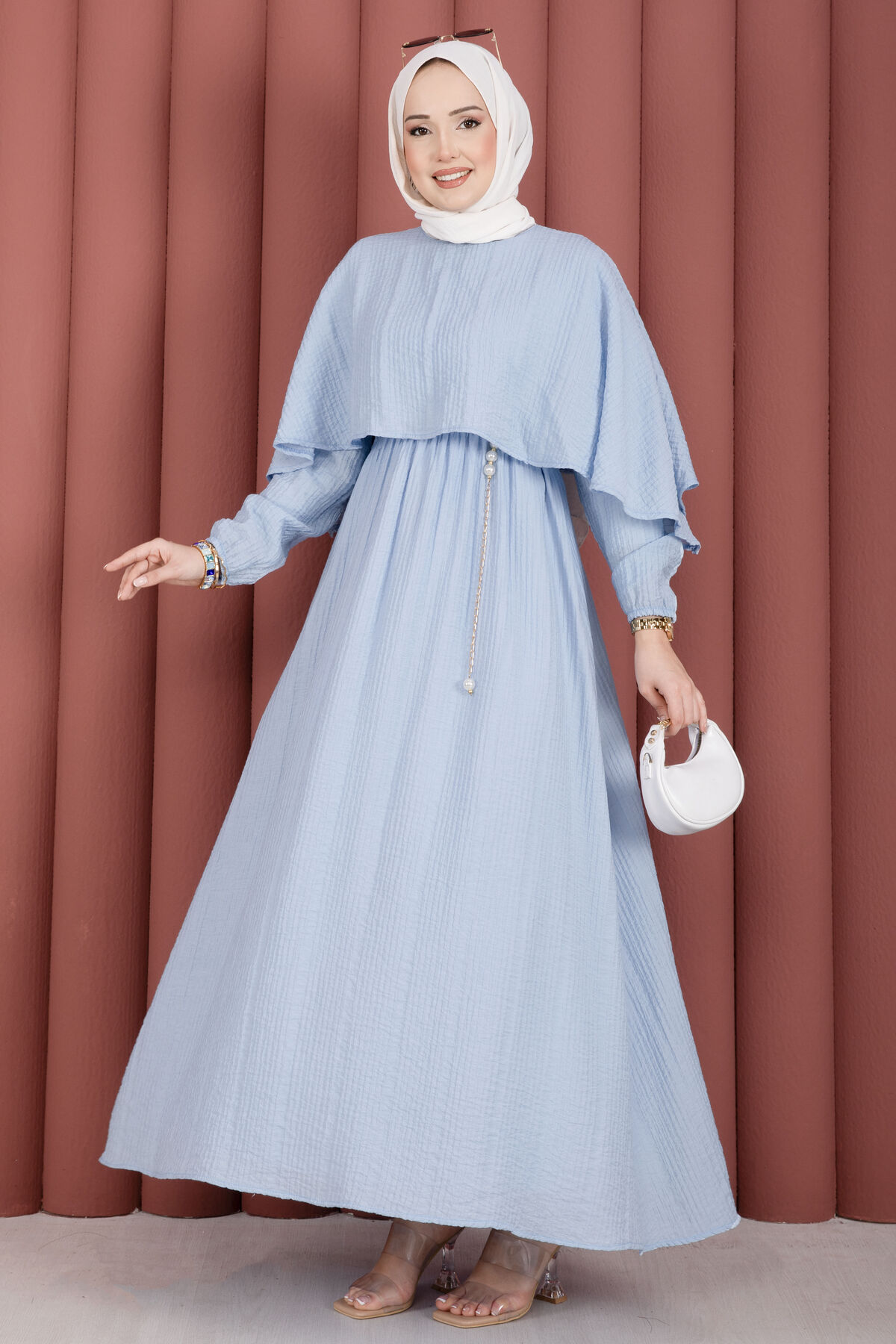 Şıklığı ve rahatlığı bir araya getiren Pelerin Yaka Beli Lastikli Astarlı Yazlık Elbise, gofre kumaşın kendine has dokusu sayesinde zarif ve modern bir görünüm sunar. Kendinden pelerin detayıyla farklılaşan bu model, yaz aylarında hem günlük kullanıma hem de özel davetlere uyum sağlar. Beli lastikli yapısı konforlu bir kullanım sunarken, astarlı oluşu iç göstermeyen şık bir duruş sağlar.