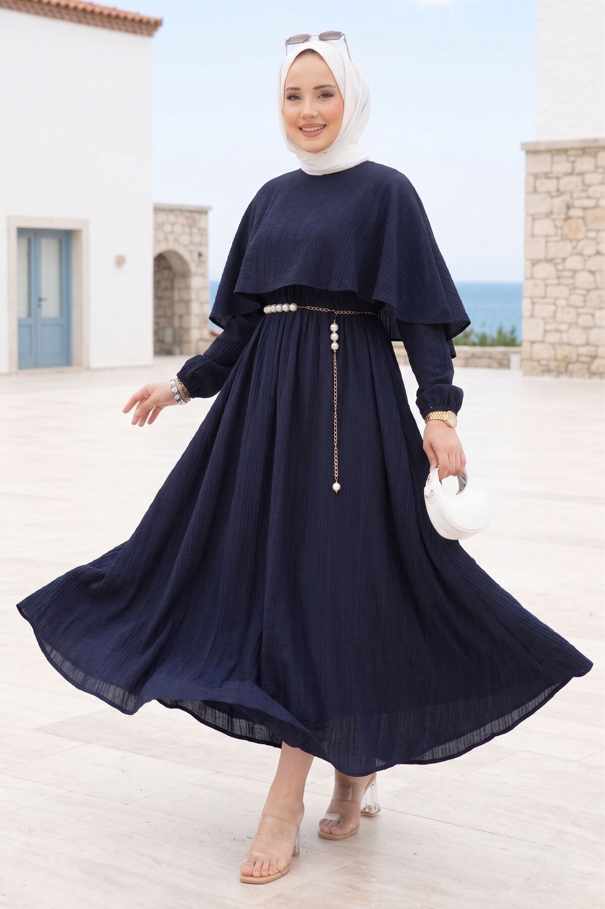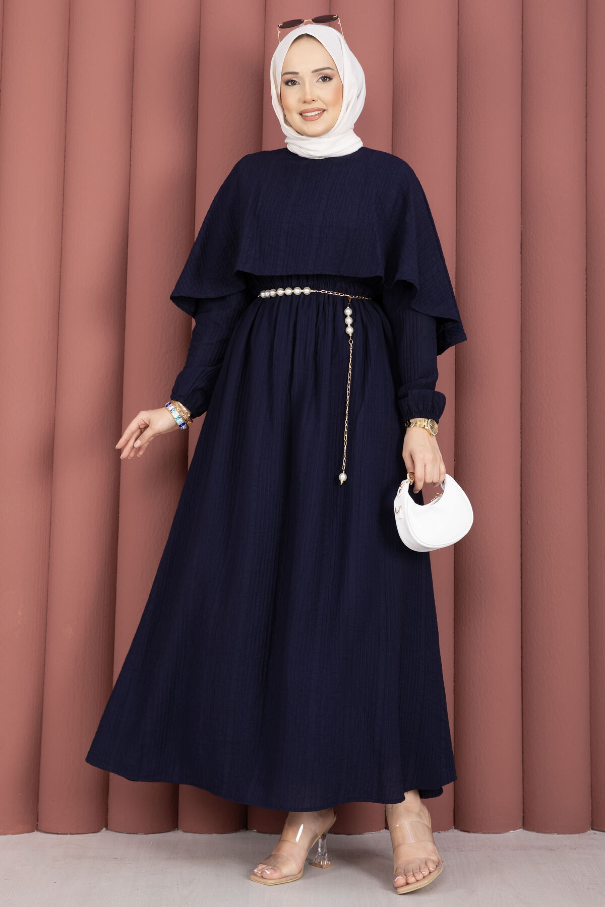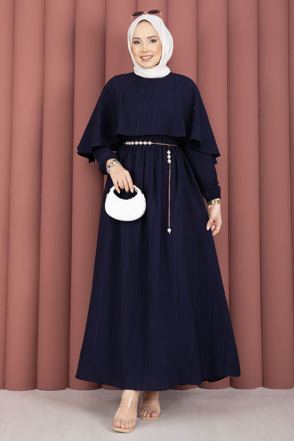 Pelerin Yaka Beli Lastikli Astarlı Yazlık Elbise Lacivert Yorumları