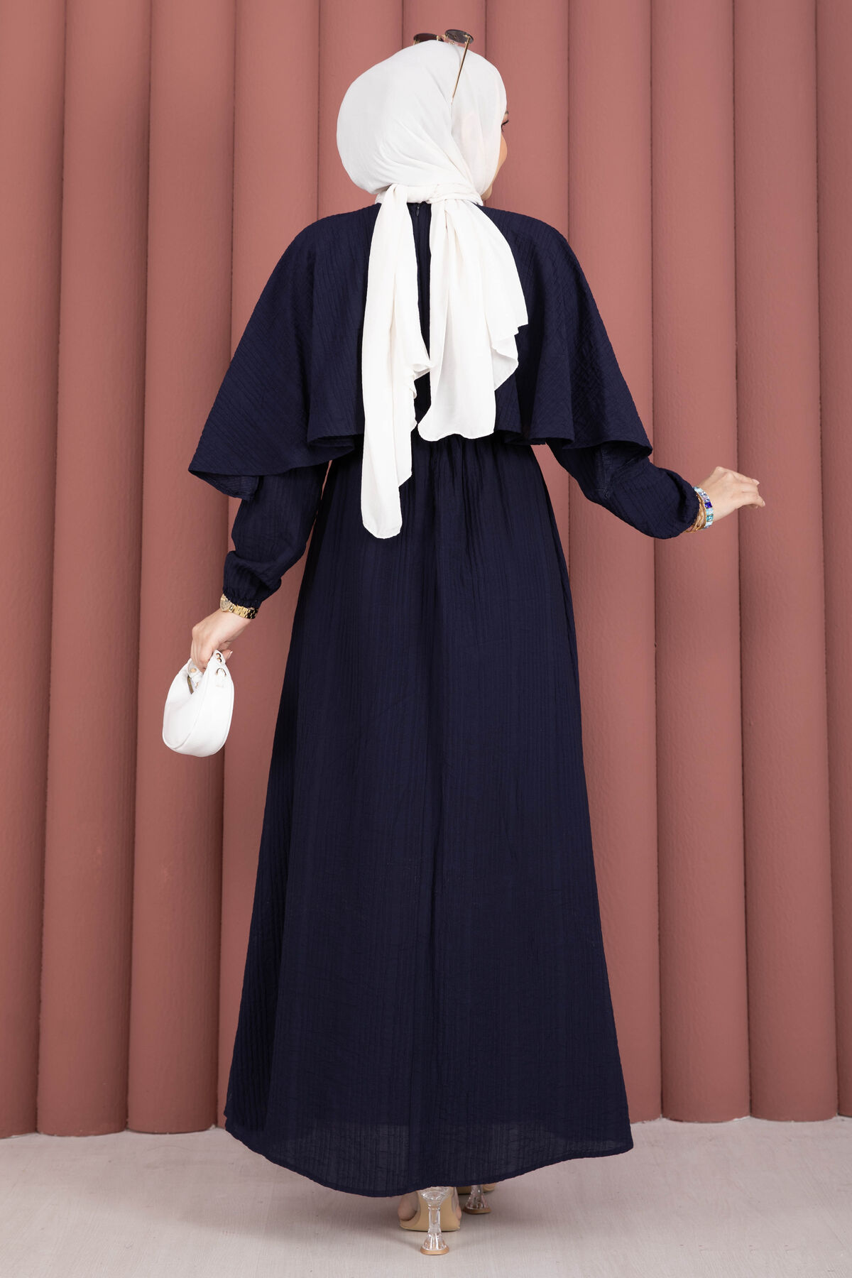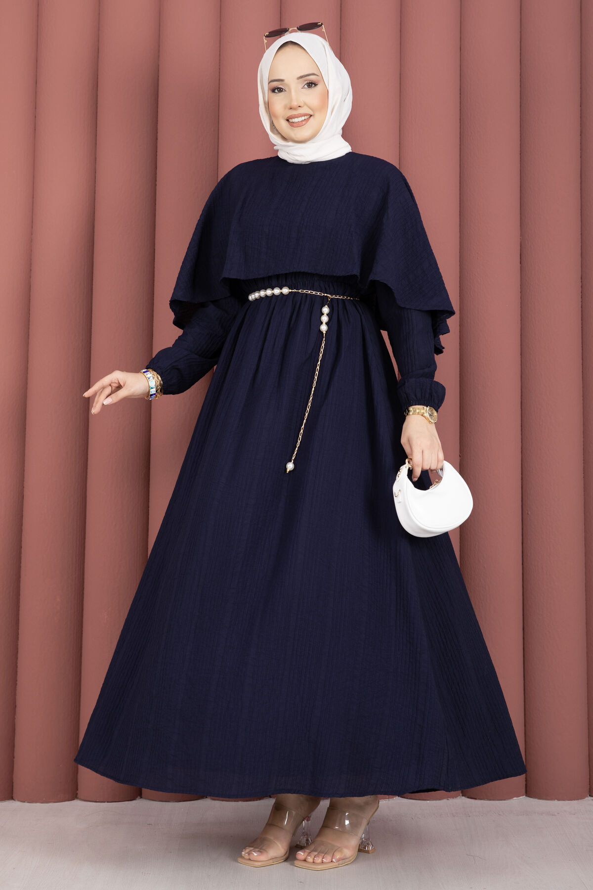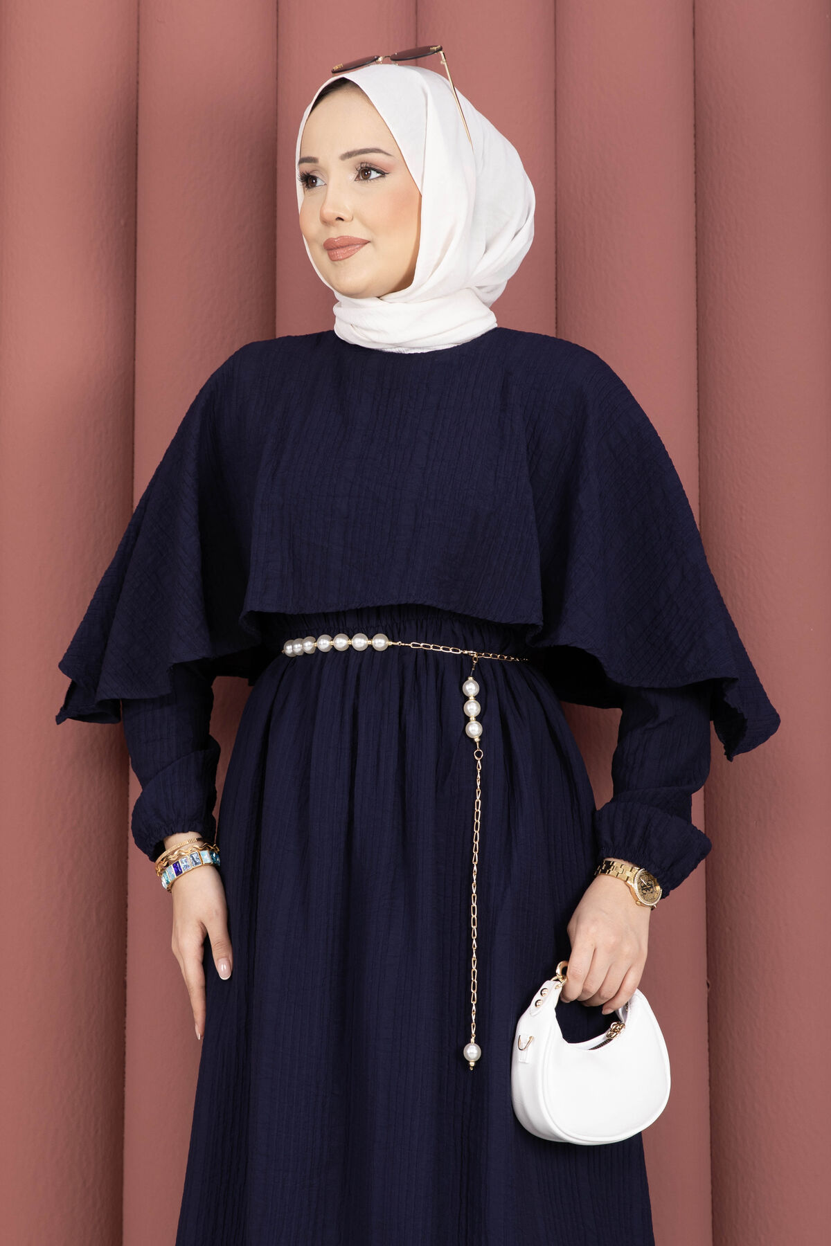 Pelerin Yaka Beli Lastikli Astarlı Yazlık Elbise Lacivert Yorumları