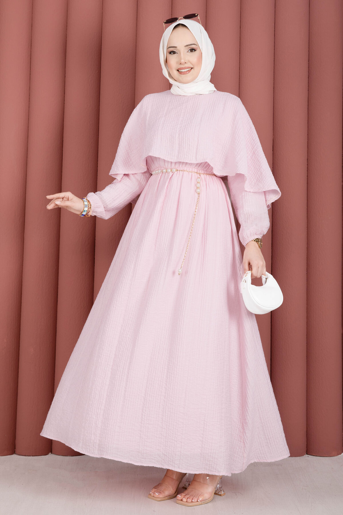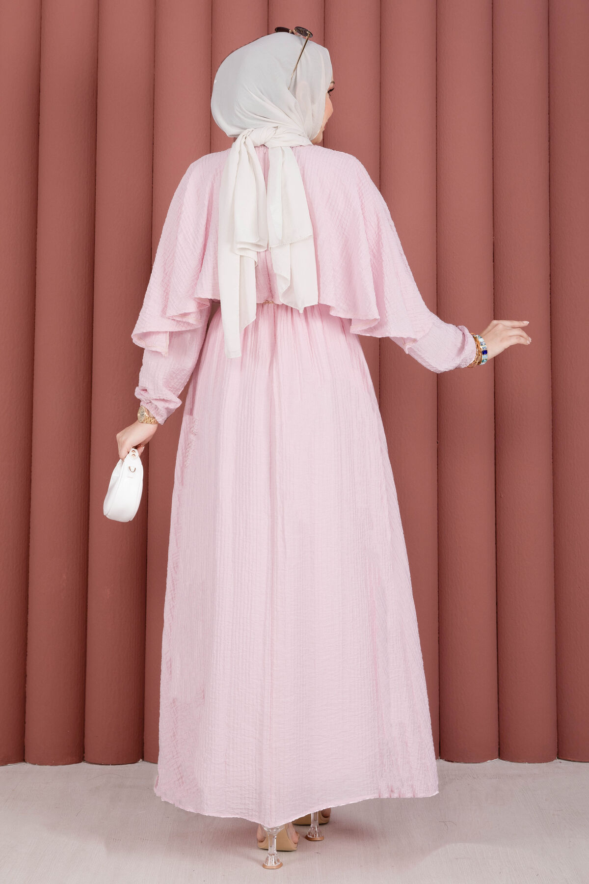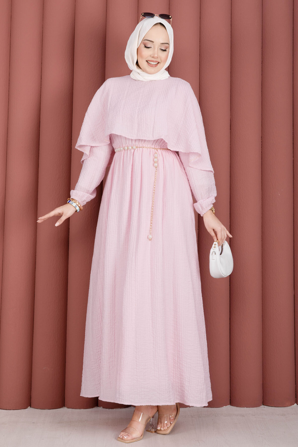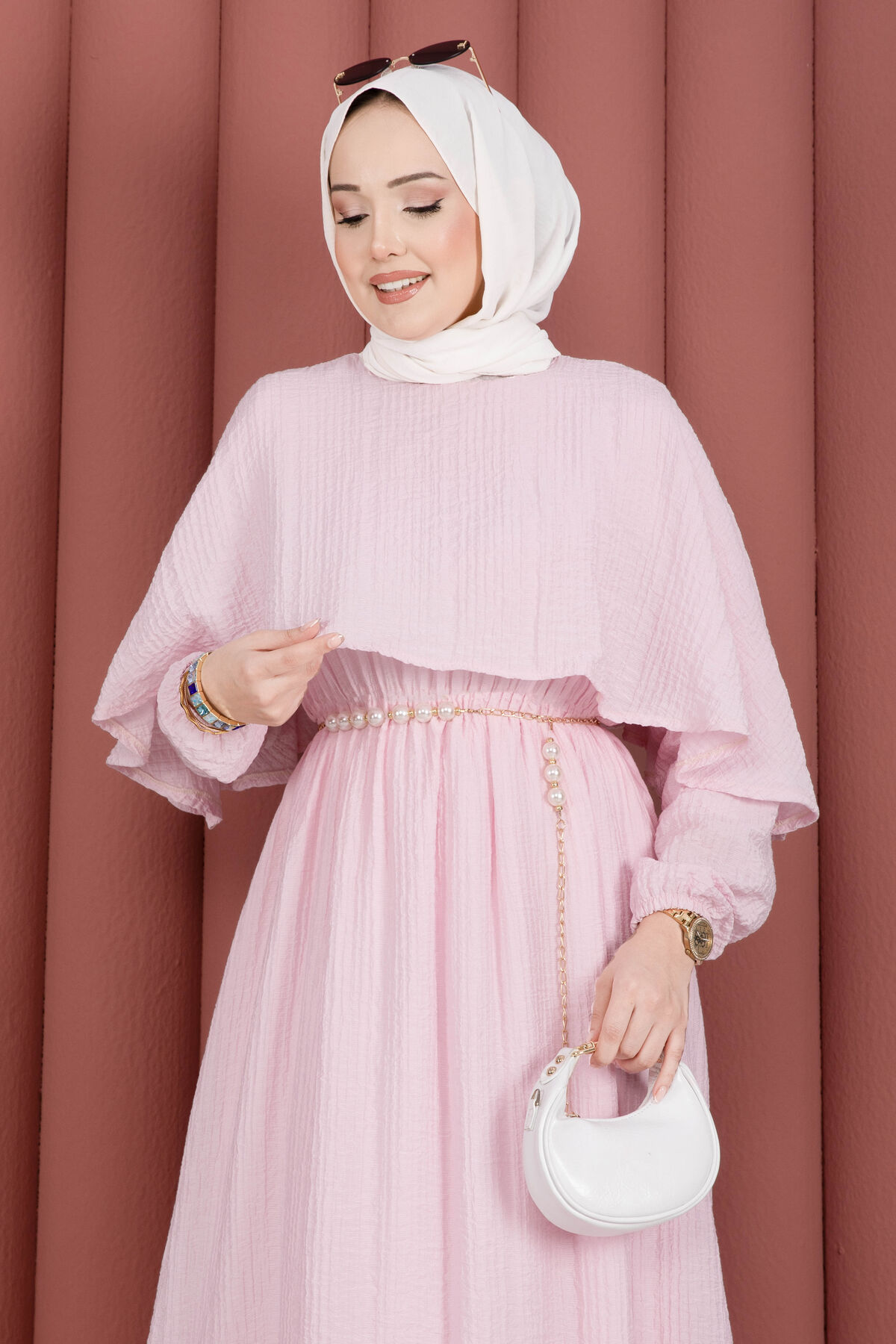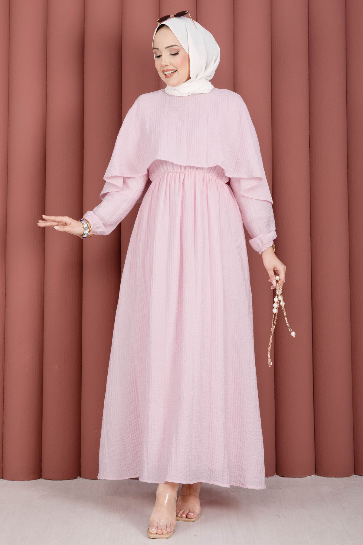Pelerin Yaka Beli Lastikli Astarlı Yazlık Elbise Pembe Yorumları