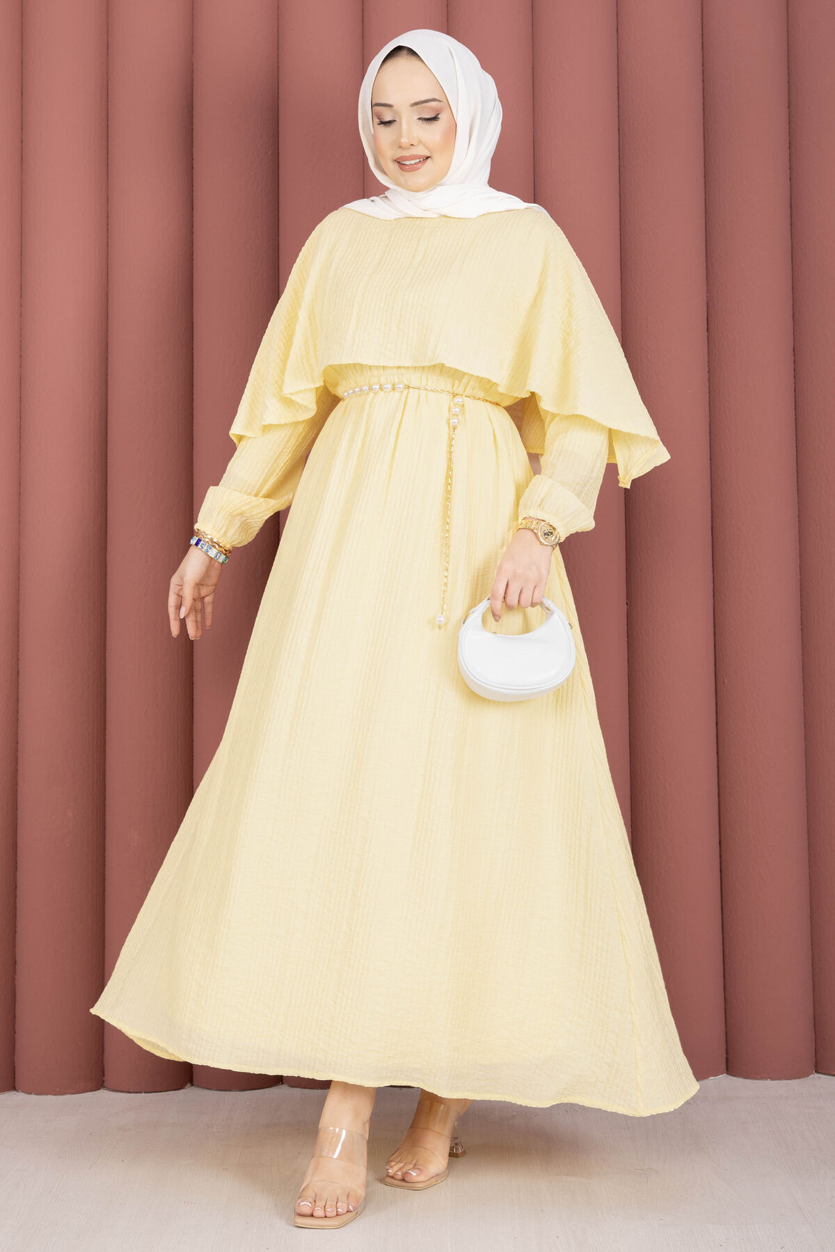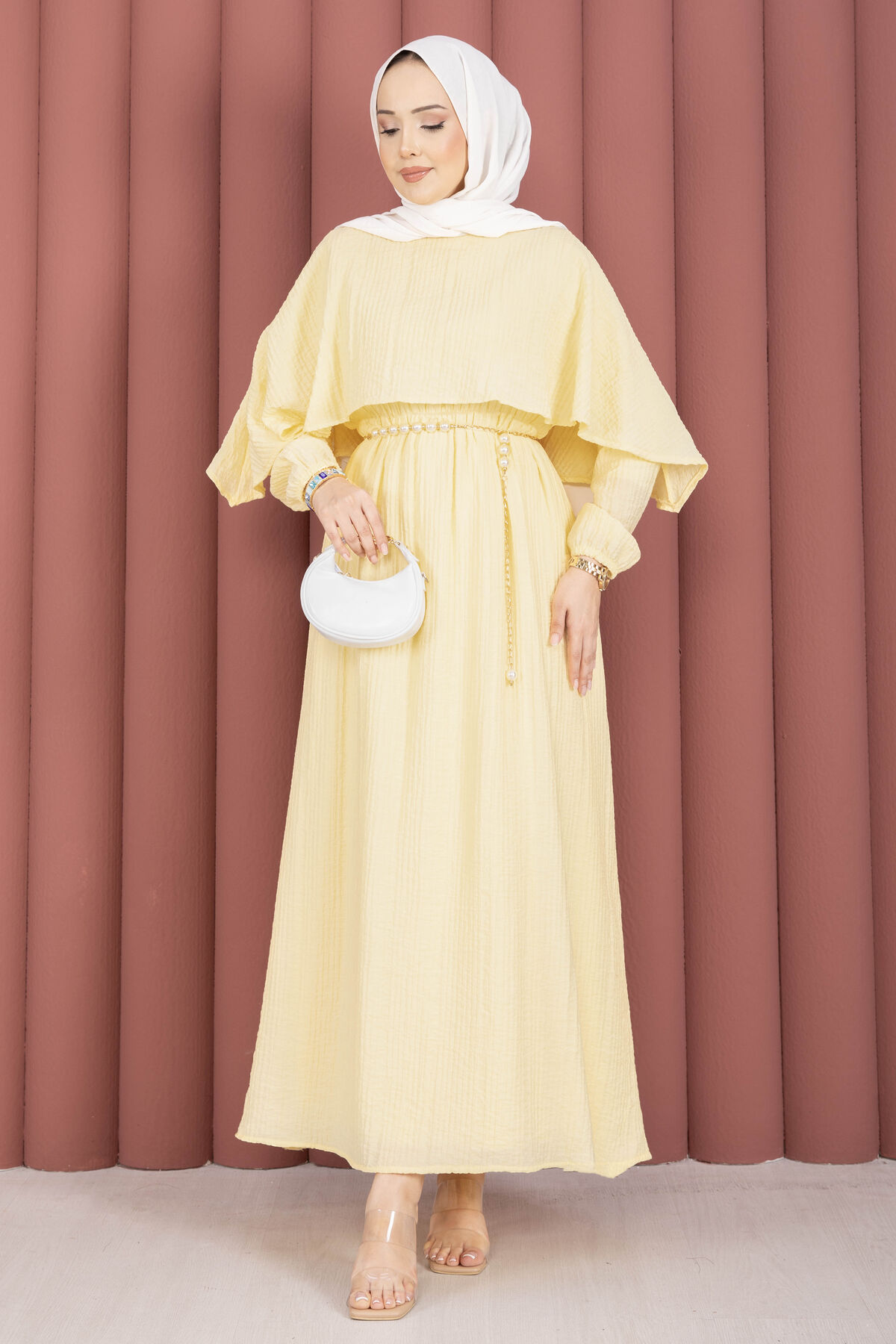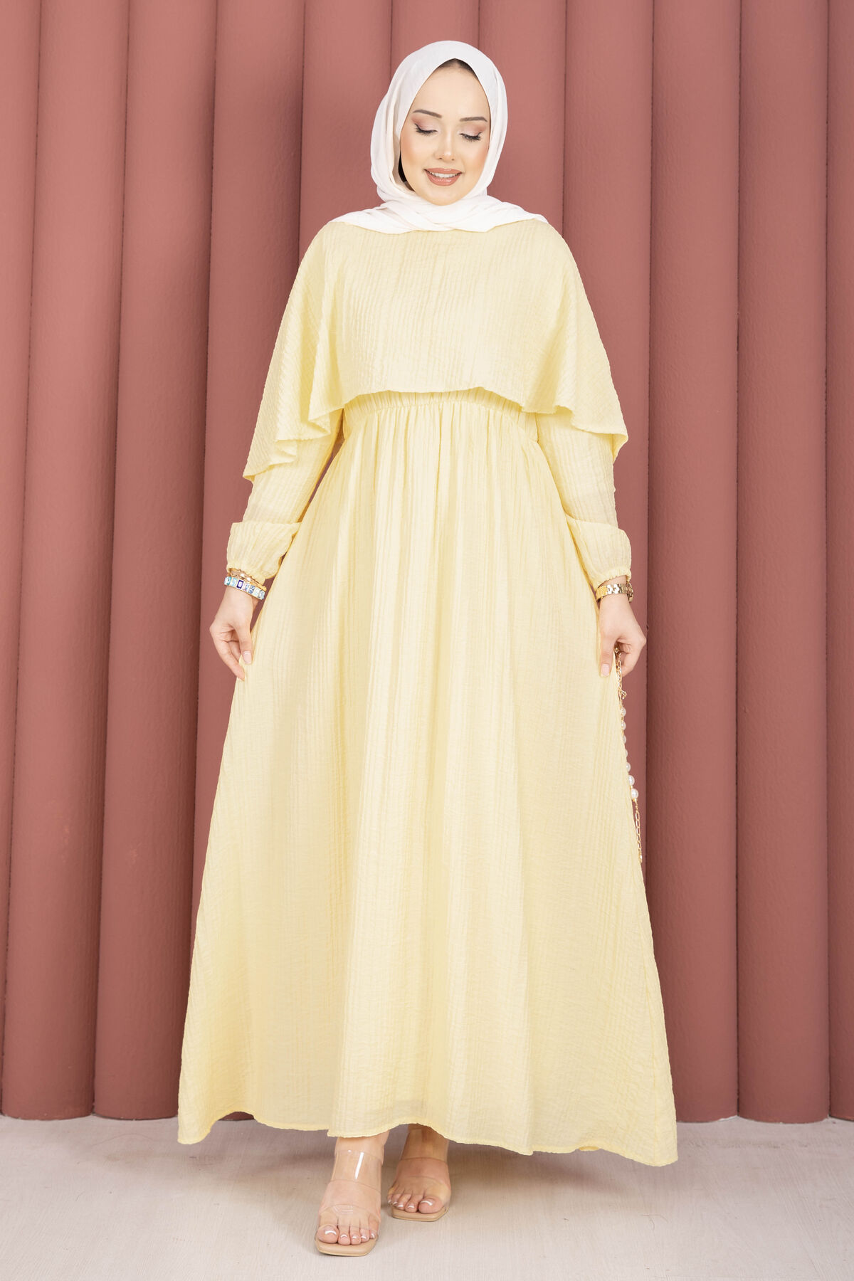 Pelerin Yaka Beli Lastikli Astarlı Yazlık Elbise Sarı Yorumları