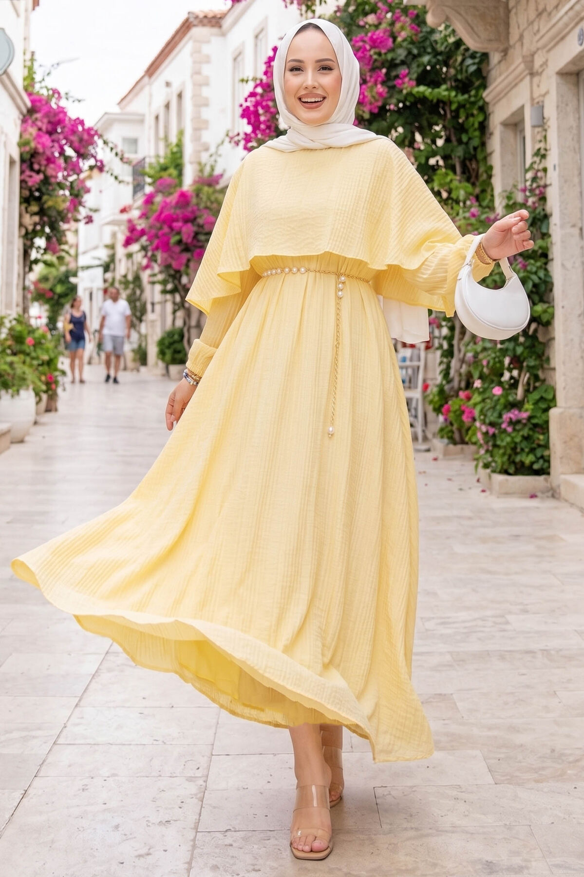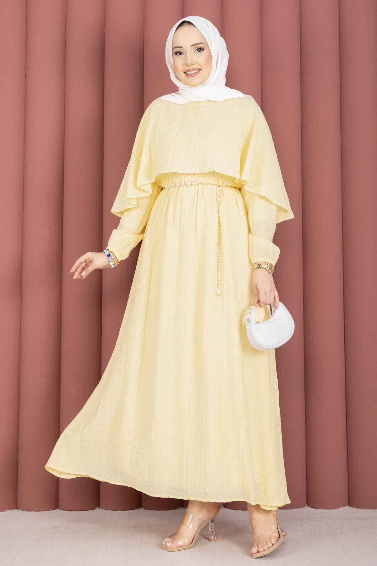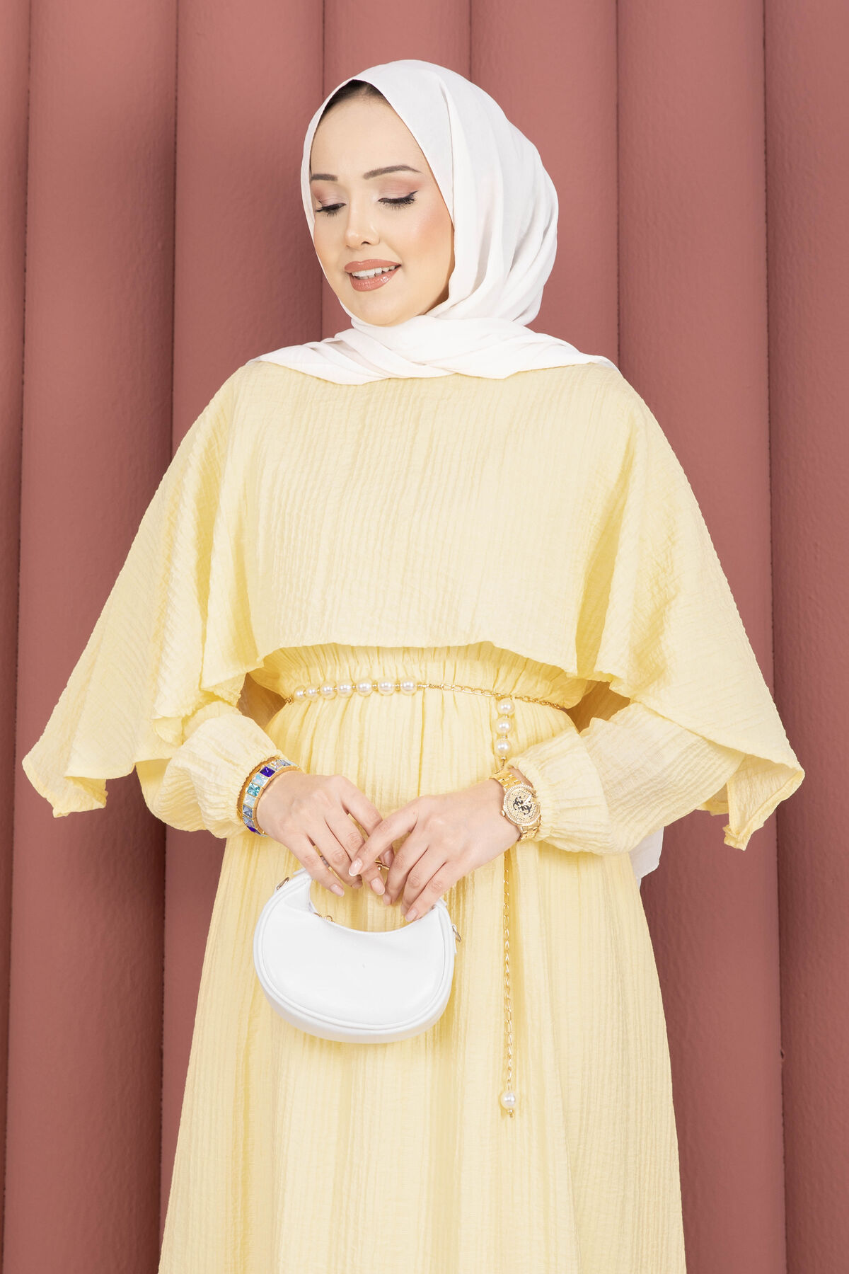 Pelerin Yaka Beli Lastikli Astarlı Yazlık Elbise Sarı Yorumları