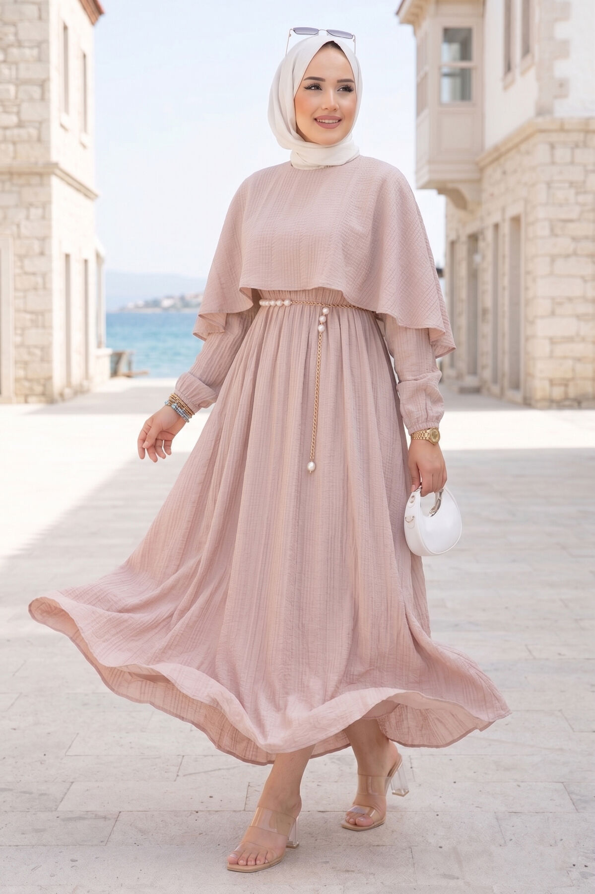 Pelerin Yaka Beli Lastikli Astarlı Yazlık Elbise Vizon Yorumları