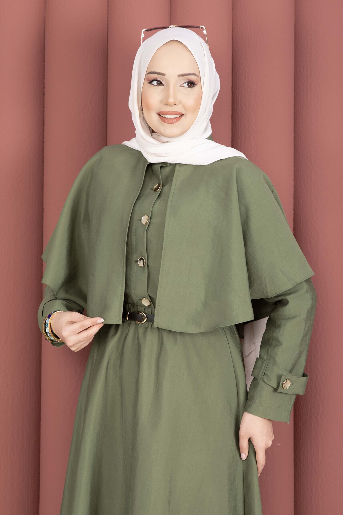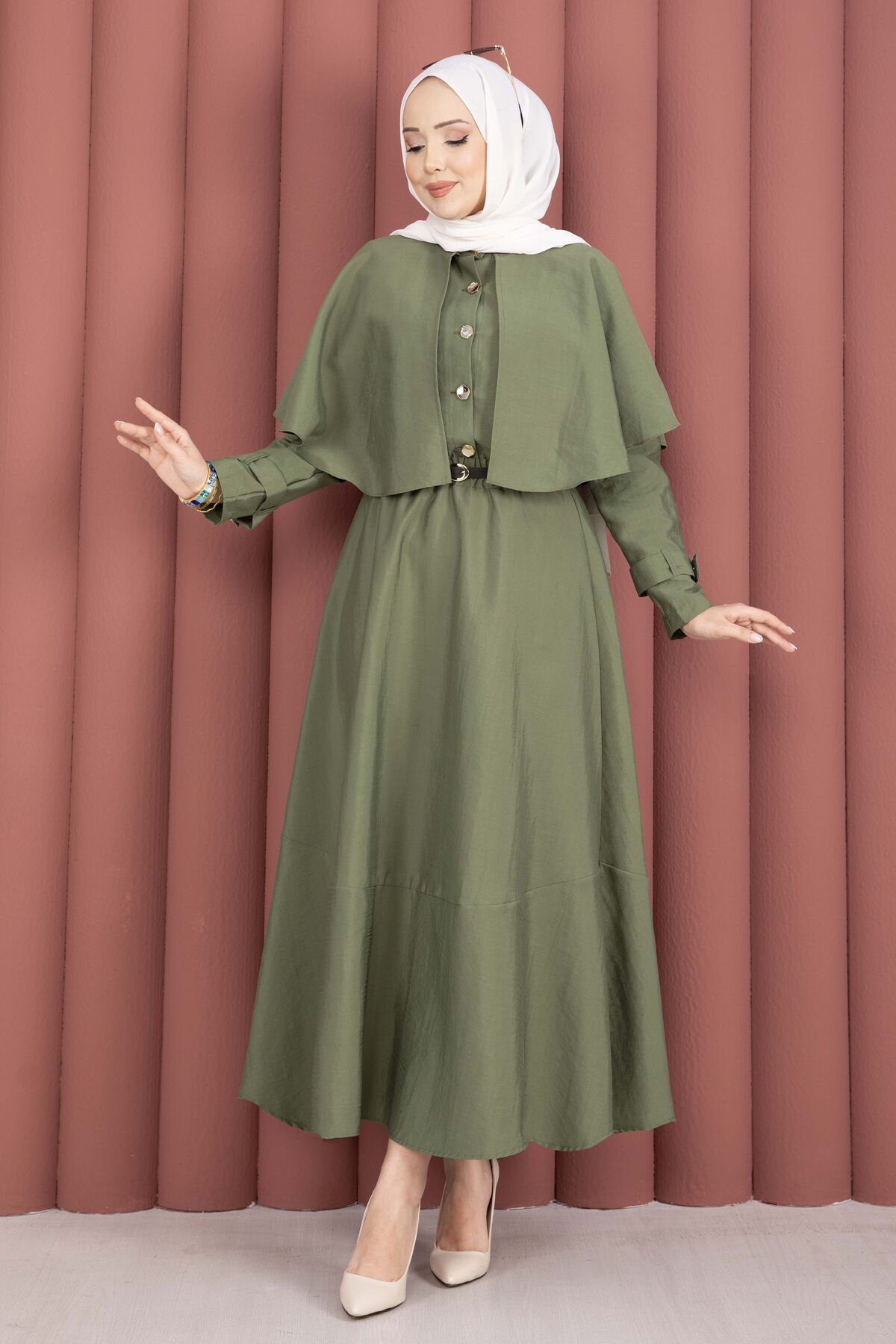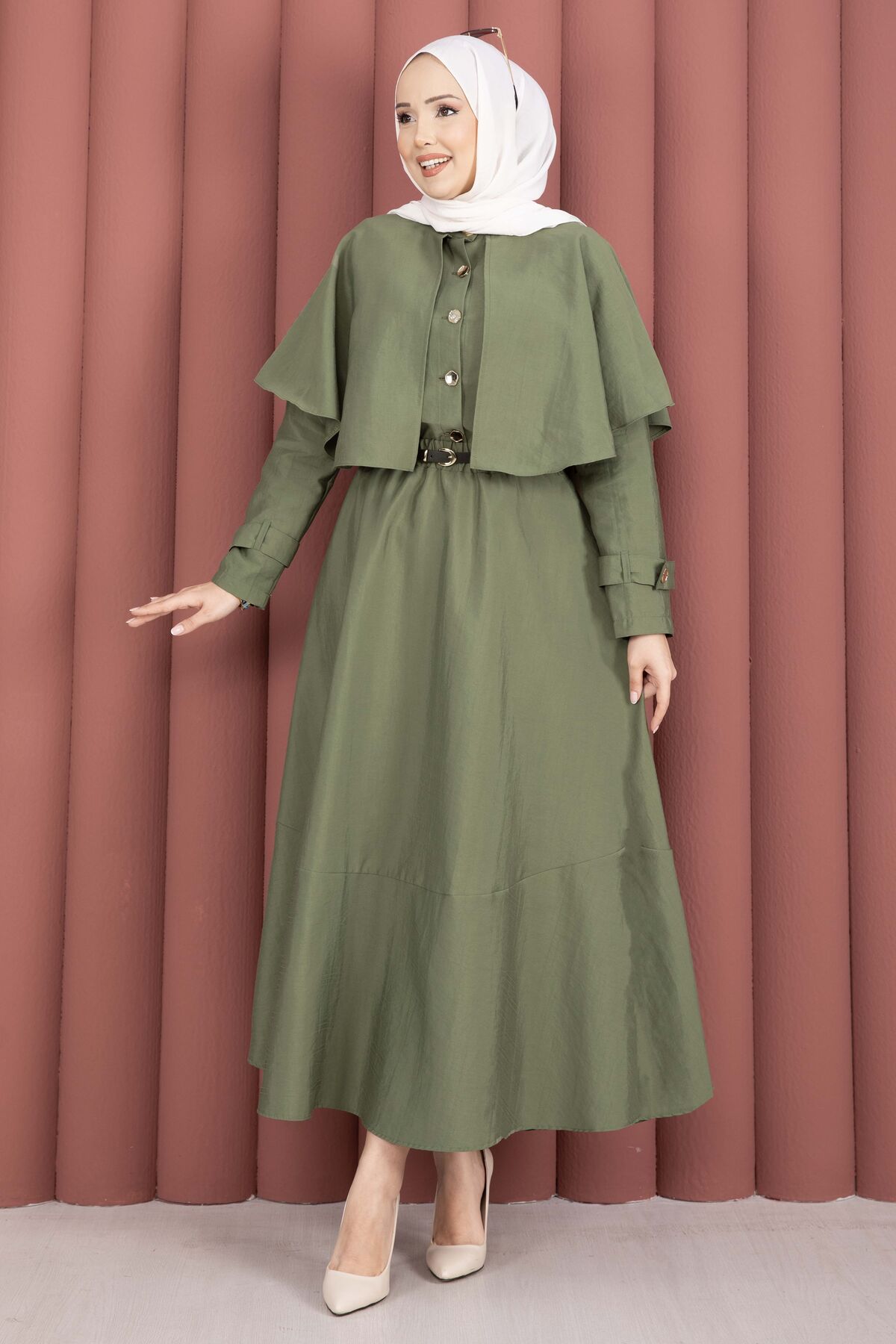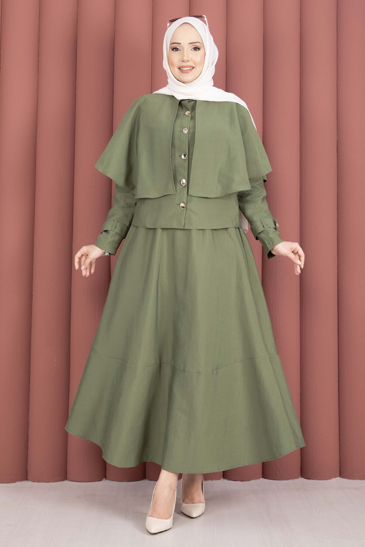Pelerinli Apolet Detaylı Etekli İkili Takım Haki Yorumları