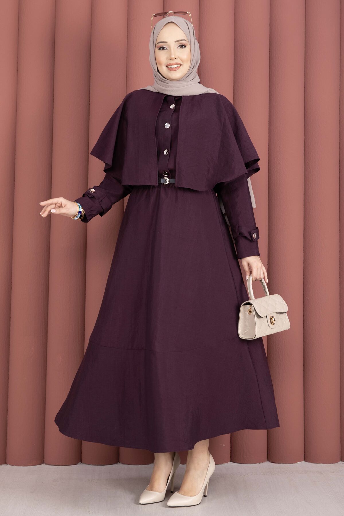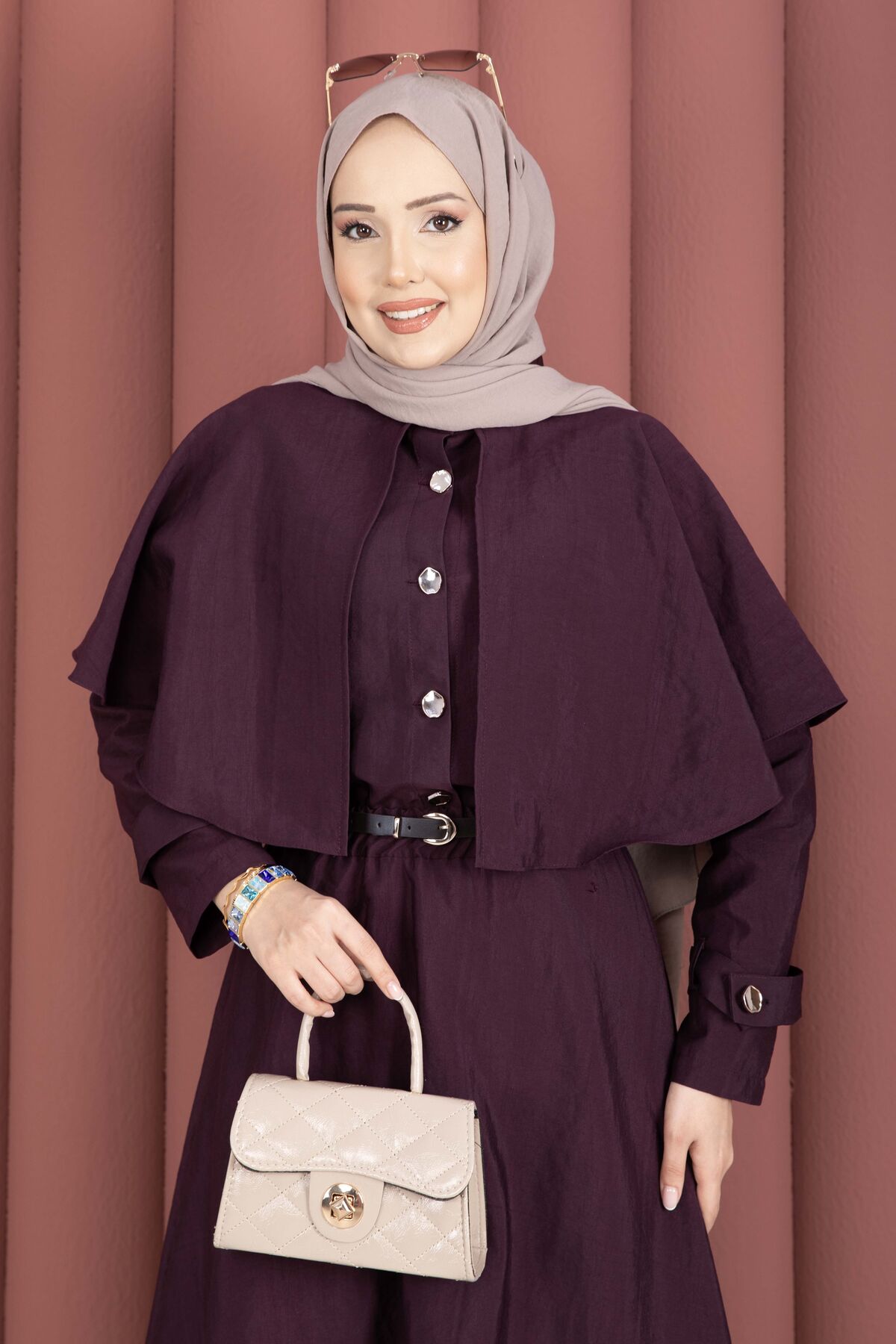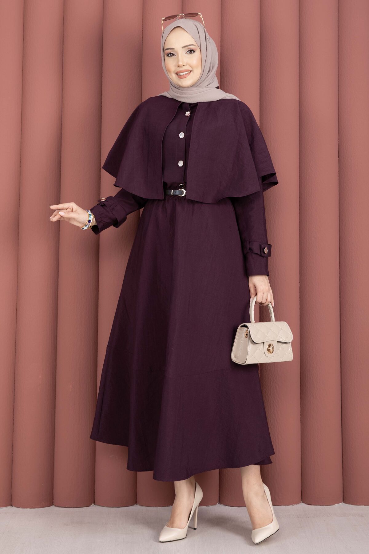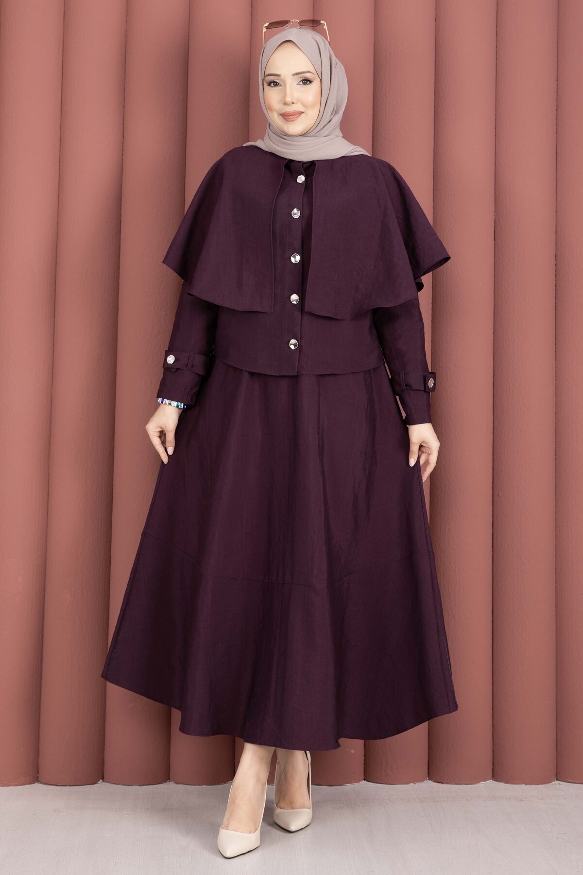 Pelerinli Apolet Detaylı Etekli İkili Takım Mürdüm Yorumları