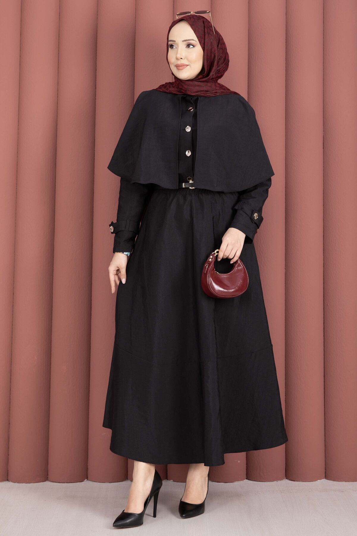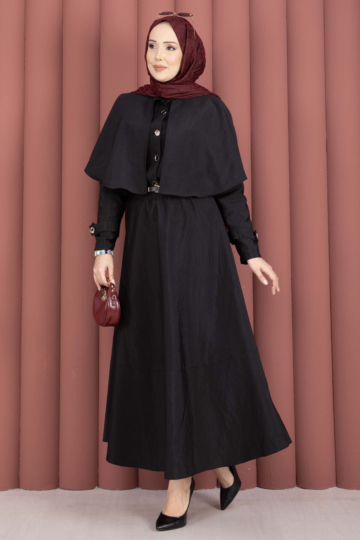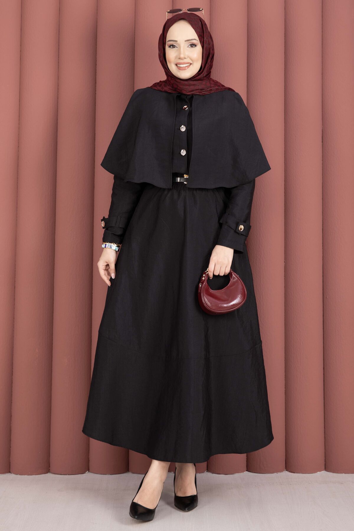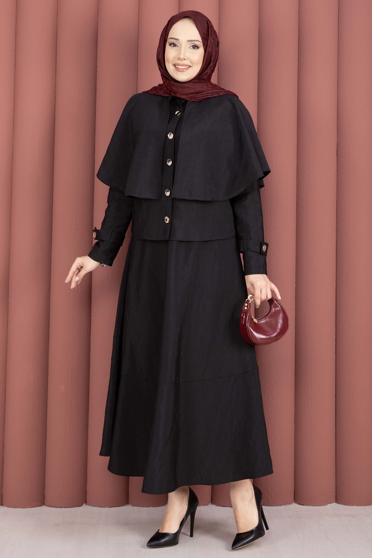 Pelerinli Apolet Detaylı Etekli İkili Takım Siyah Yorumları