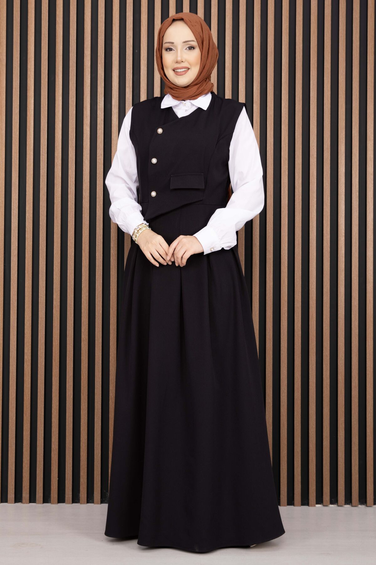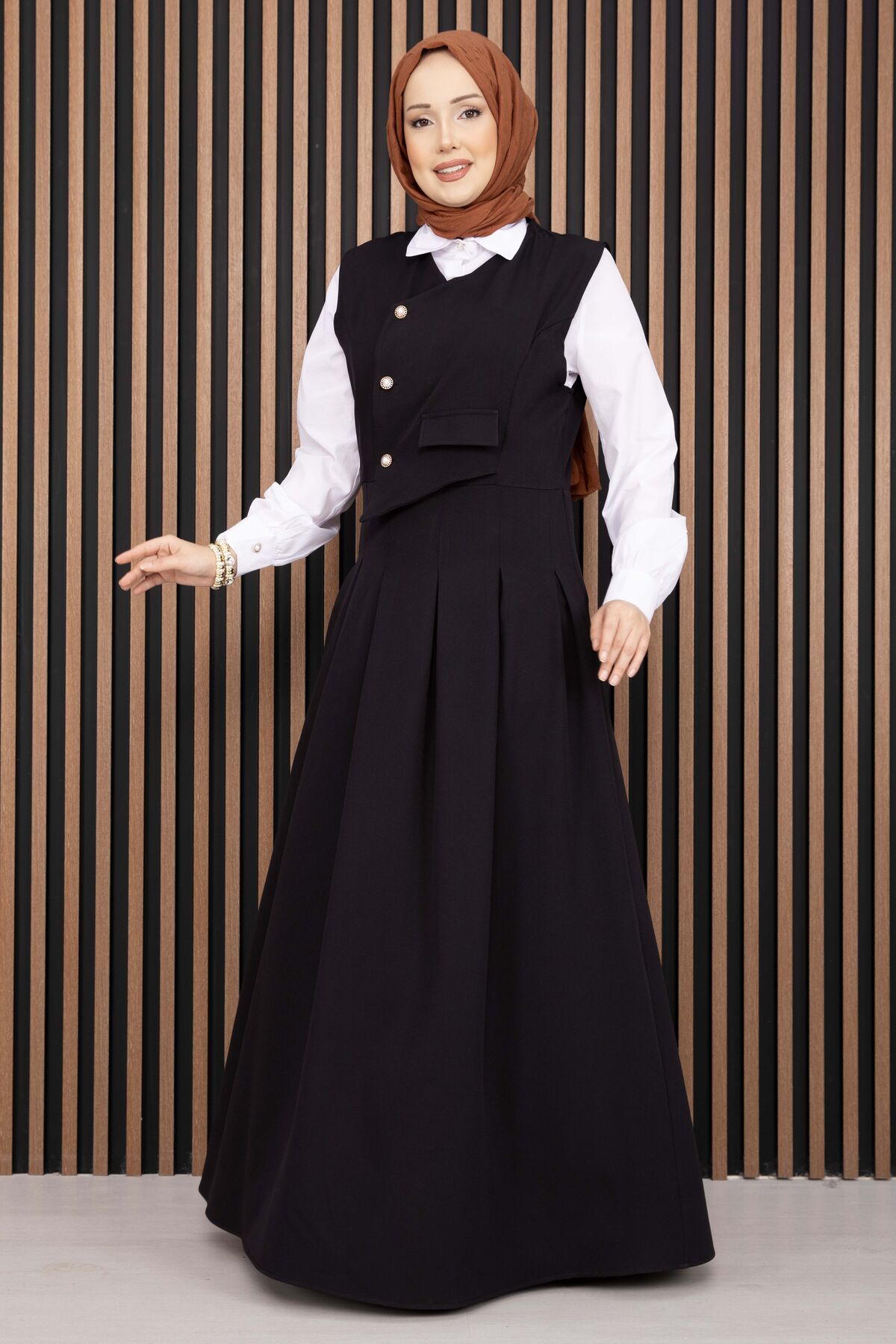 Pile Detaylı Gömlekli Jile Takım Siyah