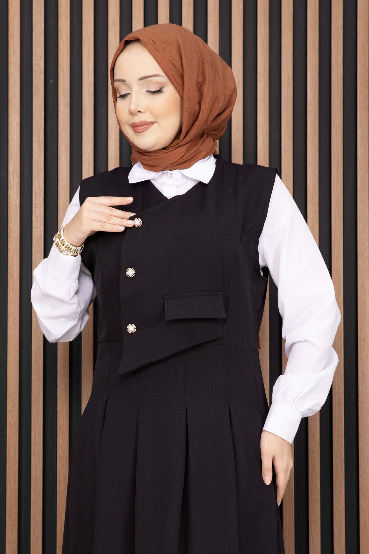 Zarif pile detayları ve modern kesimiyle öne çıkan Pile Detaylı Gömlekli Jile Takım, hem günlük kombinlerde hem de şık davetlerde rahatlıkla tercih edilebilir. Yaka kısmı fırfırlı ve bağlama detaylı gömlek tasarımı feminen bir hava katarken, üstten yarım düğme detayı aktiftir. Dar kalıp jile formu daha fit ve şık bir siluet oluşturur.