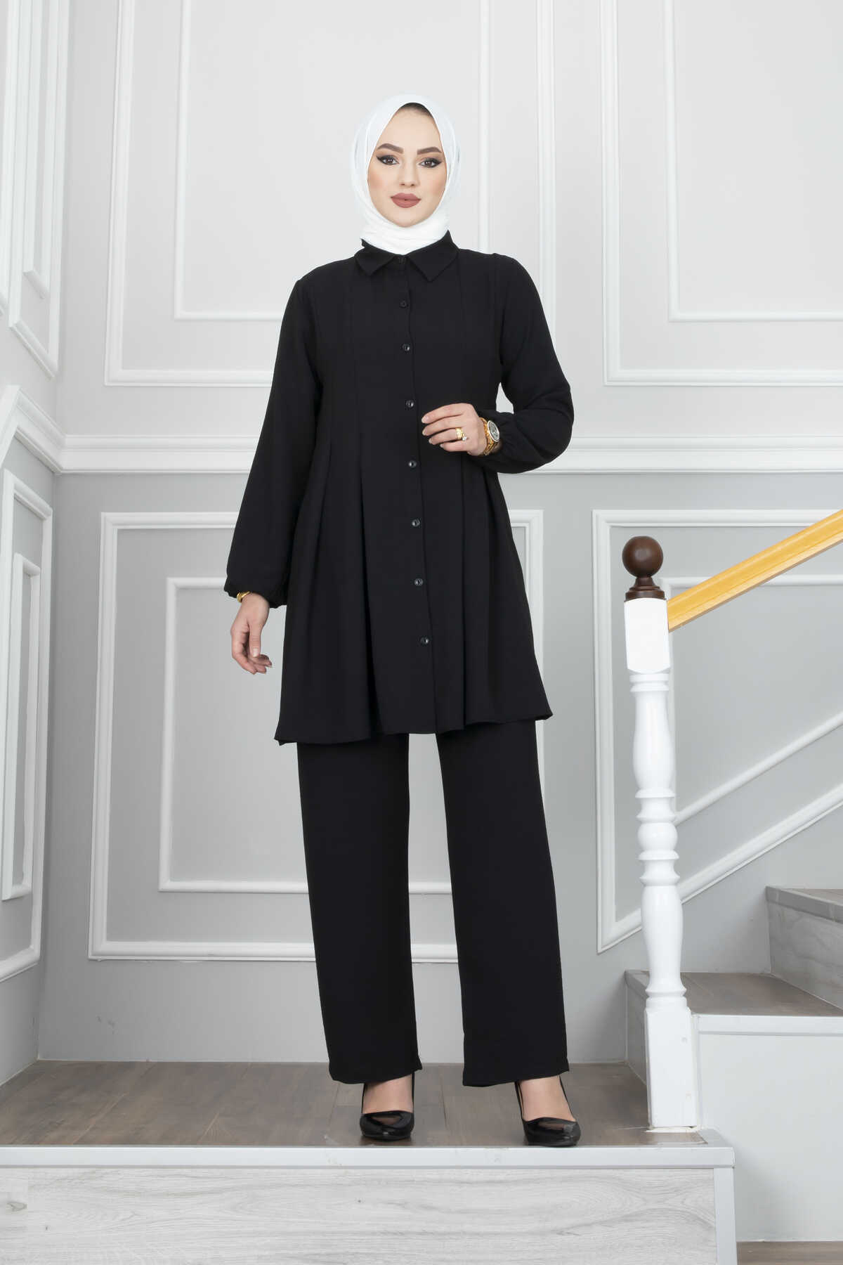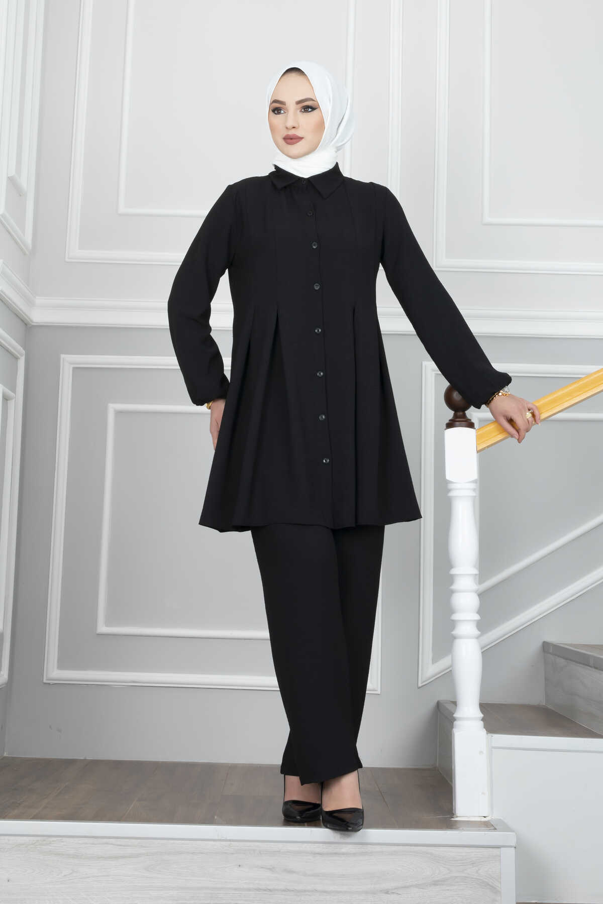 Pile Detaylı Tesettür İkili Takım Siyah Yorumları
