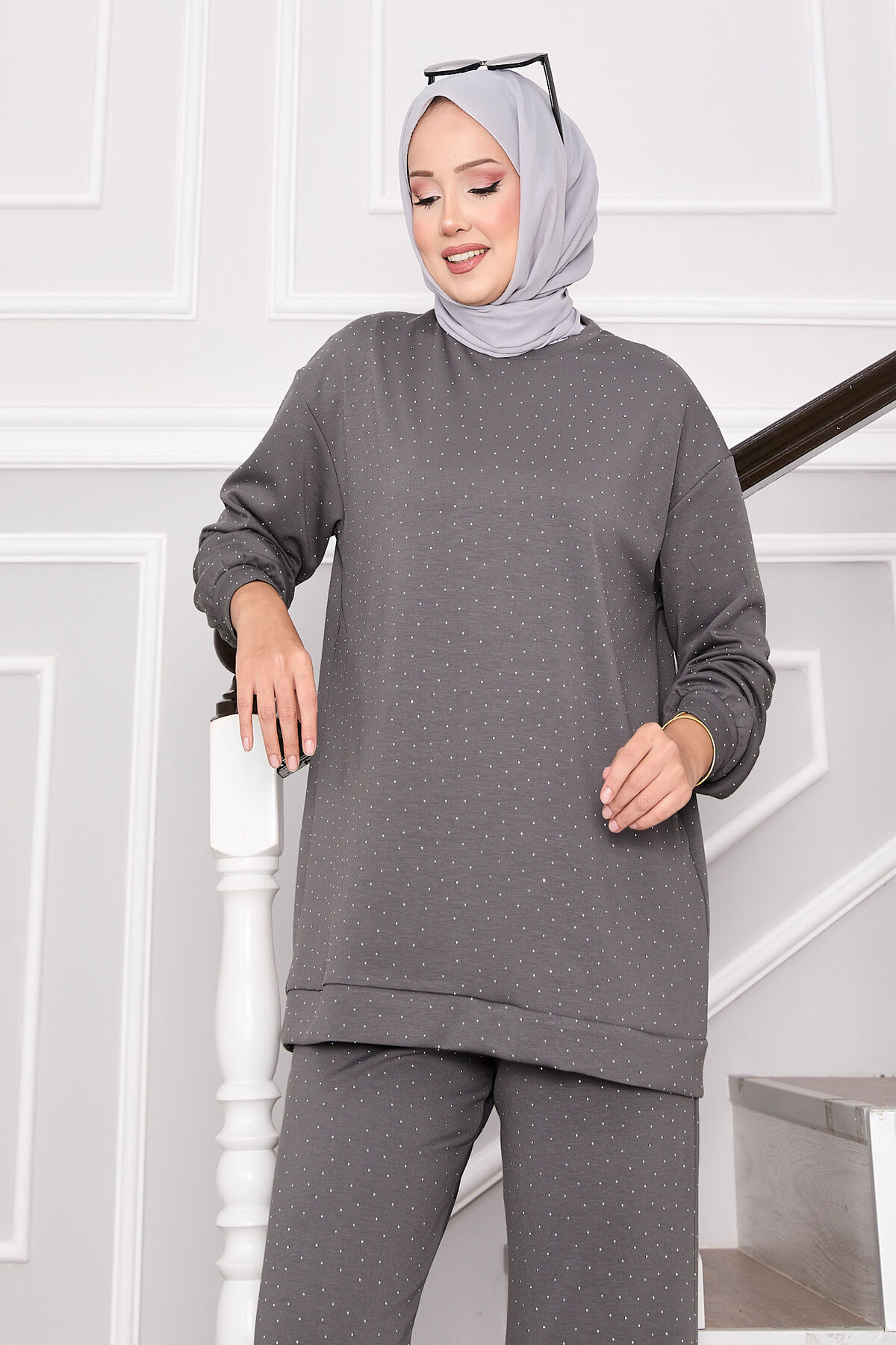 Pırıltılı Bisiklet Yaka İkili Takım Gri Yorumları