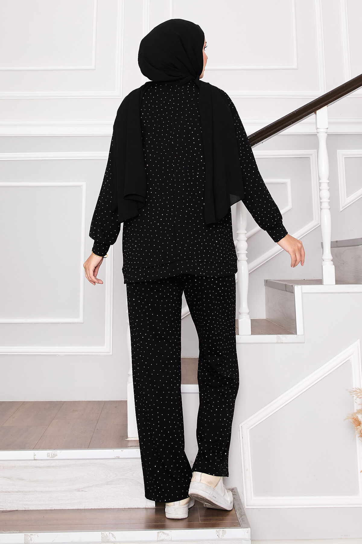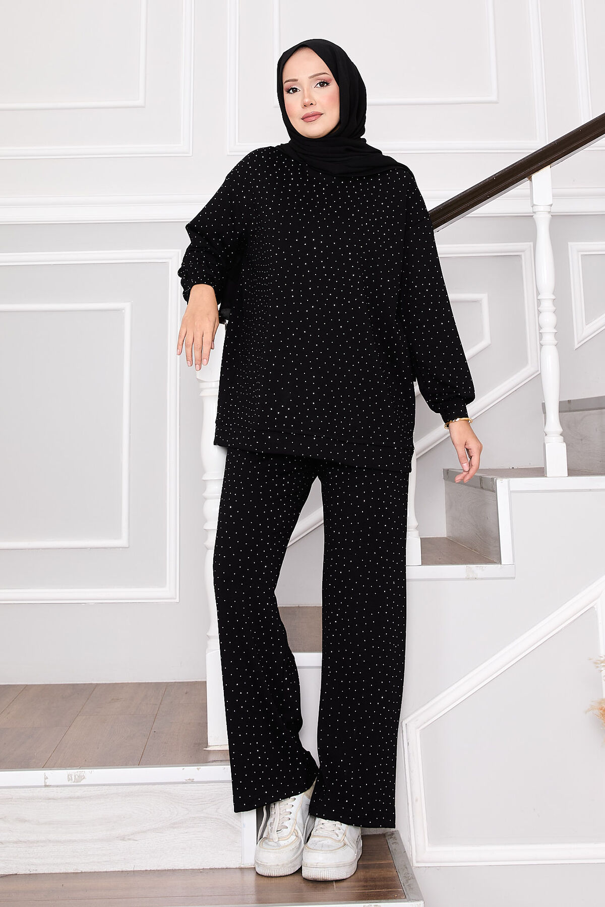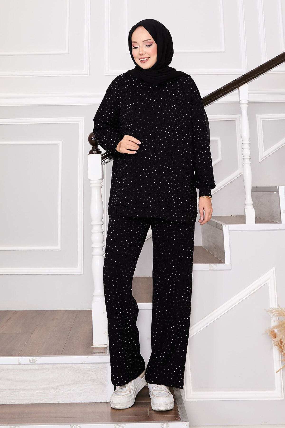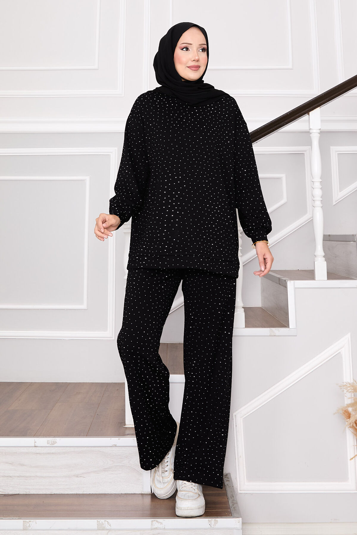 - Ürün mevsimliktir. Tunik pantolon ikili kombinimiz.Tunik ve pantolon full serpme taşlı tunik bisiklet yaka pantolon belden lastikli.