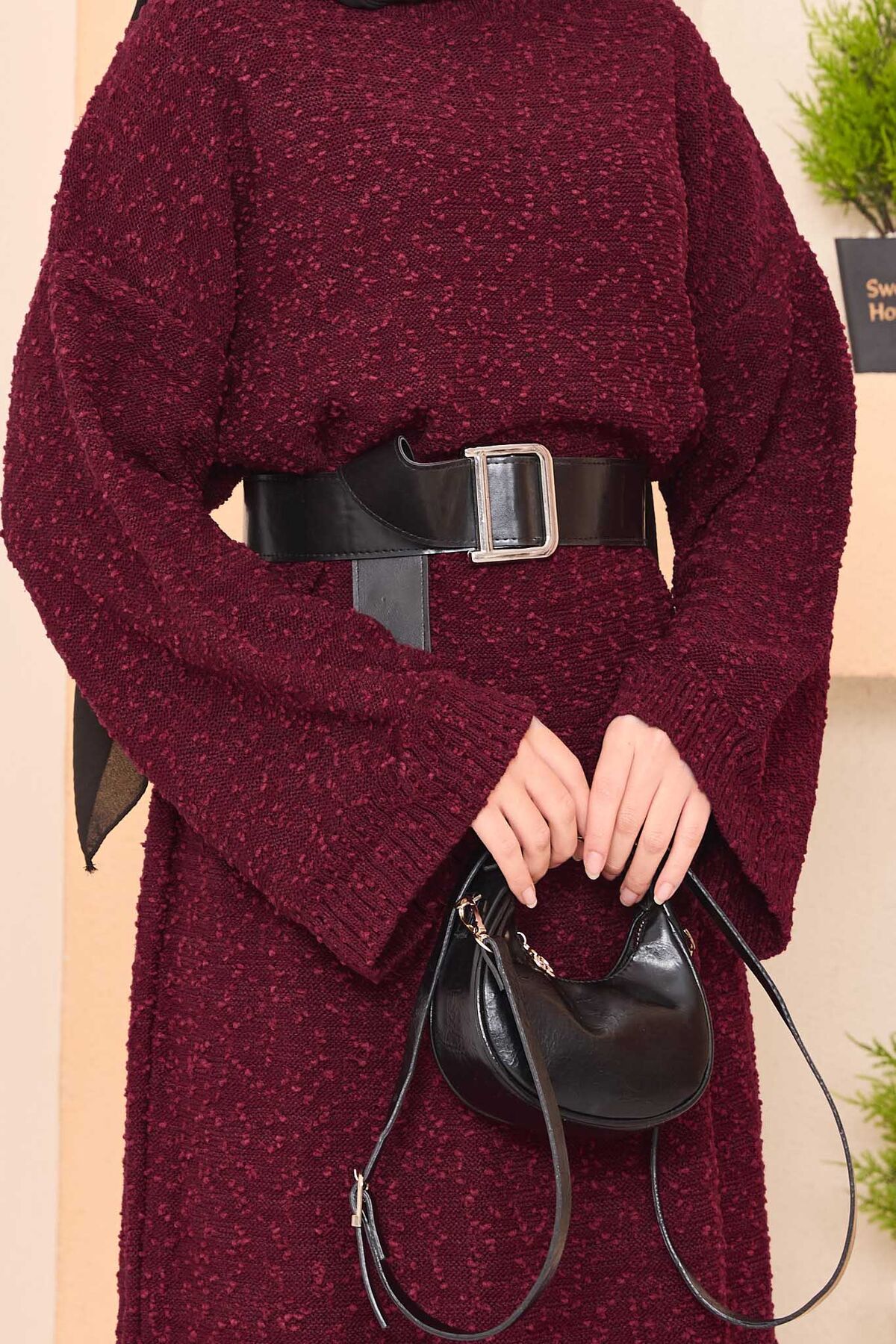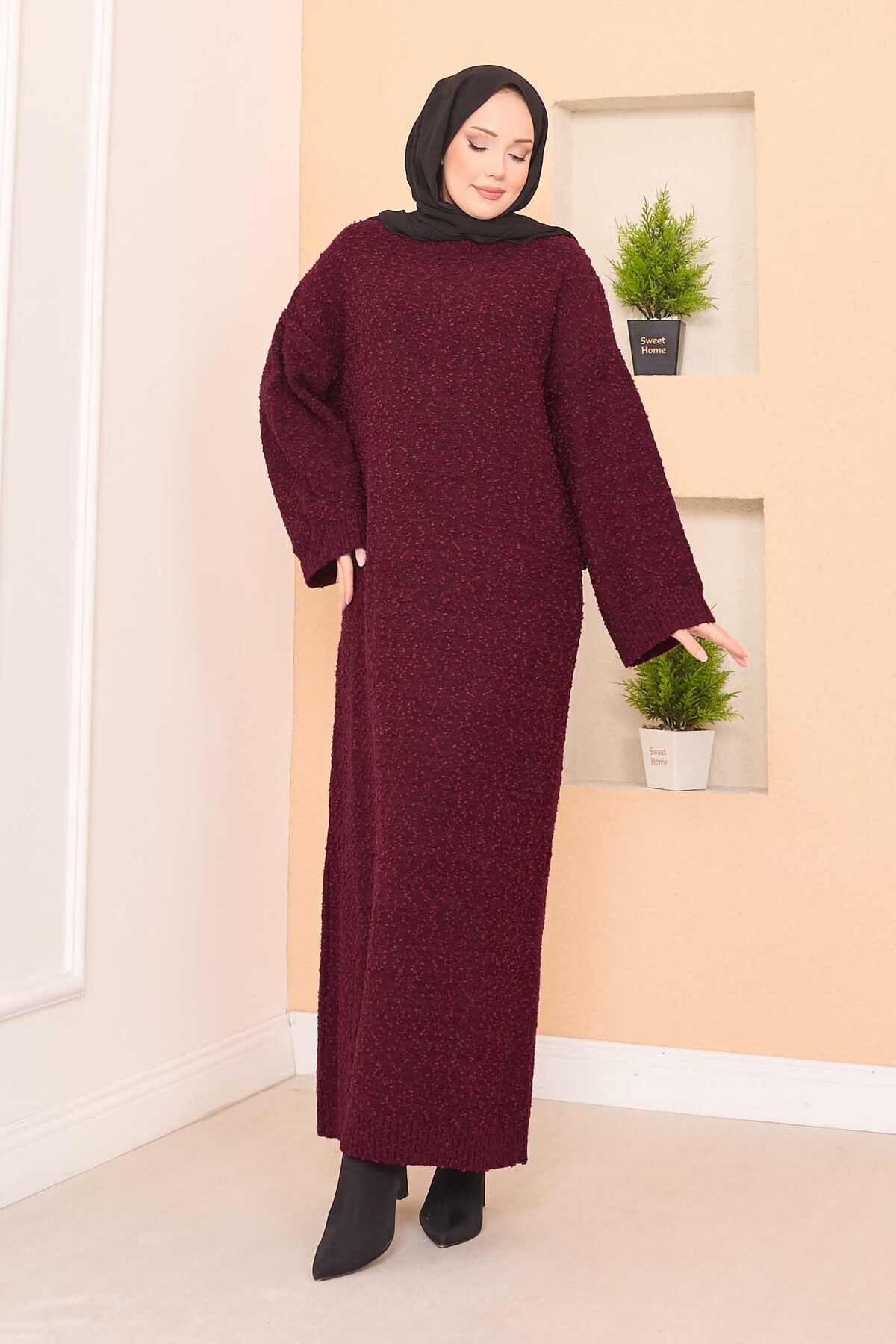Pıtırcık Dokulu Oversize Tesettür Elbise Bordo