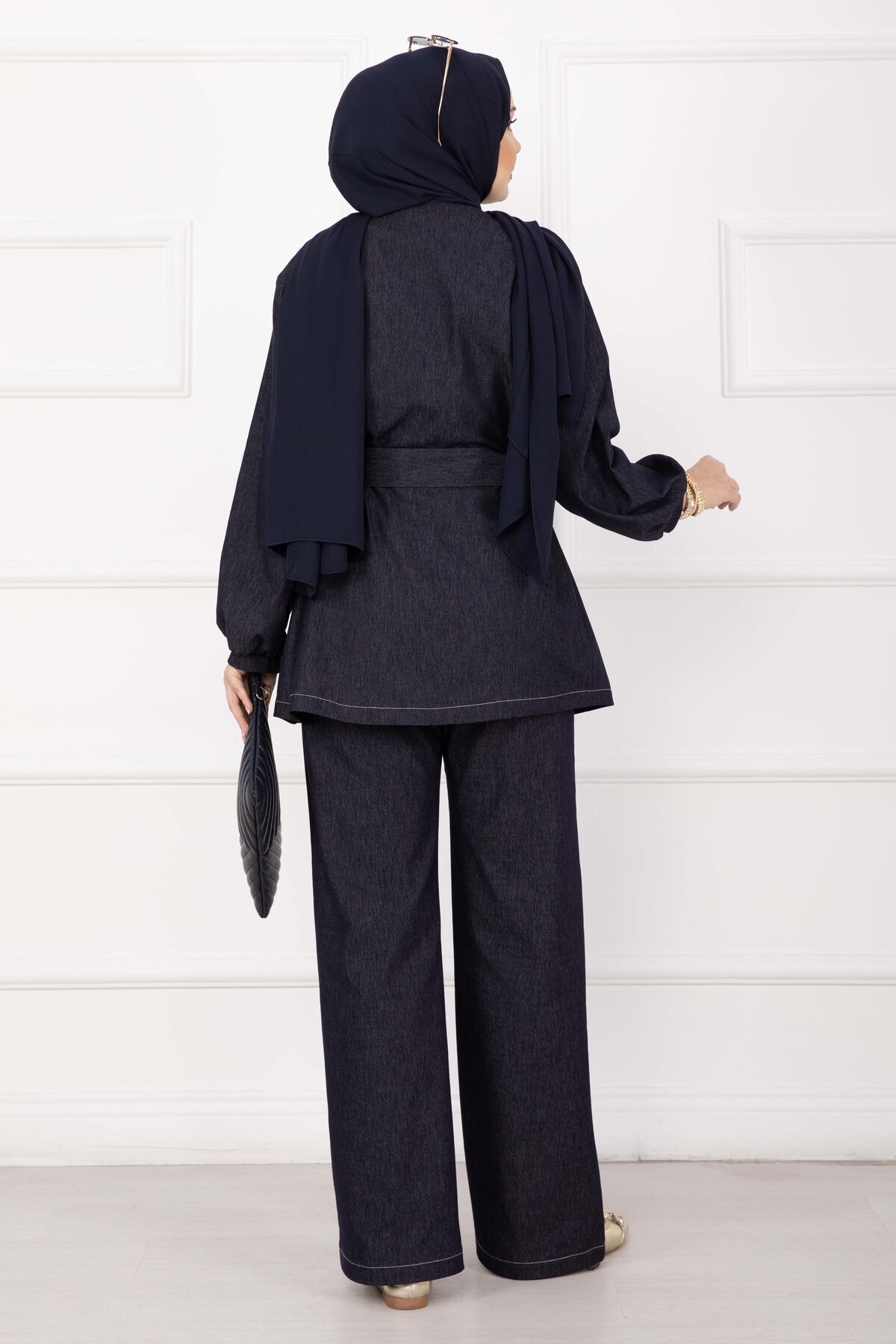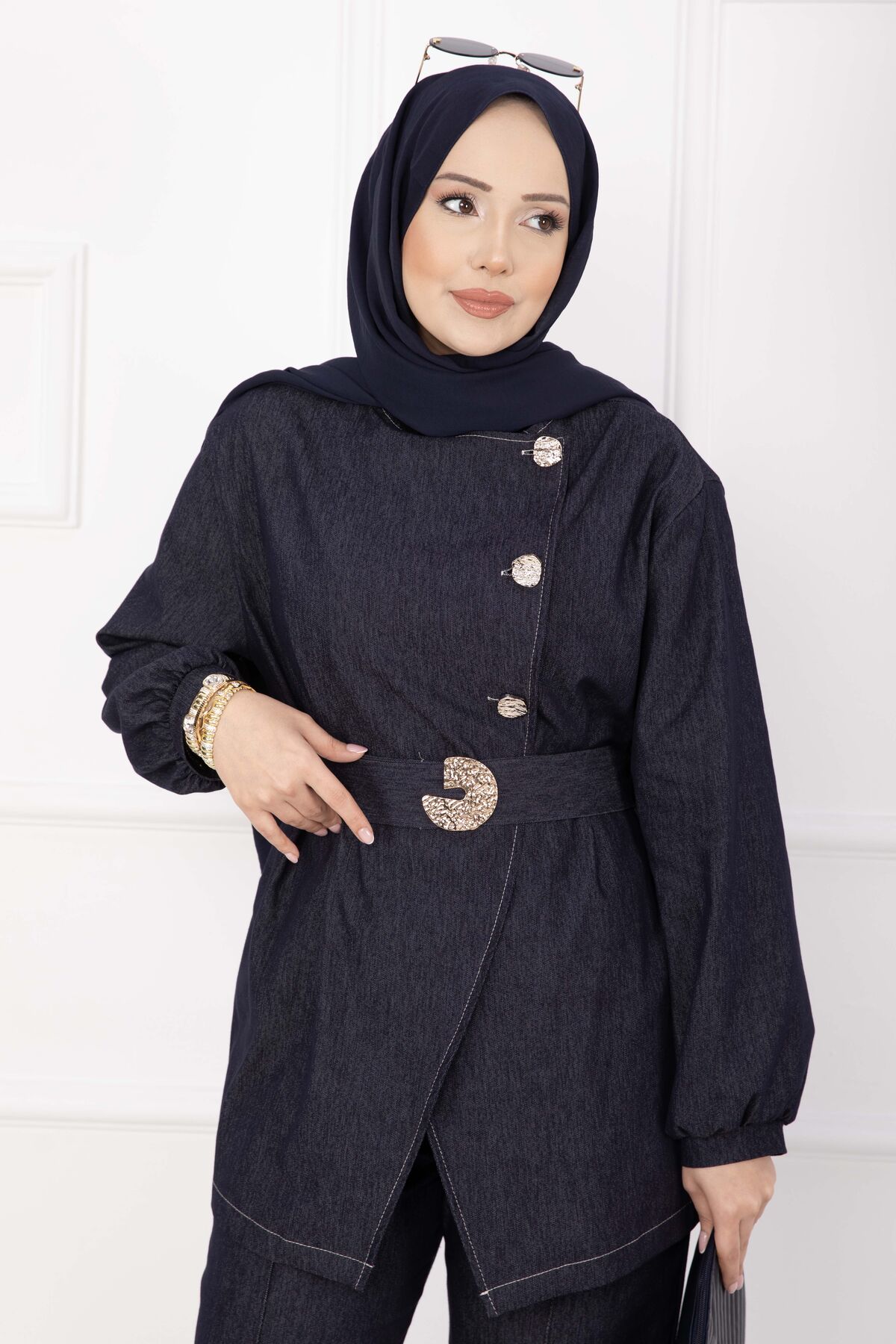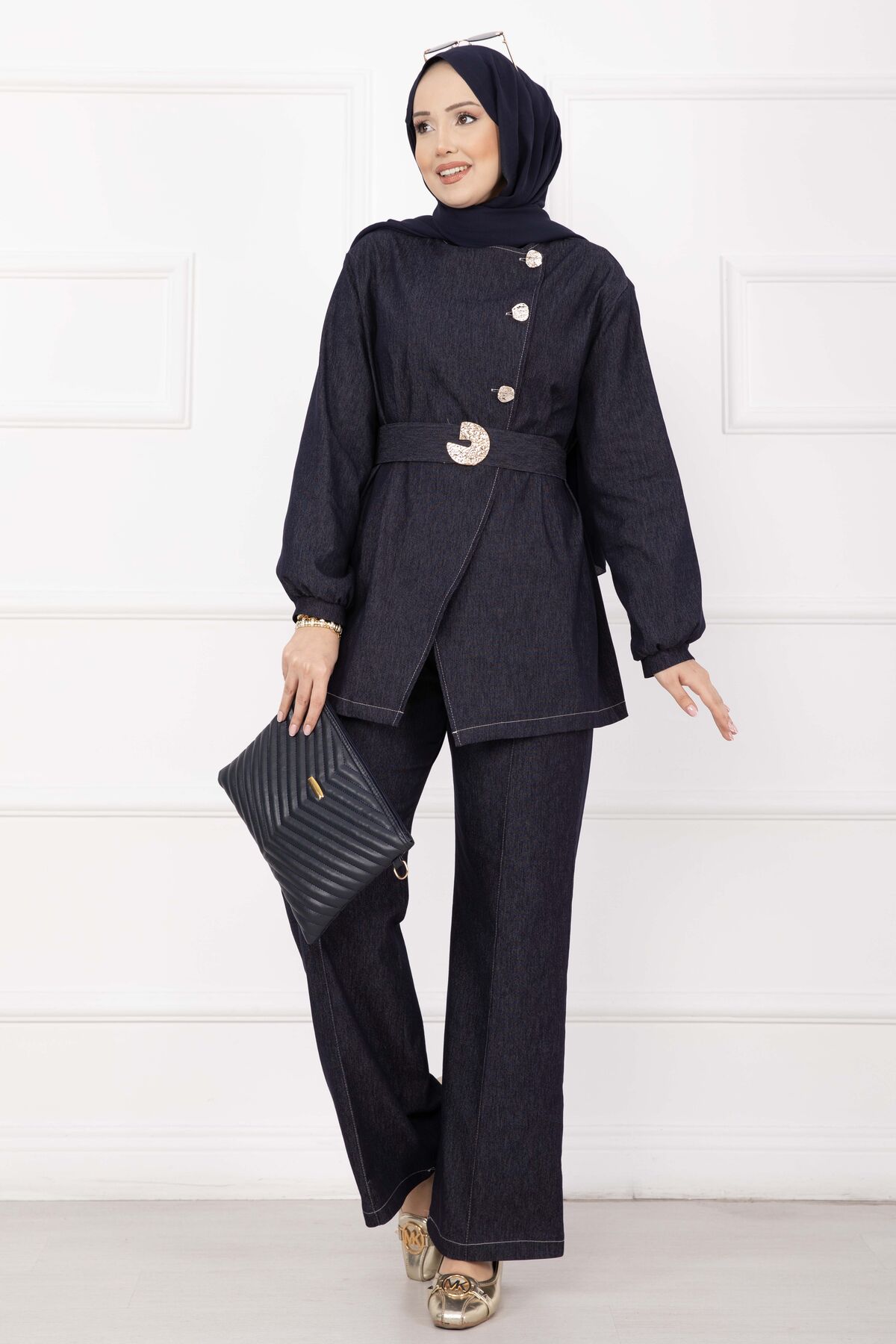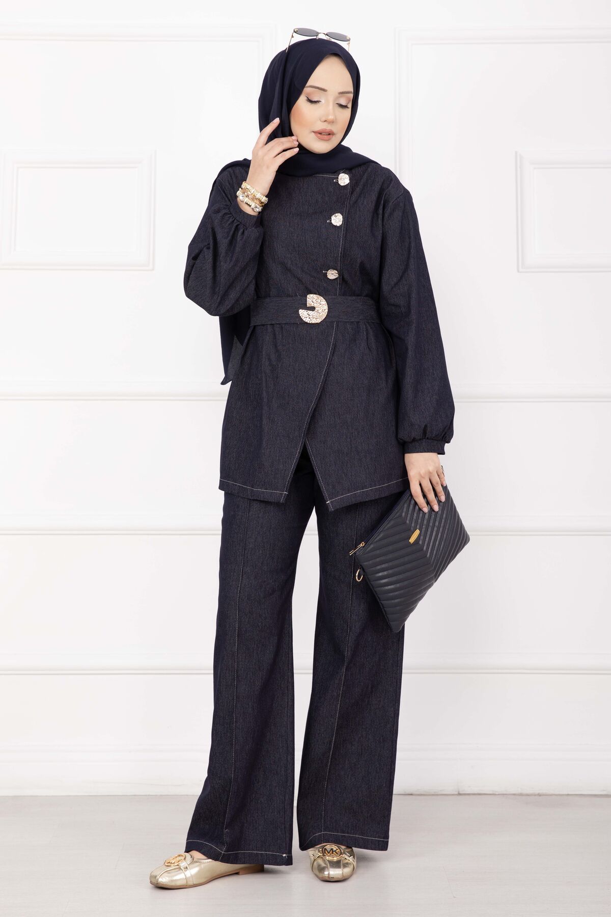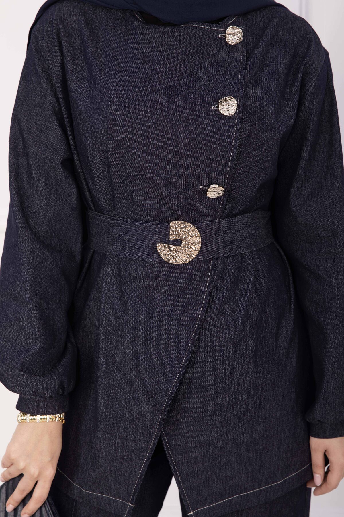 Premium Gold Düğmeli Kemerli Kot Takım Lacivert Yorumları