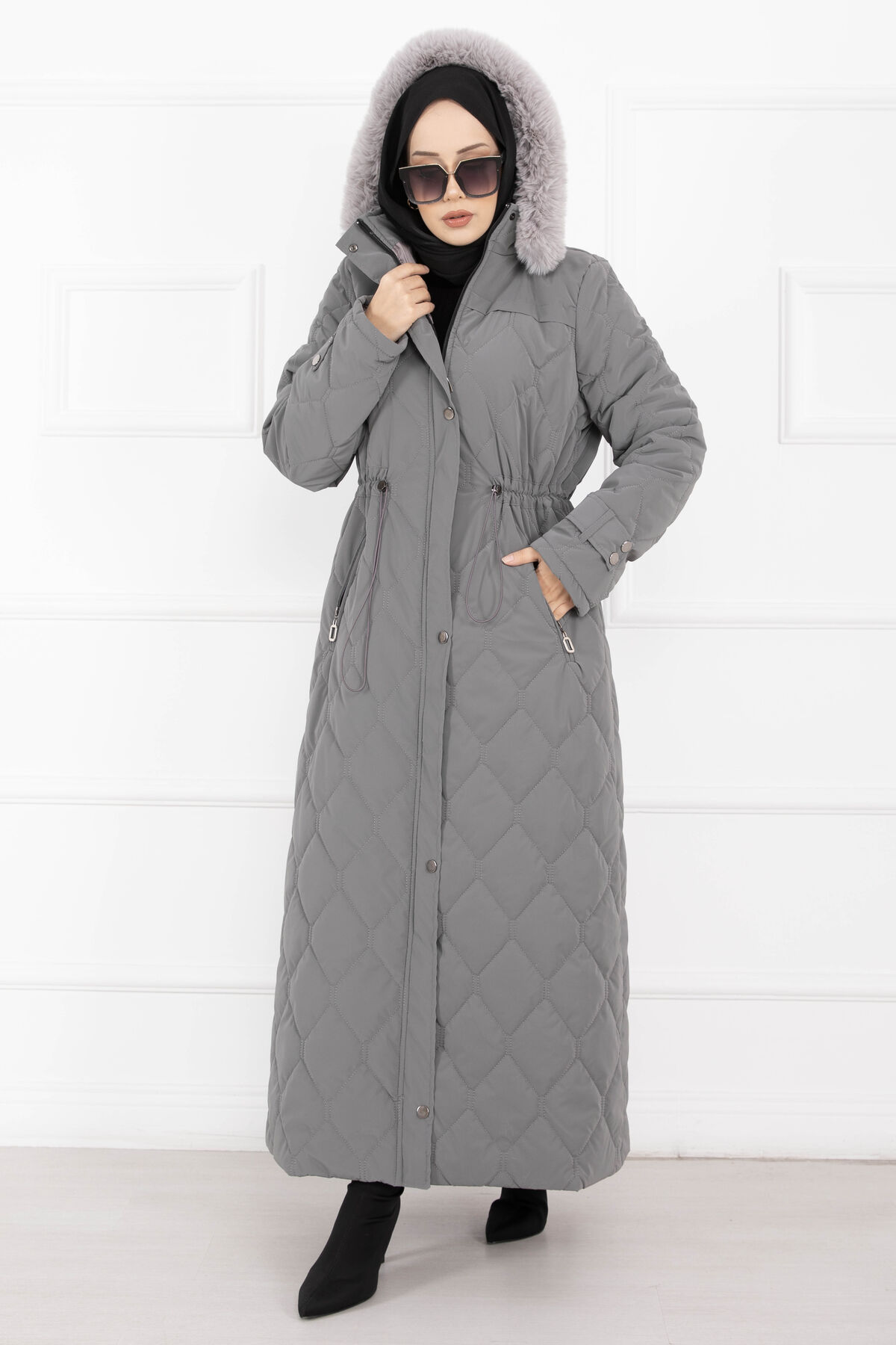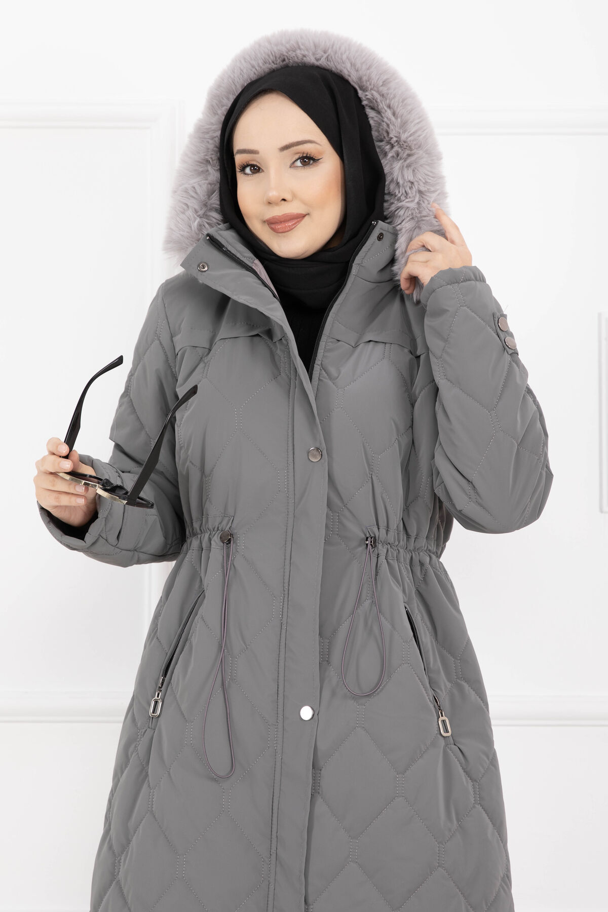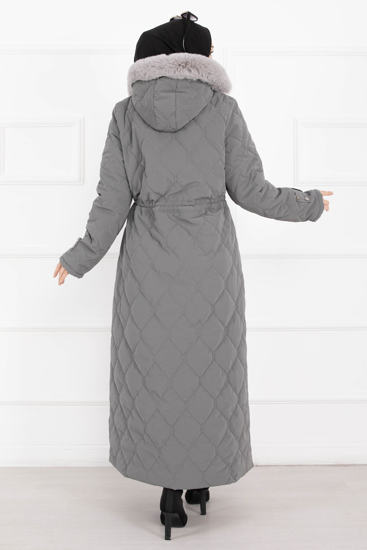 Premium Kürk Kapüşonlu Nova Kaban Füme