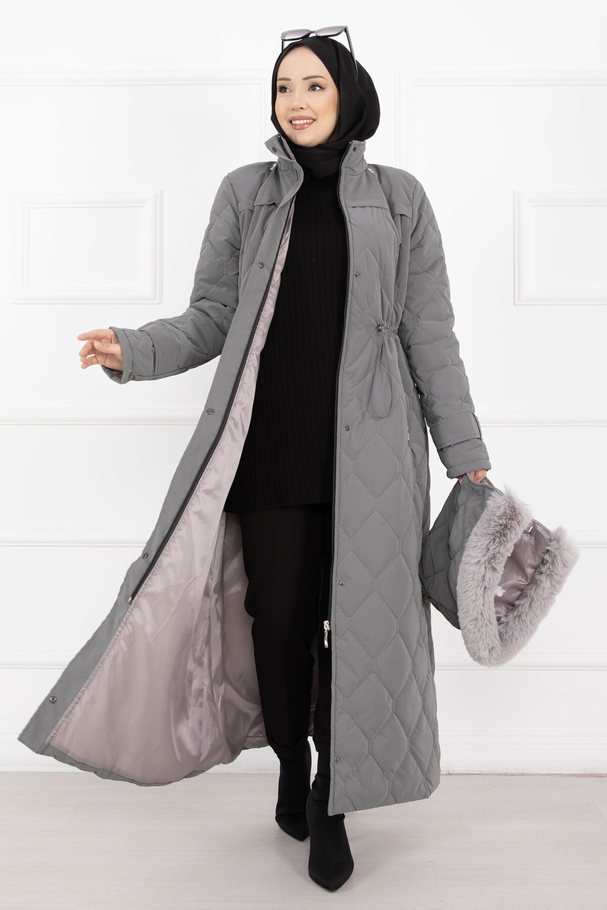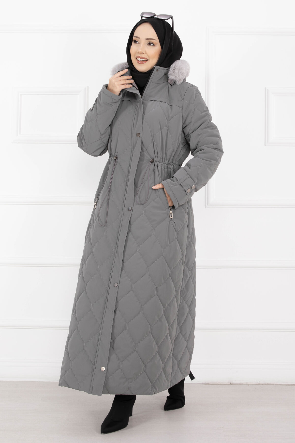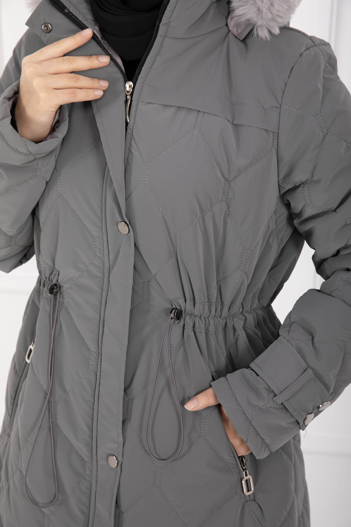 Premium Kürk Kapüşonlu Nova Kaban Füme