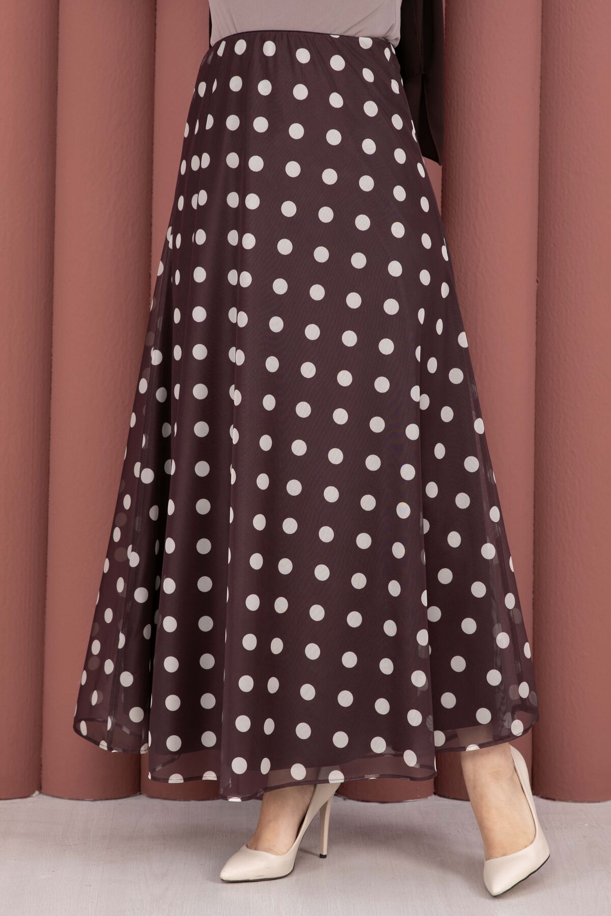 Puantiye Desenli Şifon Tül Etek Mürdüm