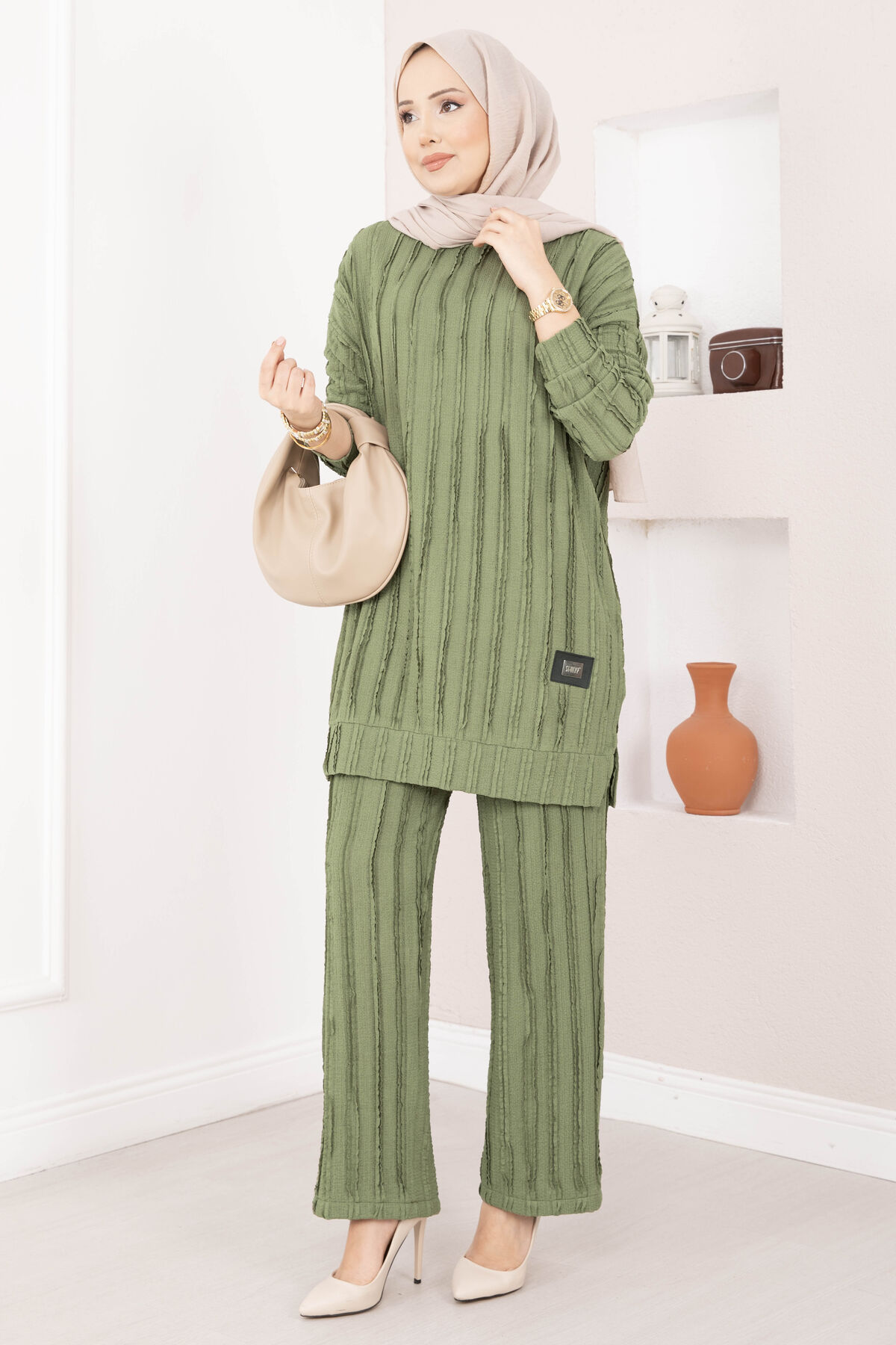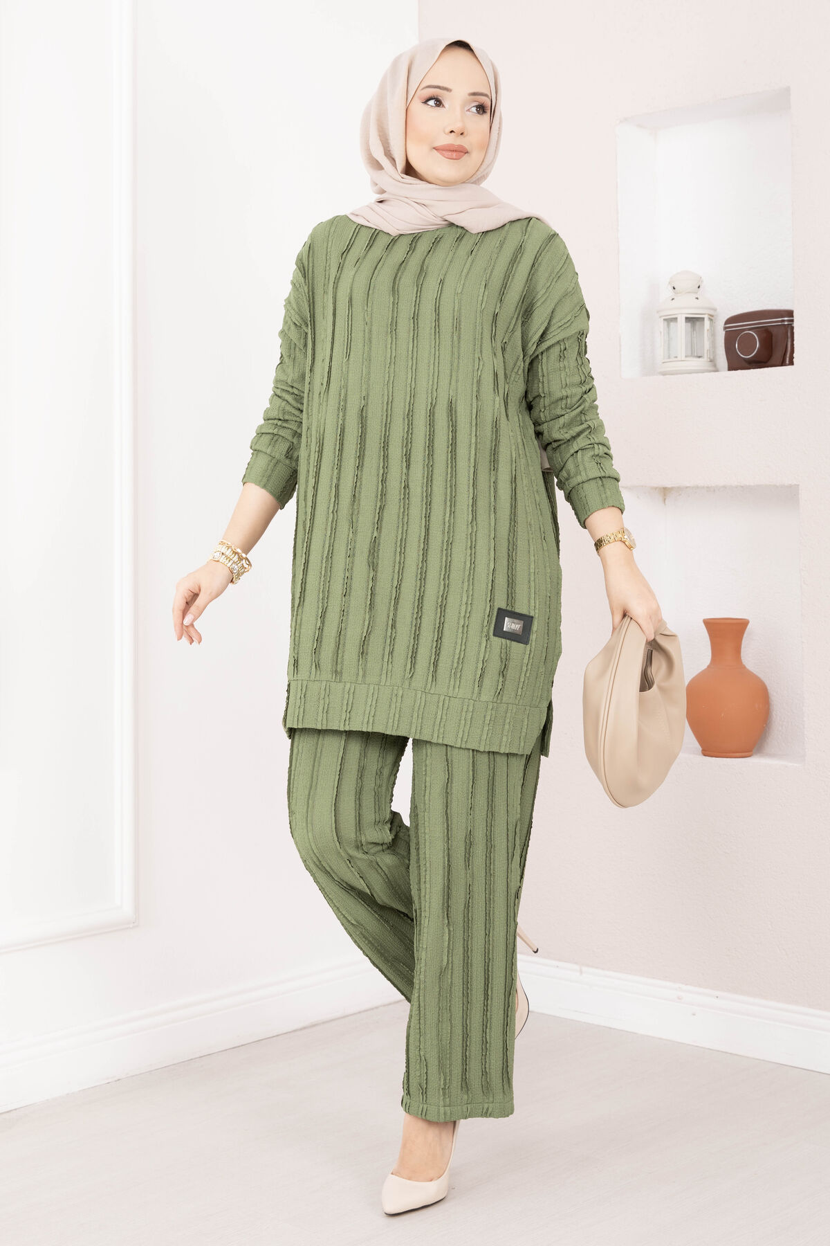 Rahat Kalıp Pantolonlu İkili Takım Haki